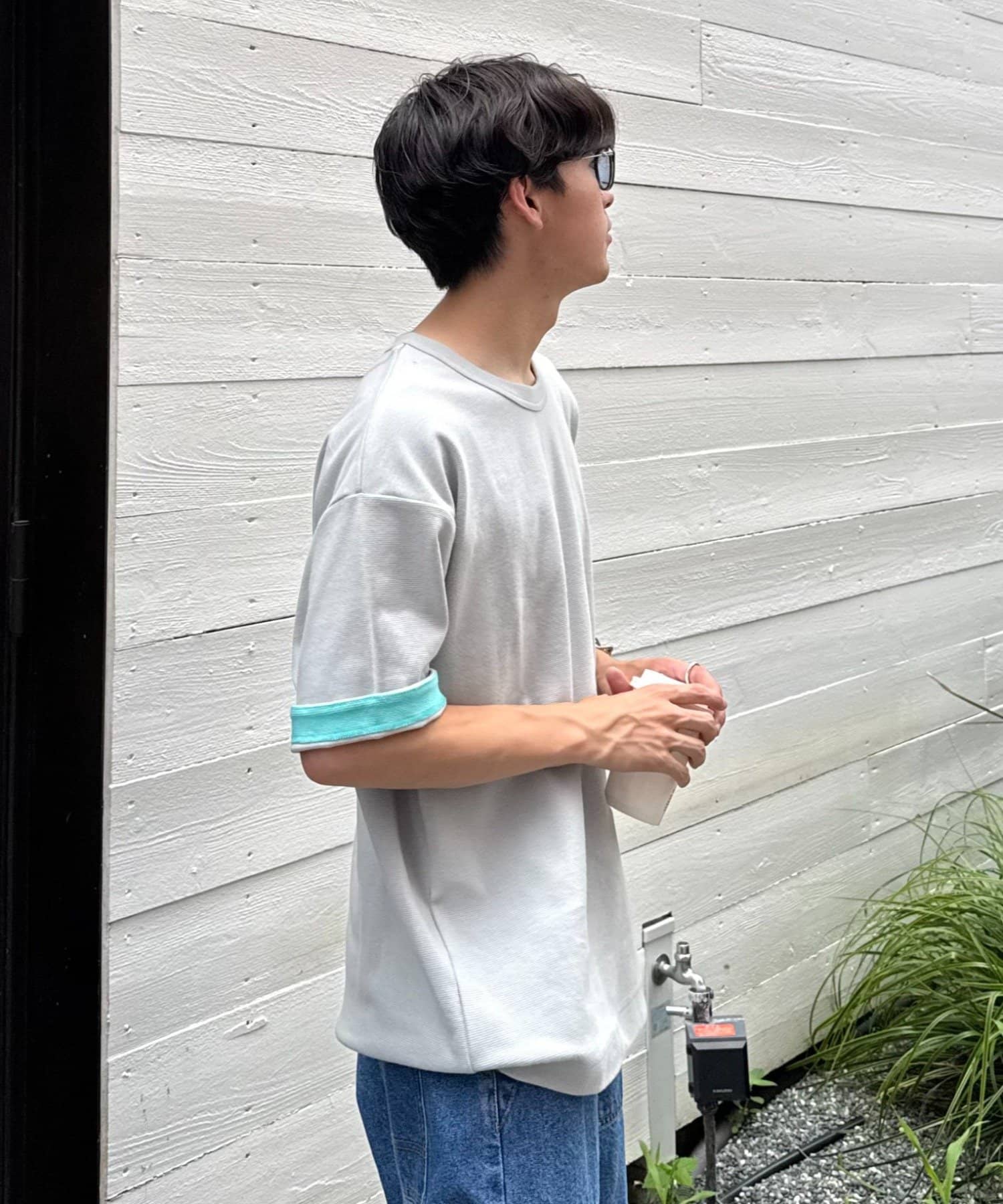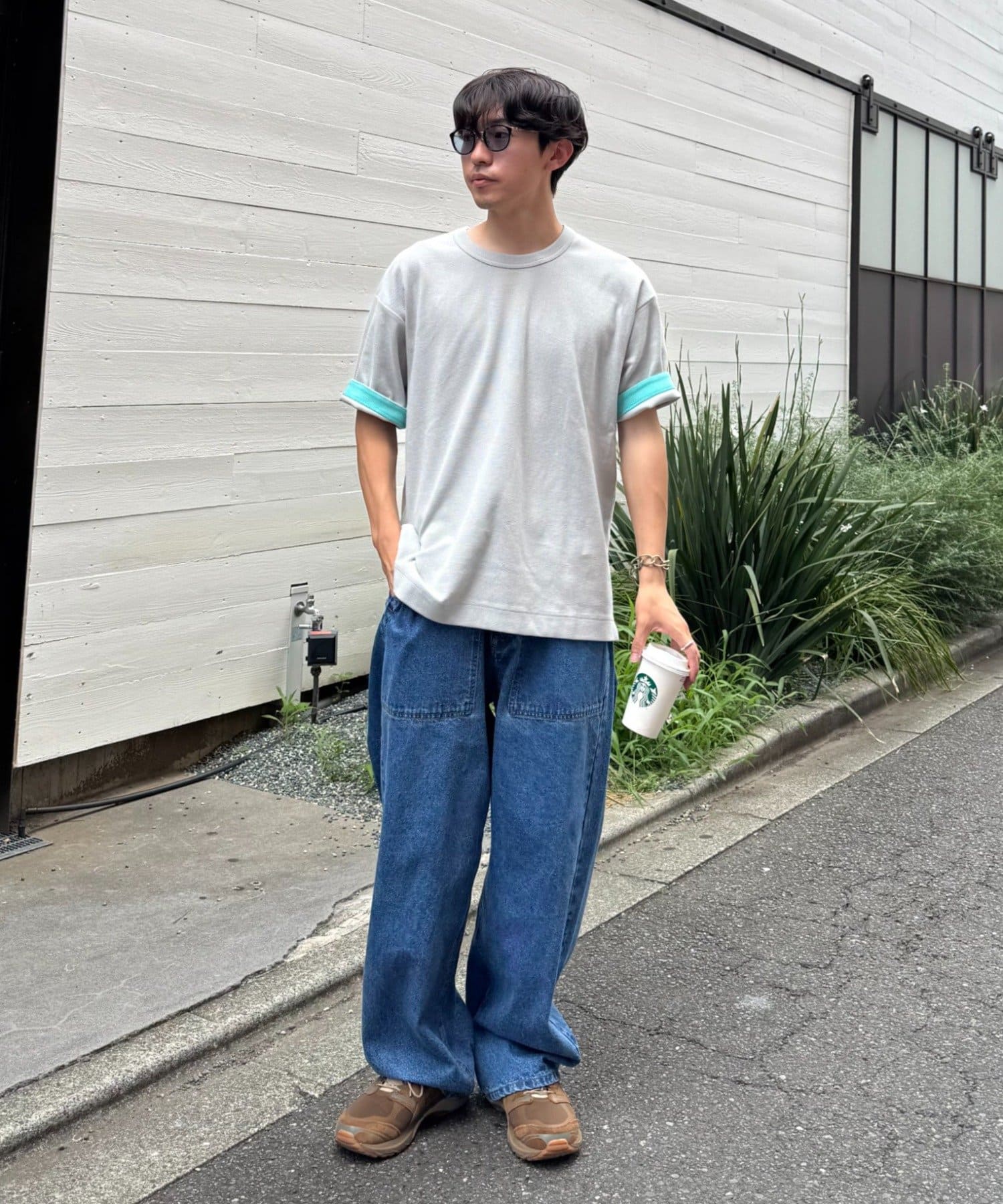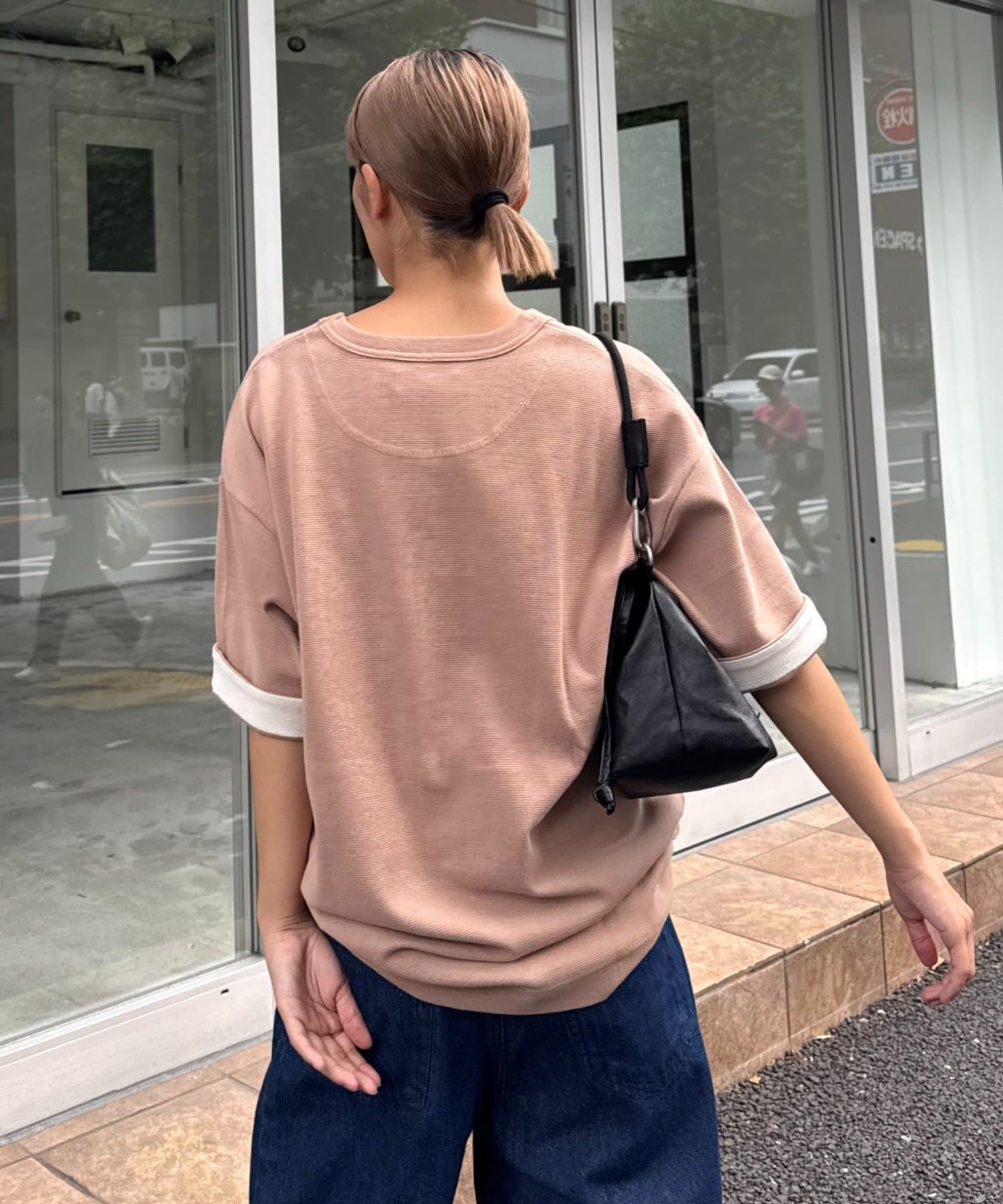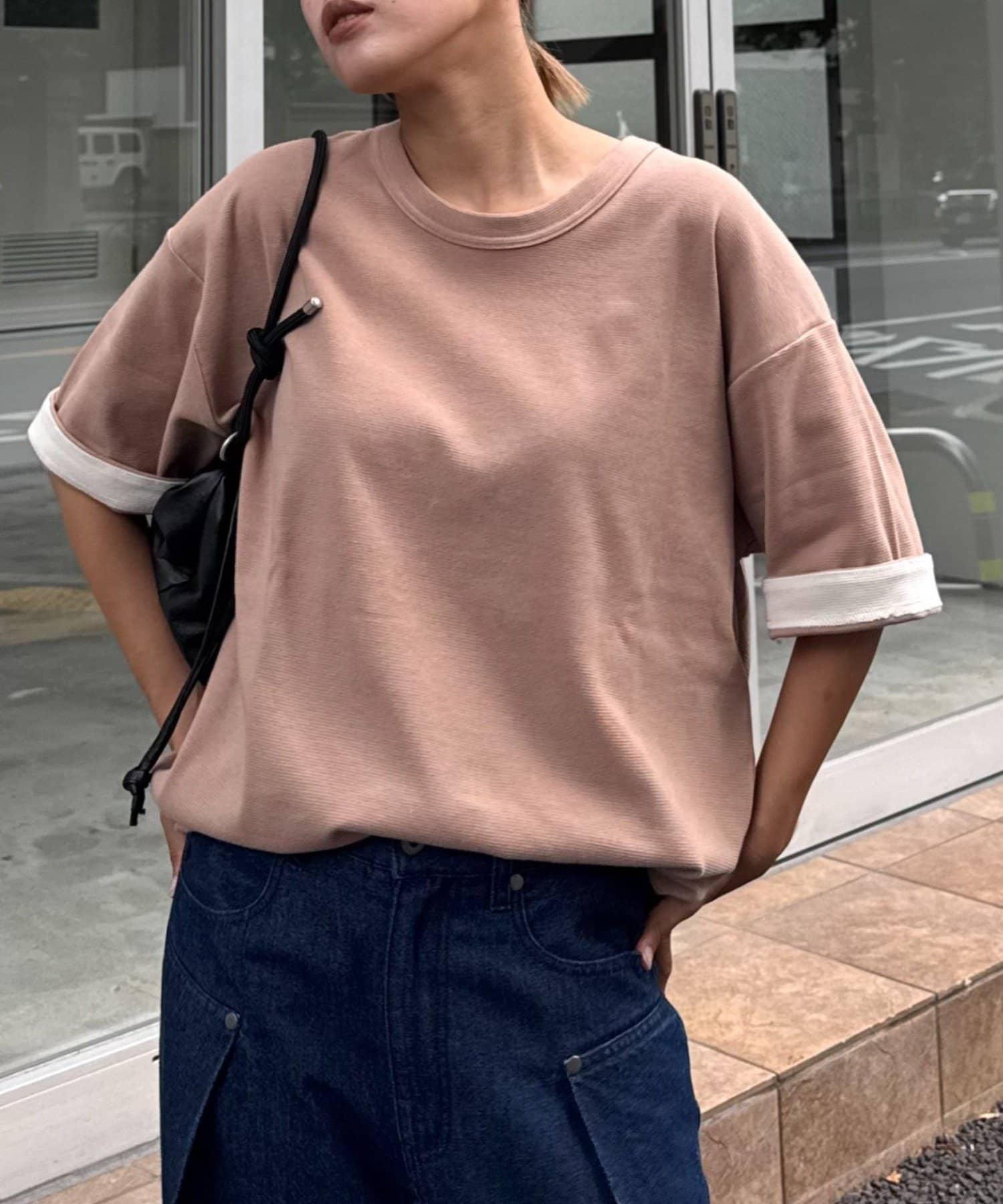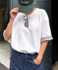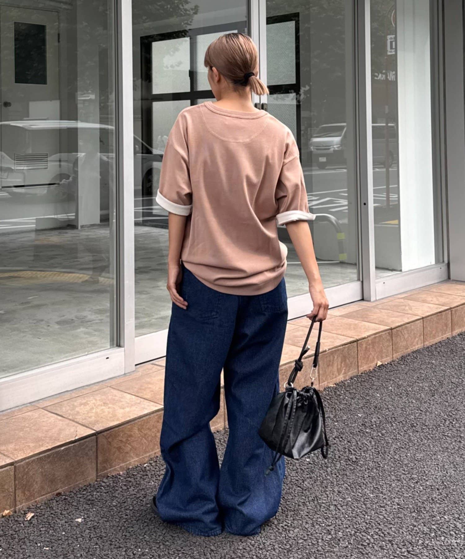 シンプルなハーフスリーブTeeは一枚で様になり、スタイリングの主役にも引き立て役にもなる万能な一着。
