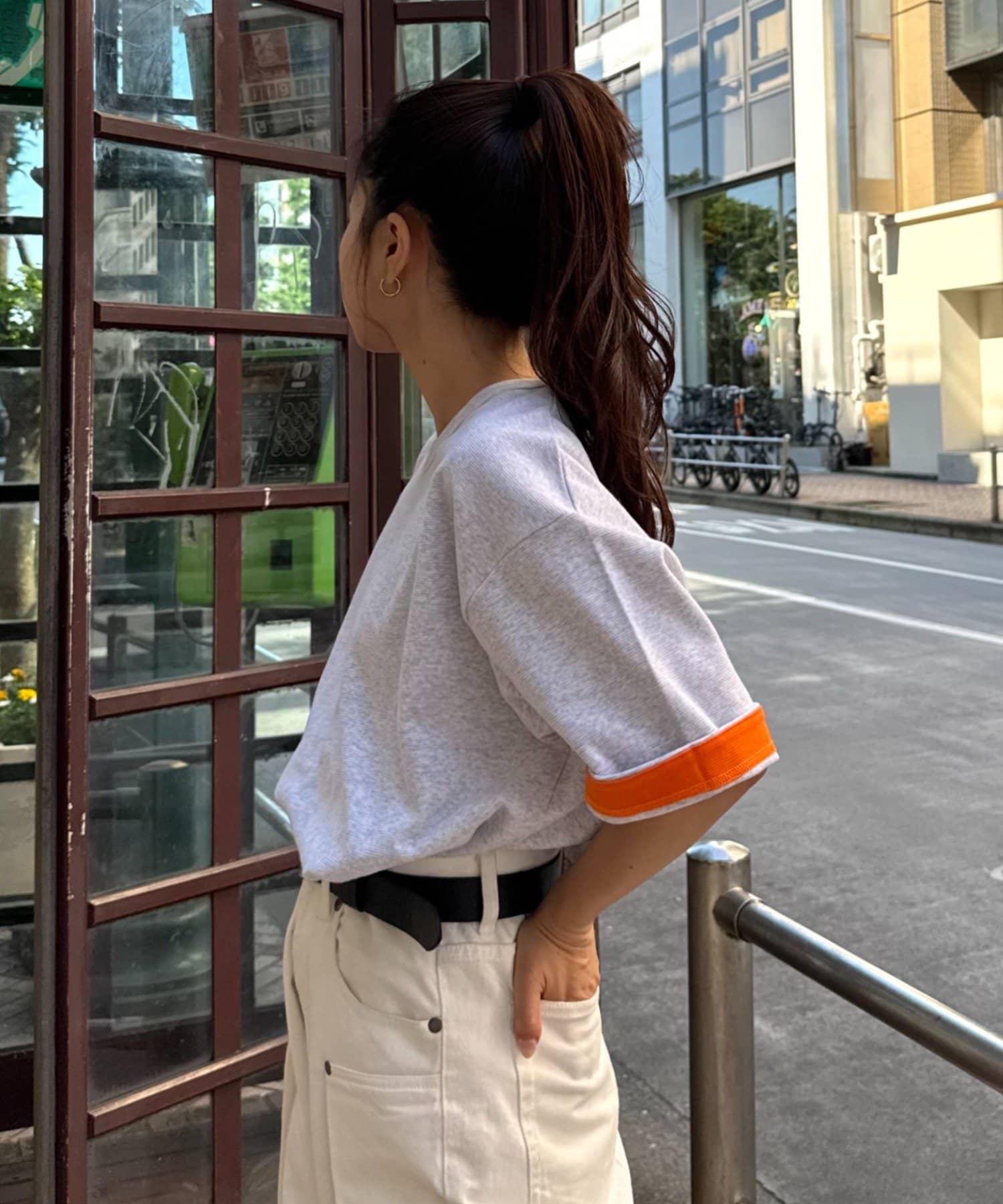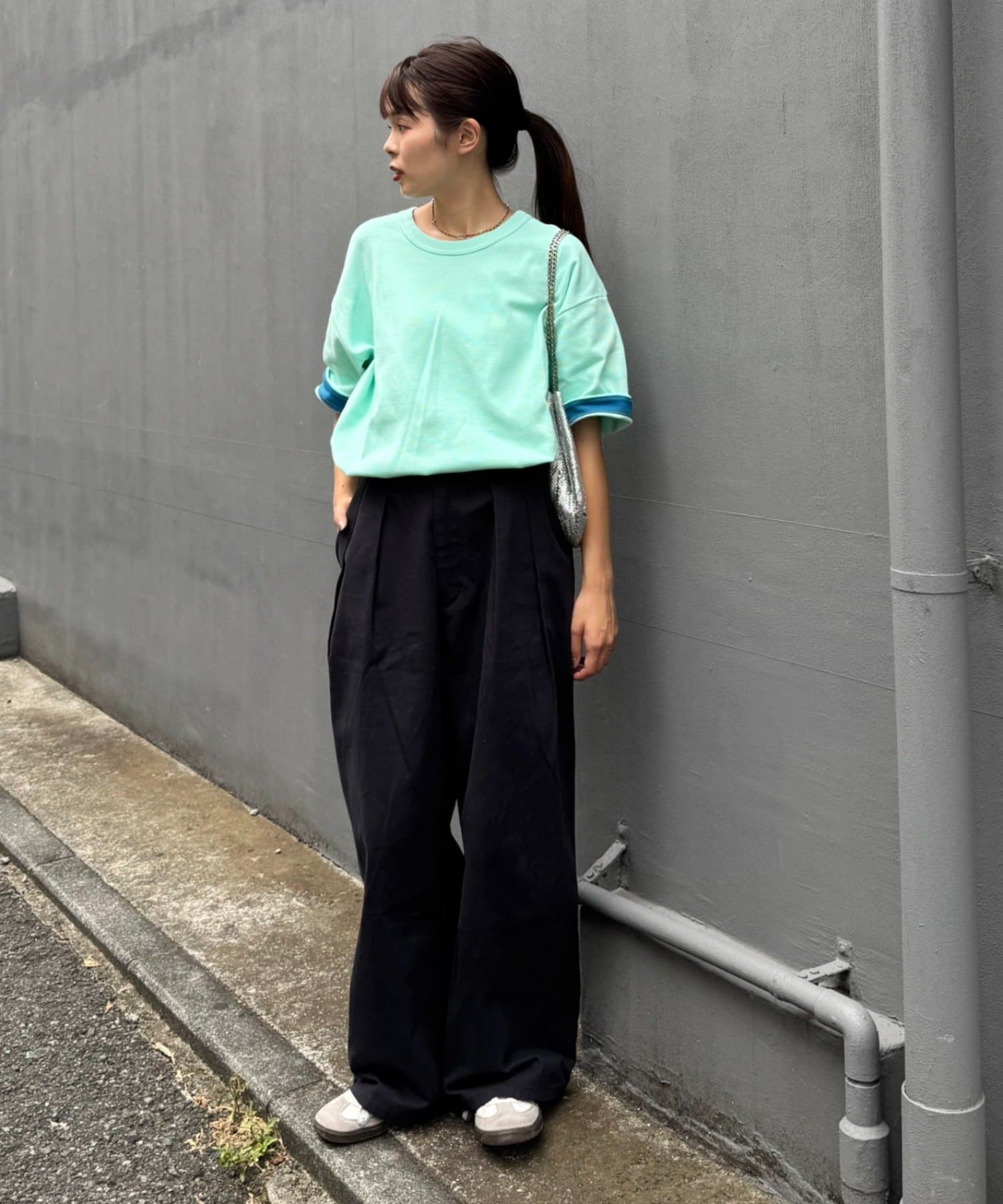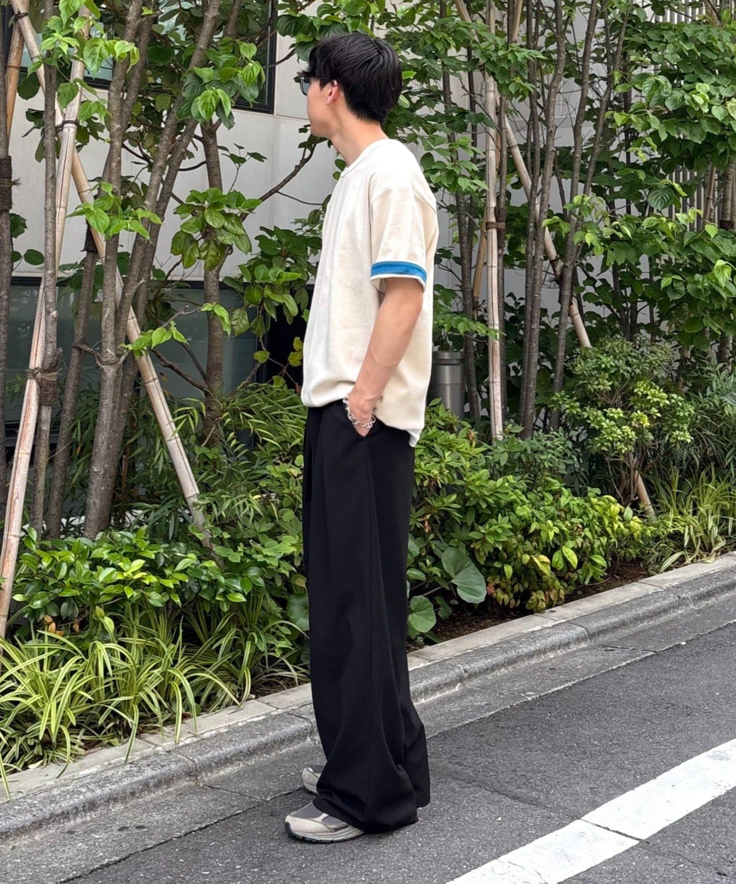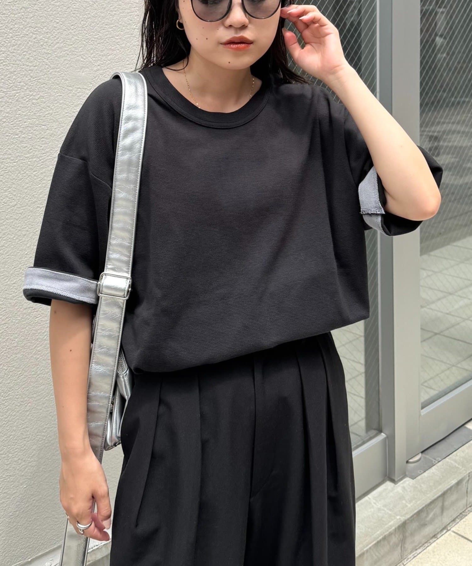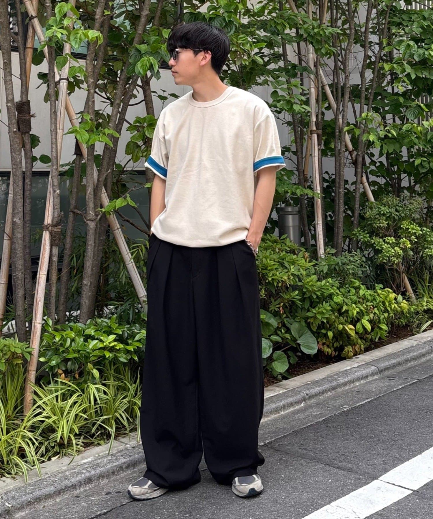 シンプルなハーフスリーブTeeは一枚で様になり、スタイリングの主役にも引き立て役にもなる万能な一着。