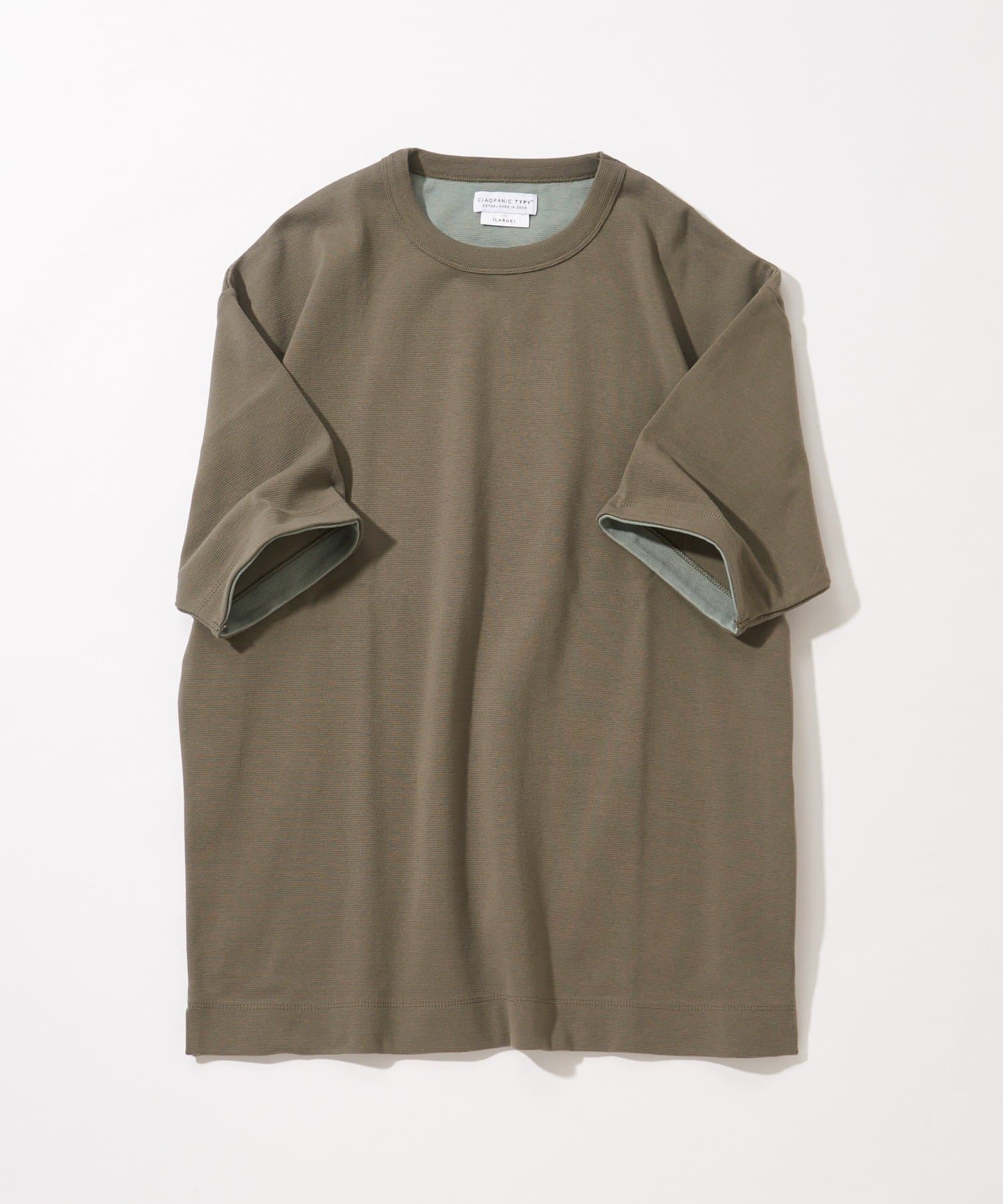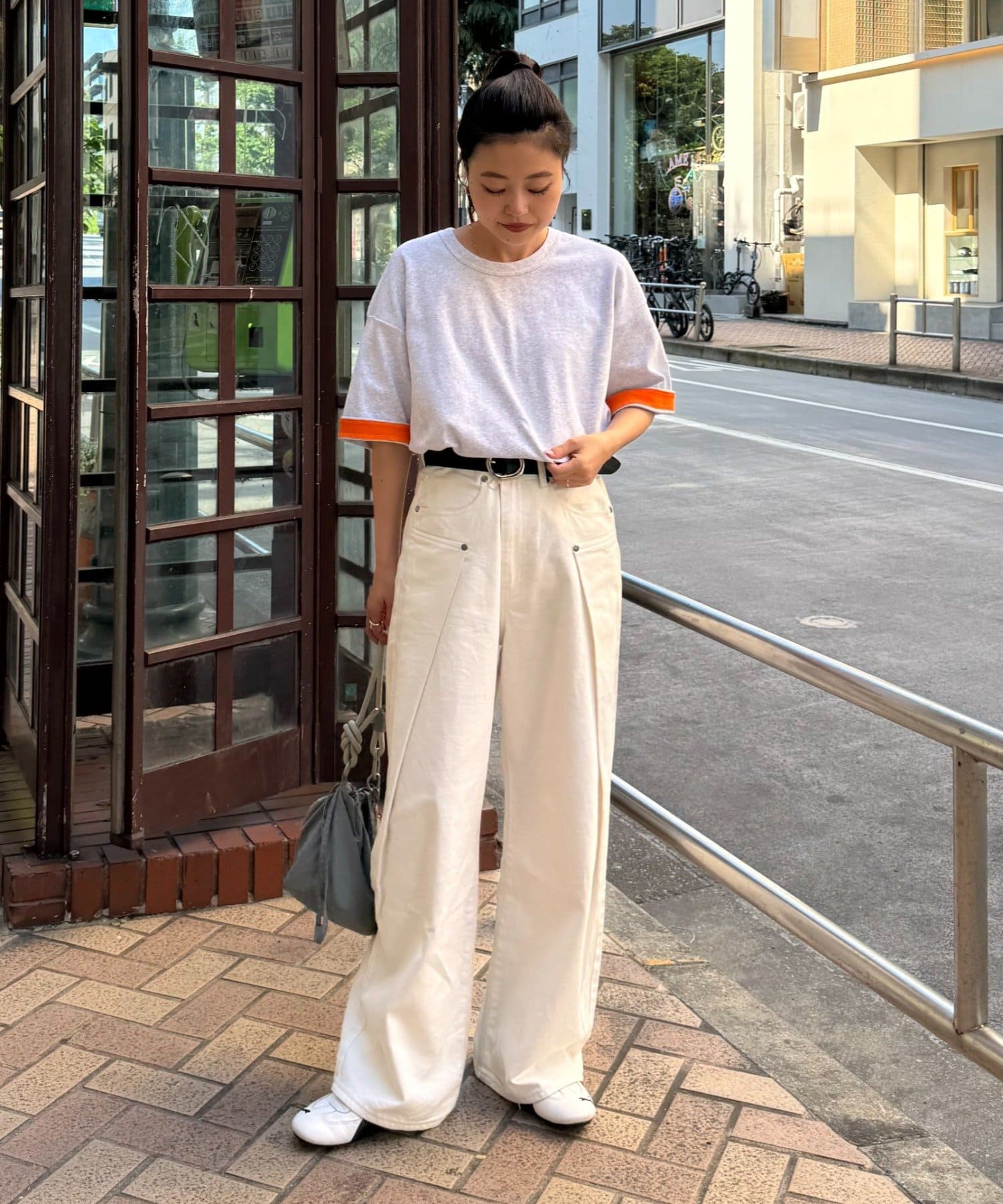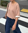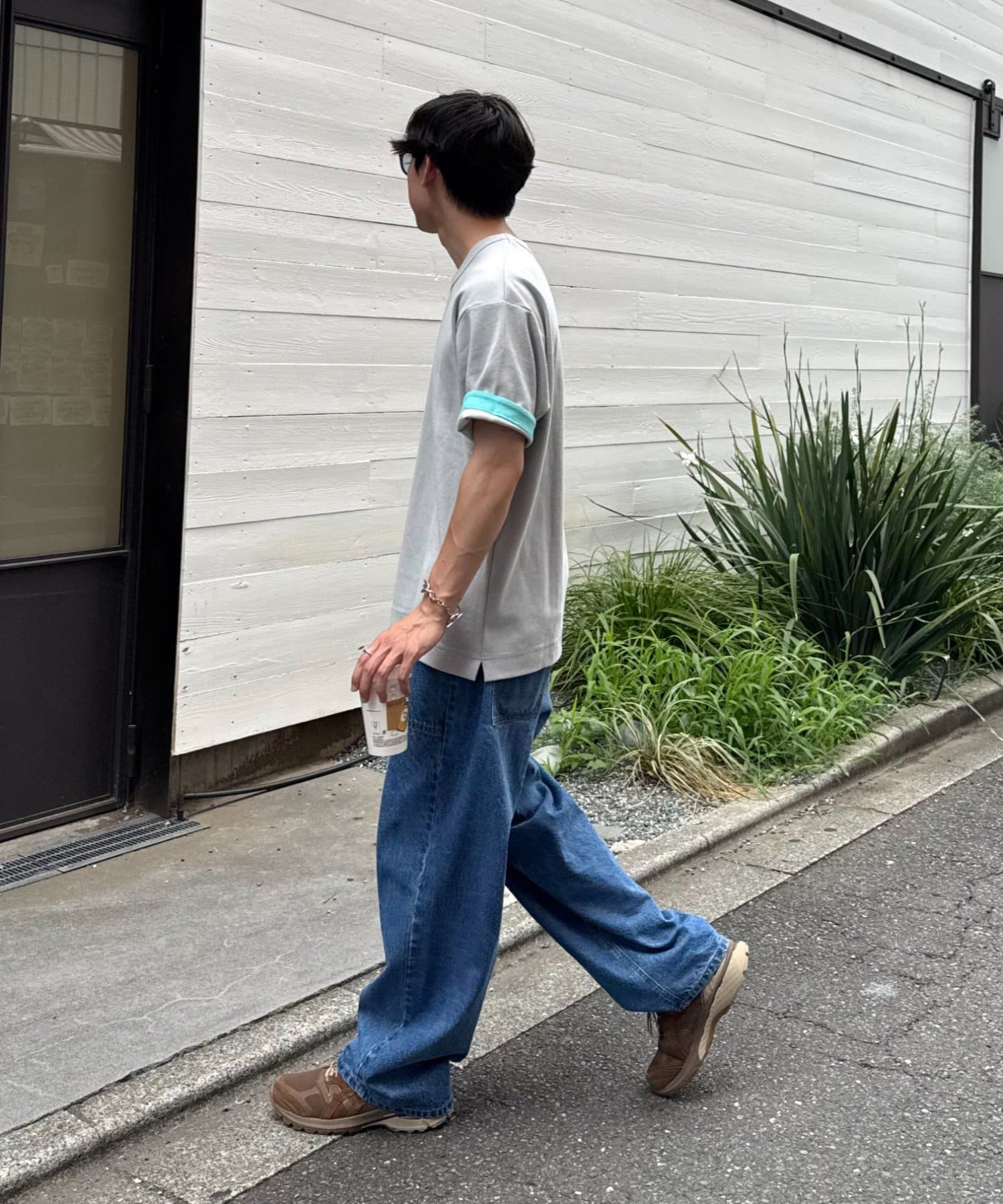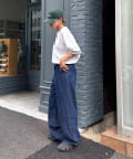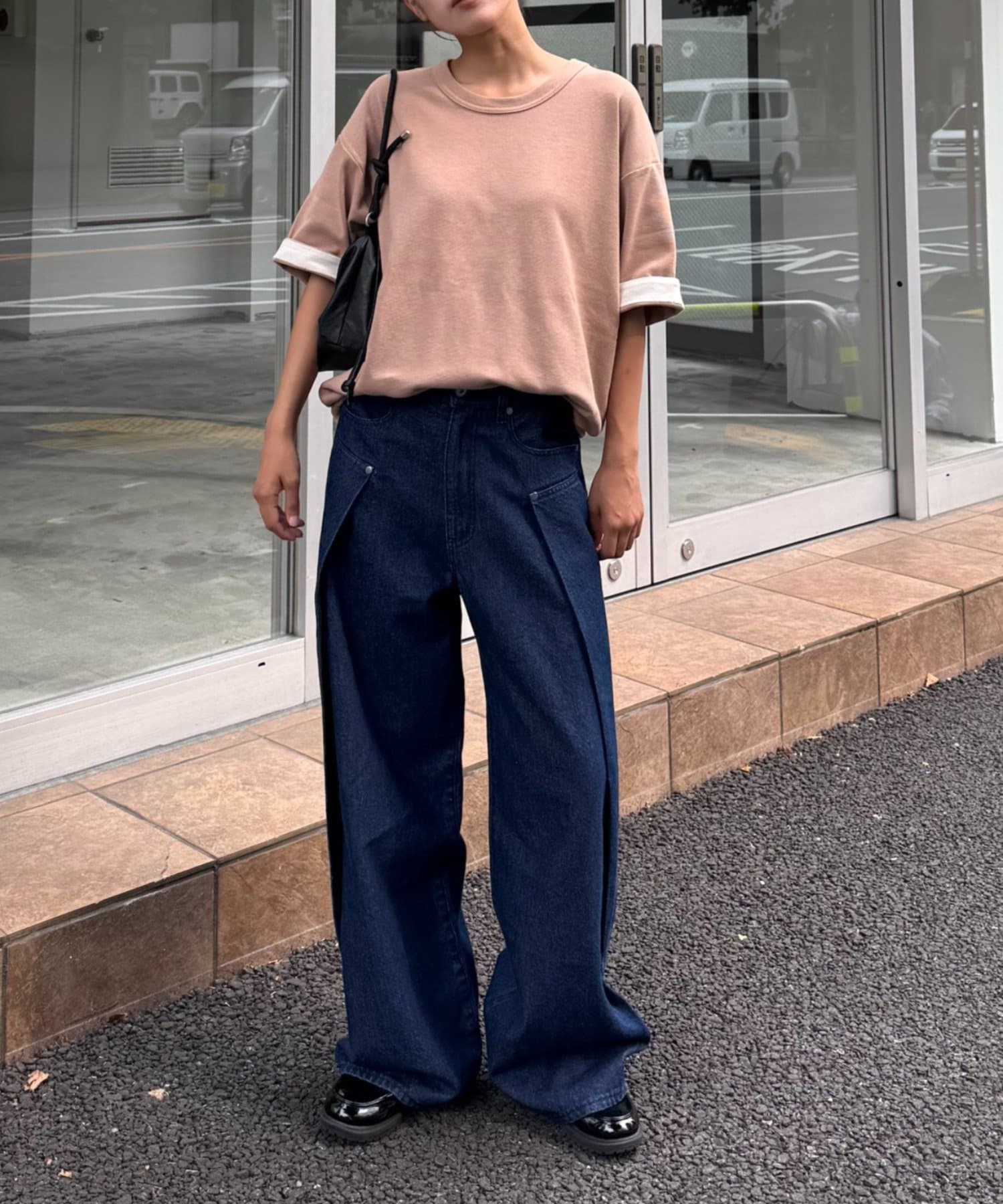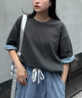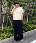 シンプルなハーフスリーブTeeは一枚で様になり、スタイリングの主役にも引き立て役にもなる万能な一着。