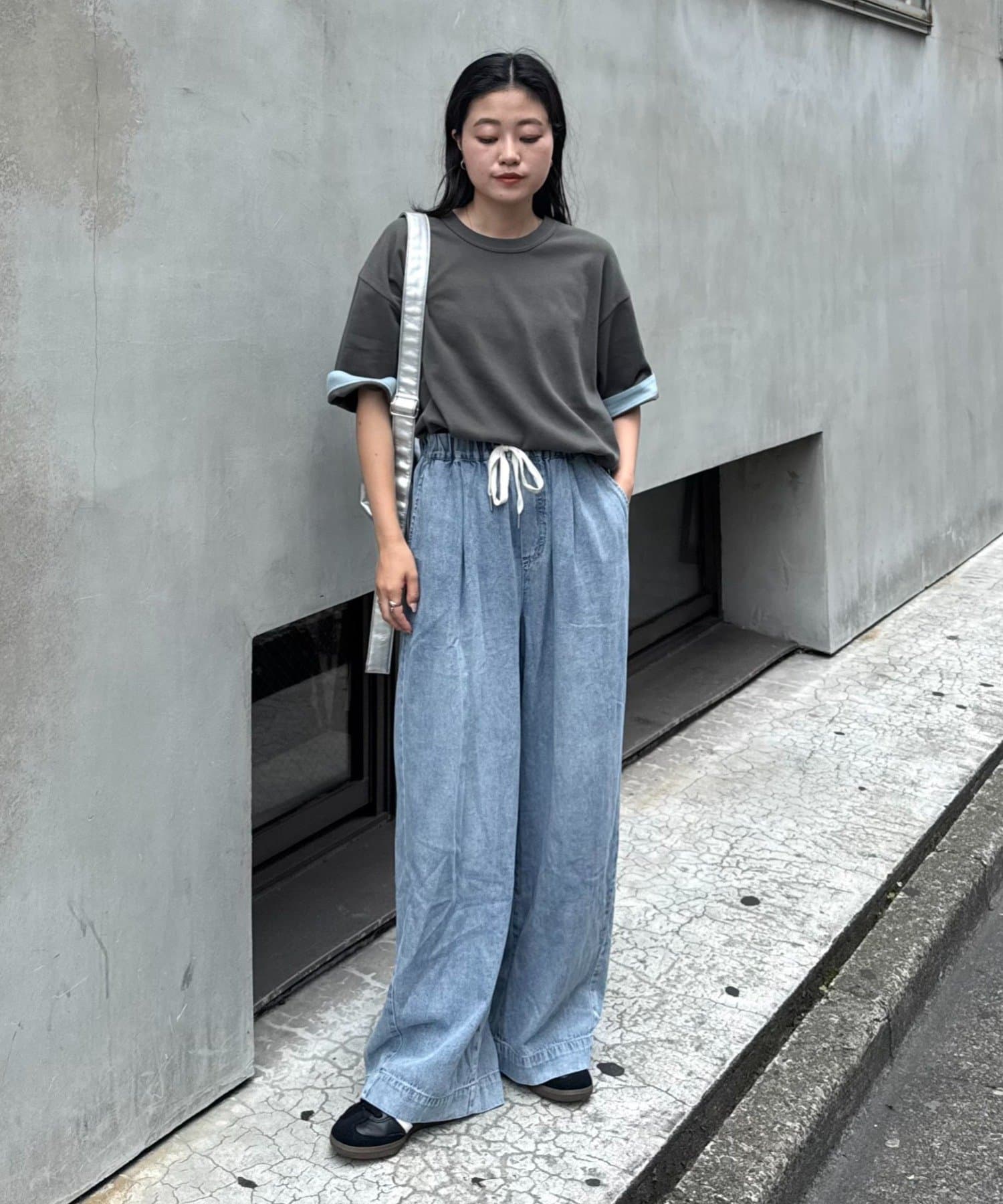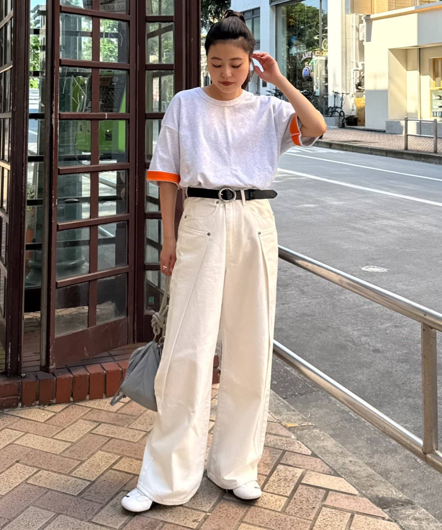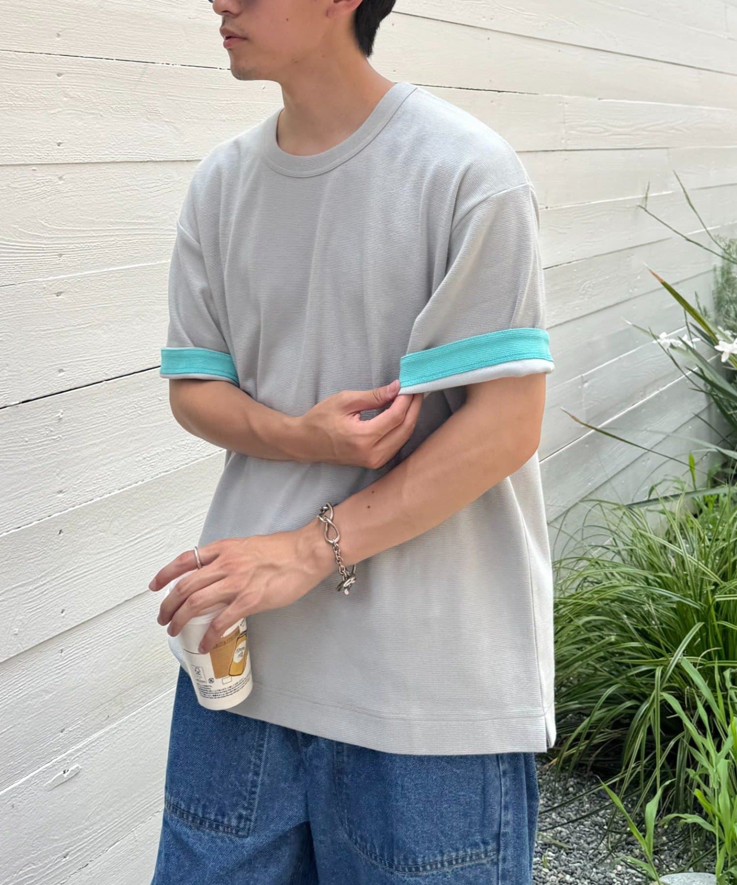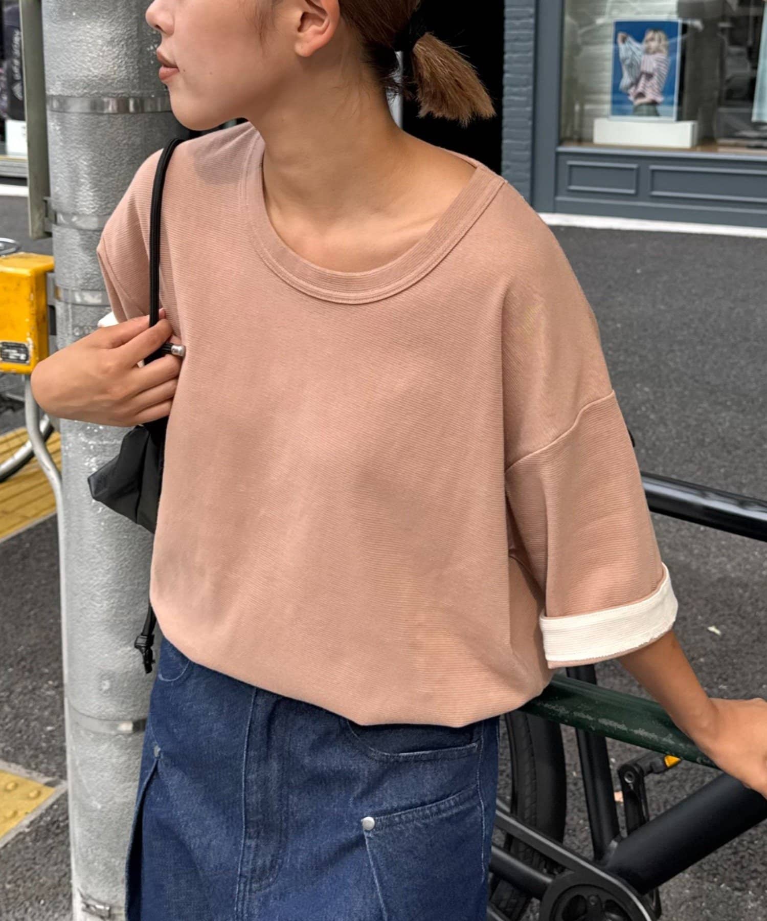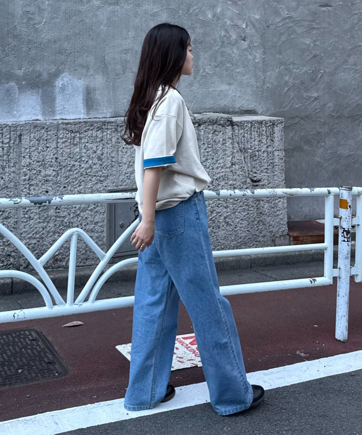 シンプルなハーフスリーブTeeは一枚で様になり、スタイリングの主役にも引き立て役にもなる万能な一着。