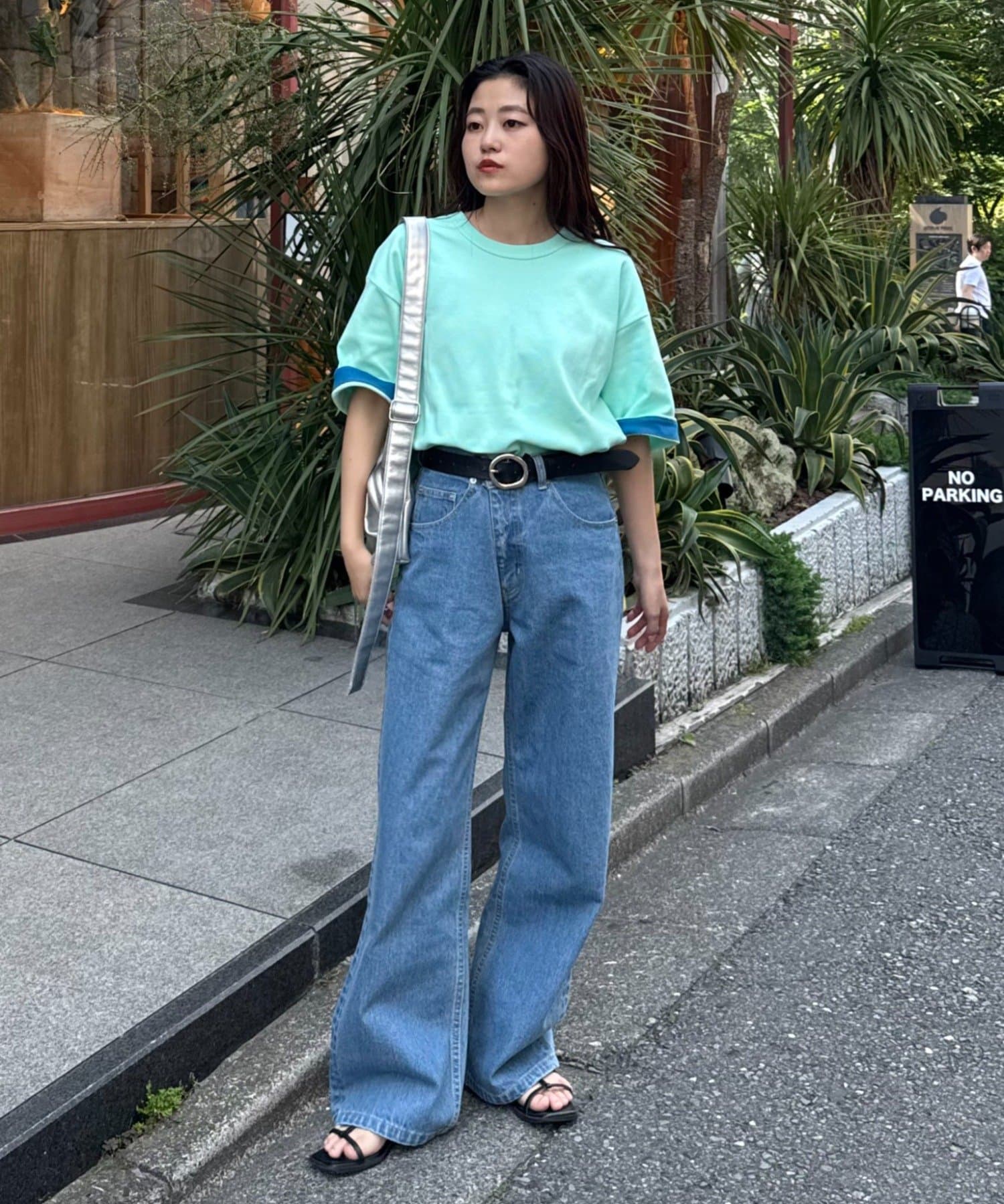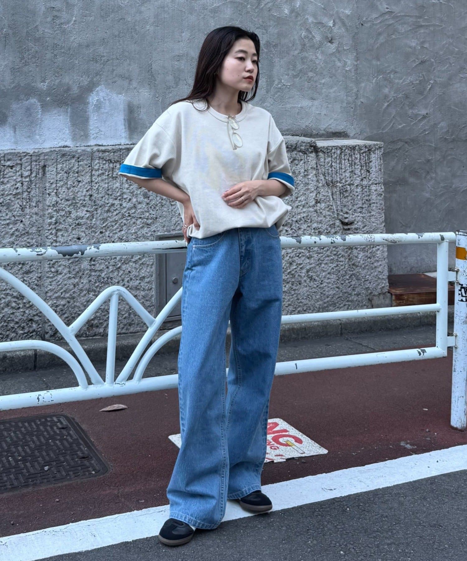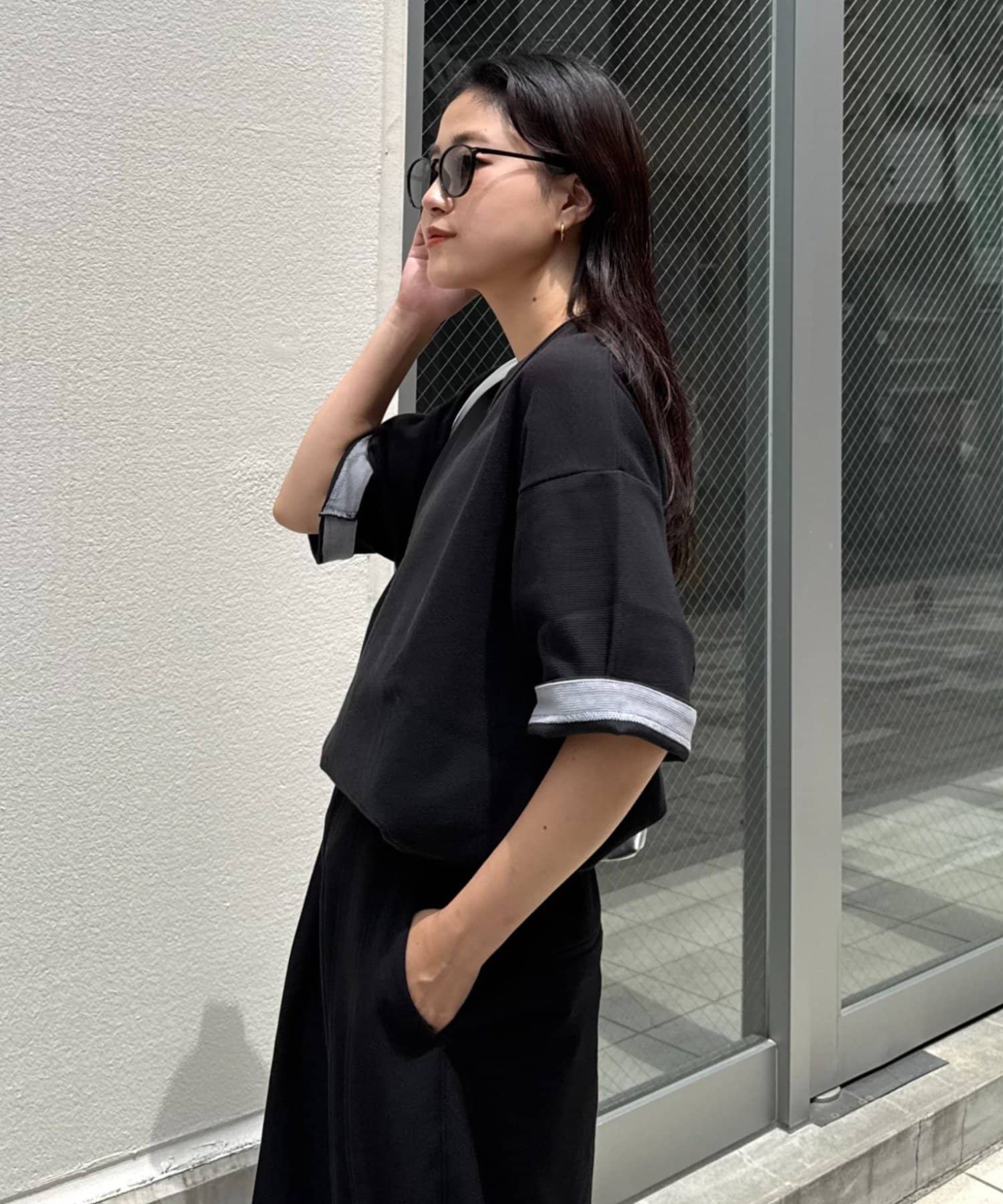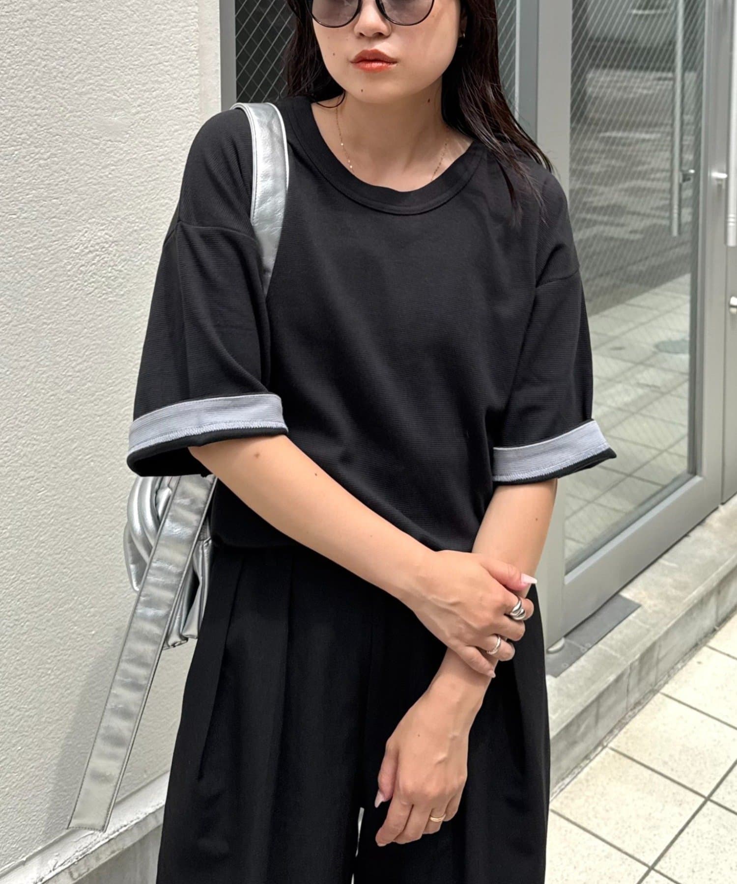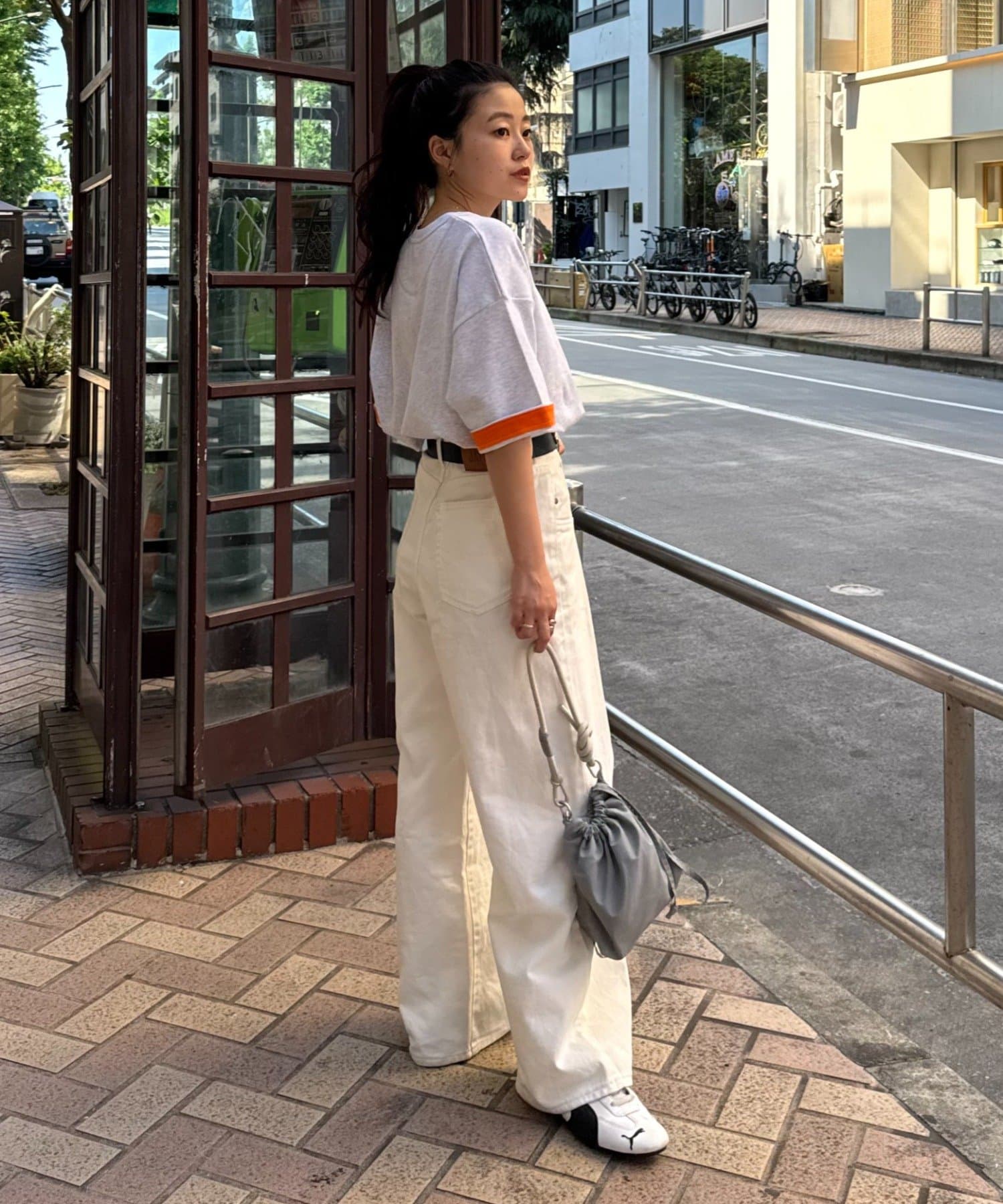 シンプルなハーフスリーブTeeは一枚で様になり、スタイリングの主役にも引き立て役にもなる万能な一着。