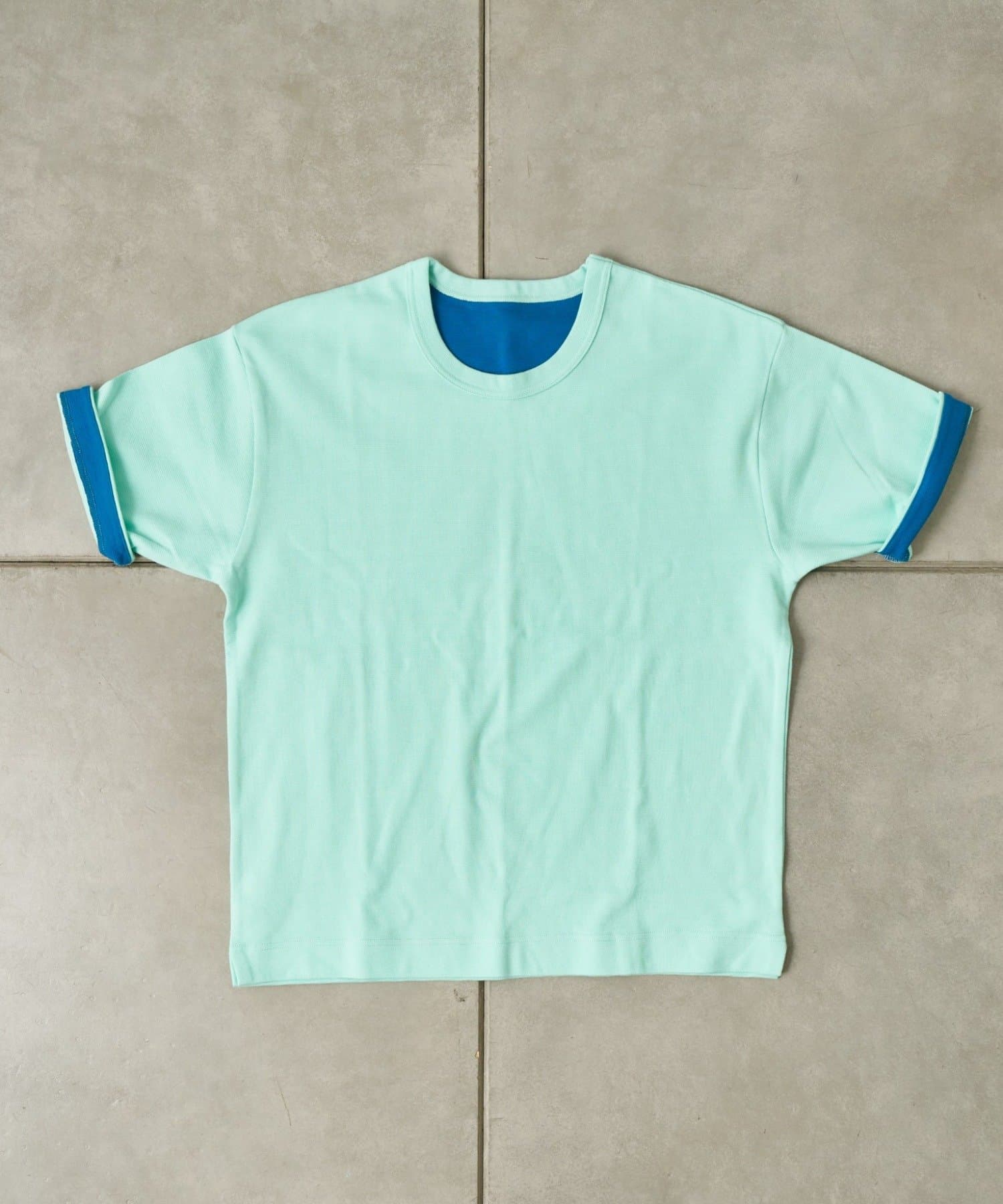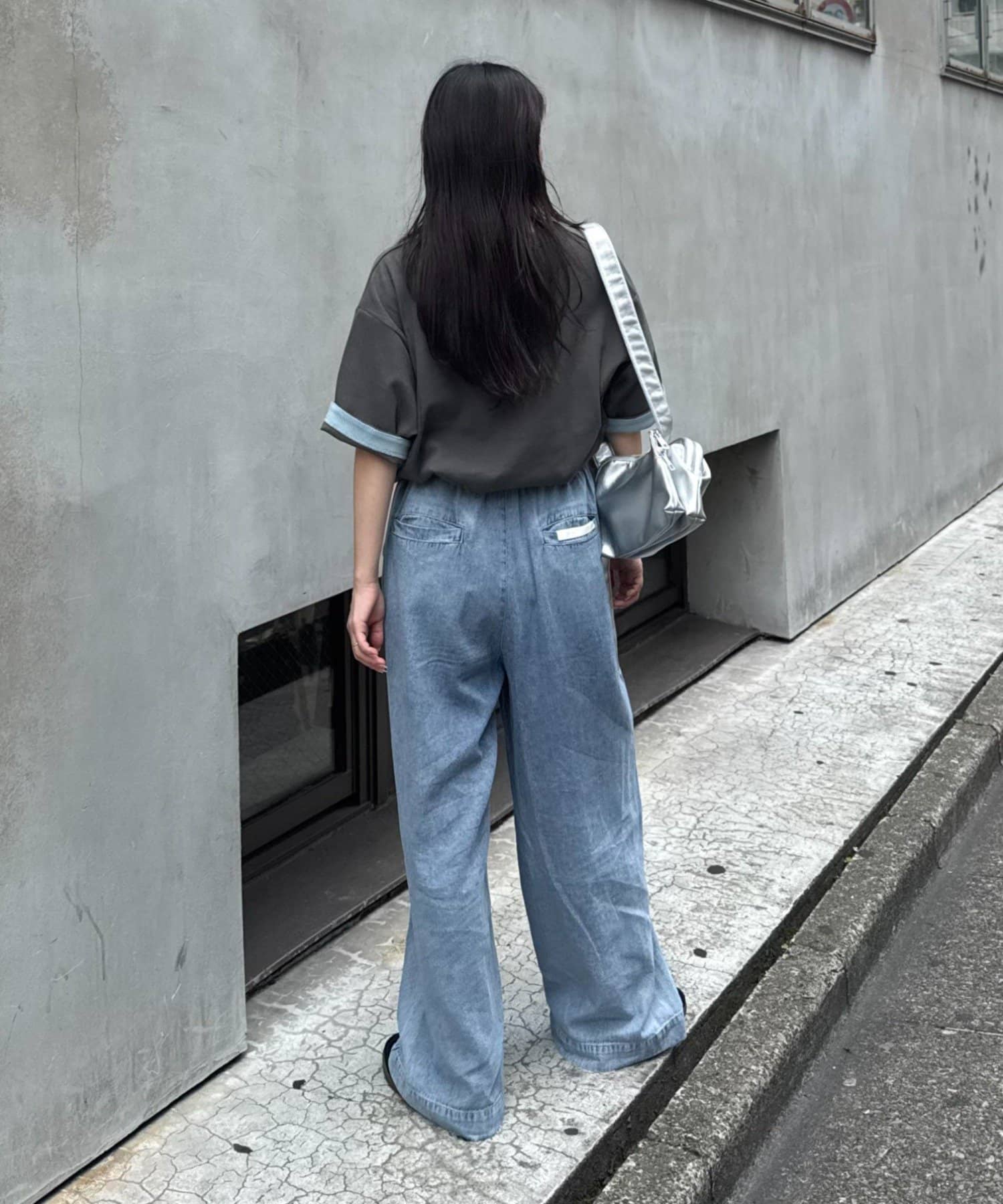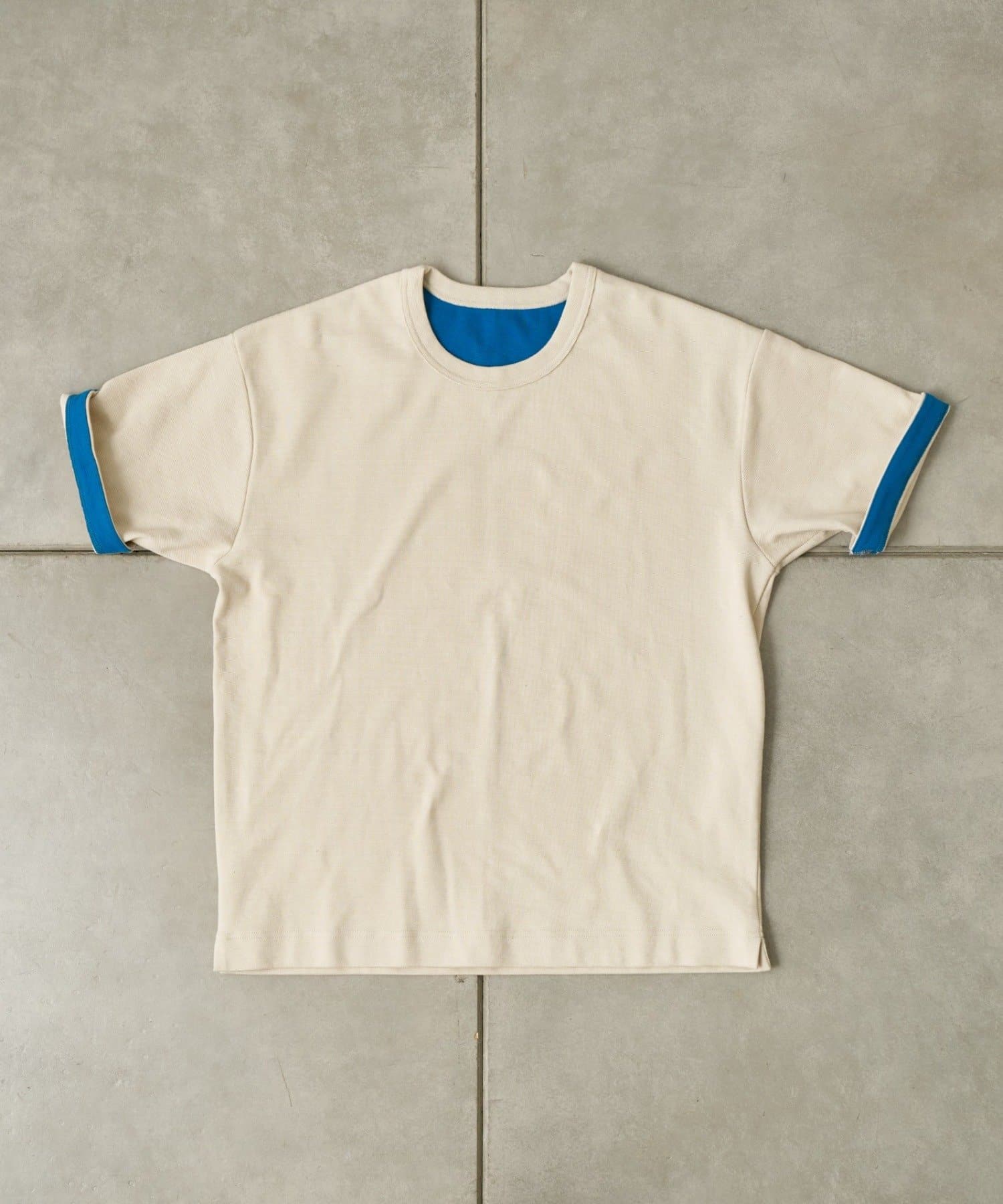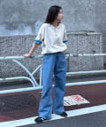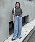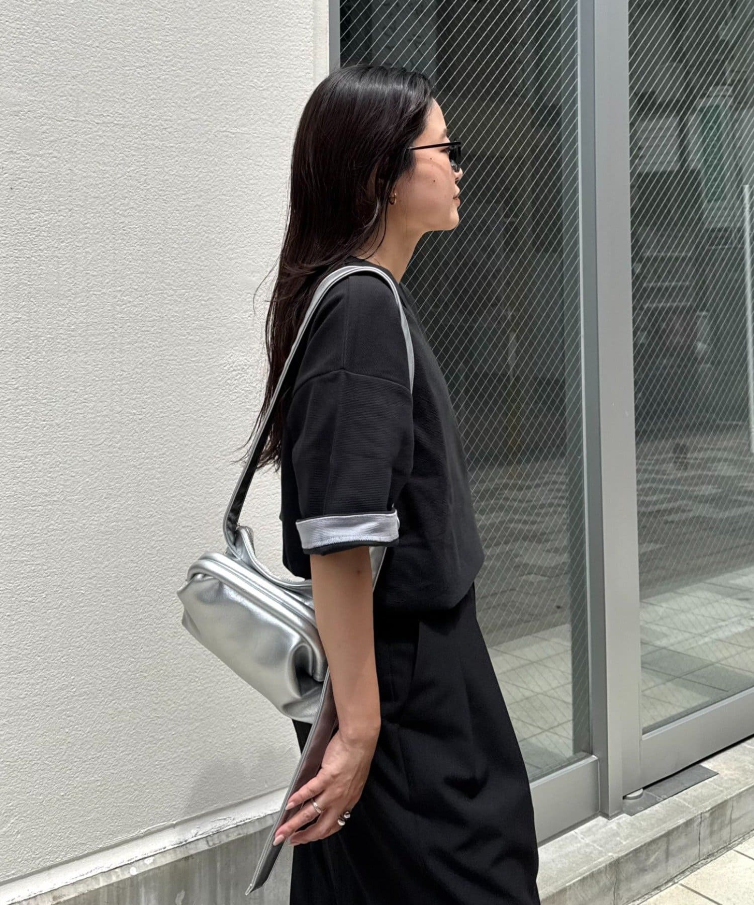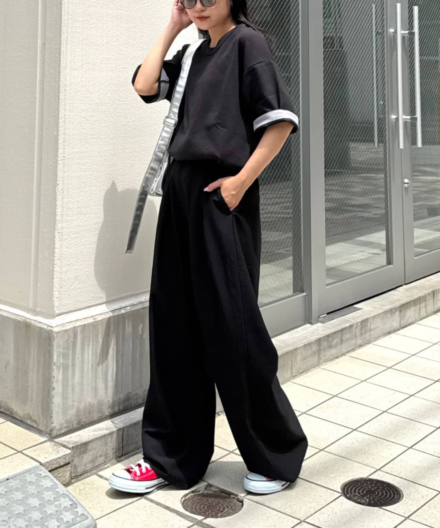 シンプルなハーフスリーブTeeは一枚で様になり、スタイリングの主役にも引き立て役にもなる万能な一着。
