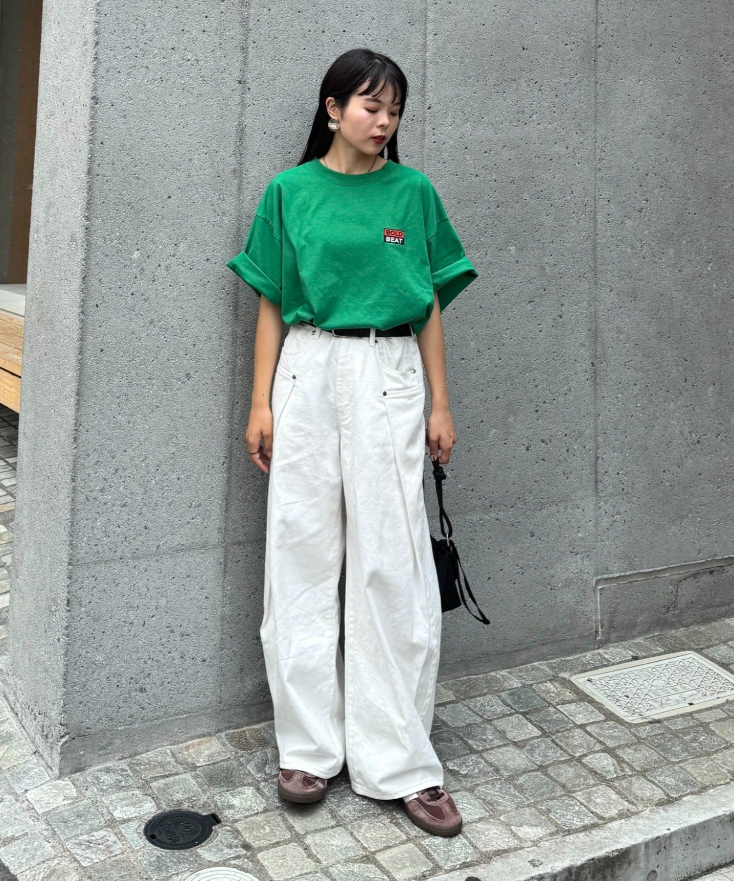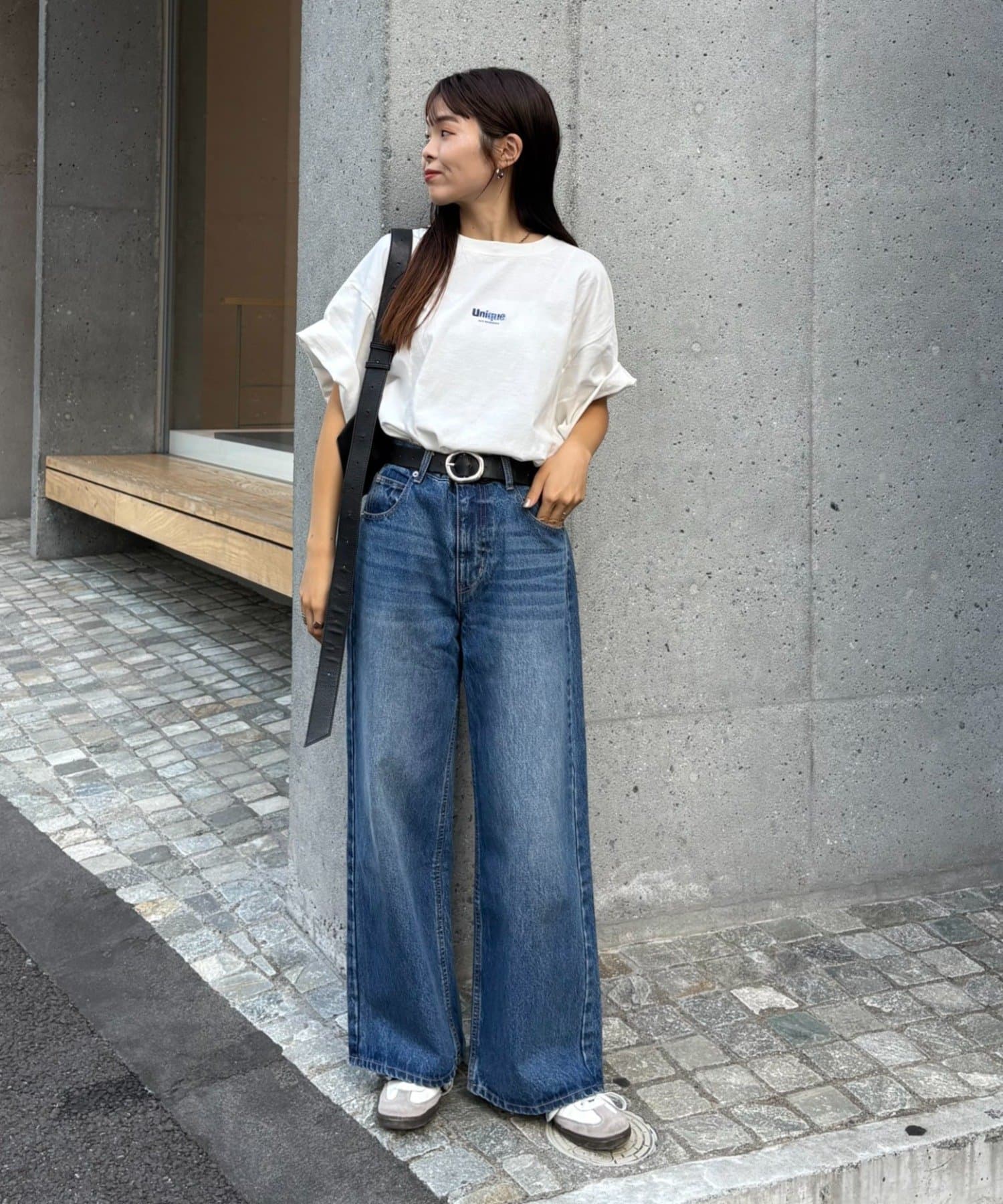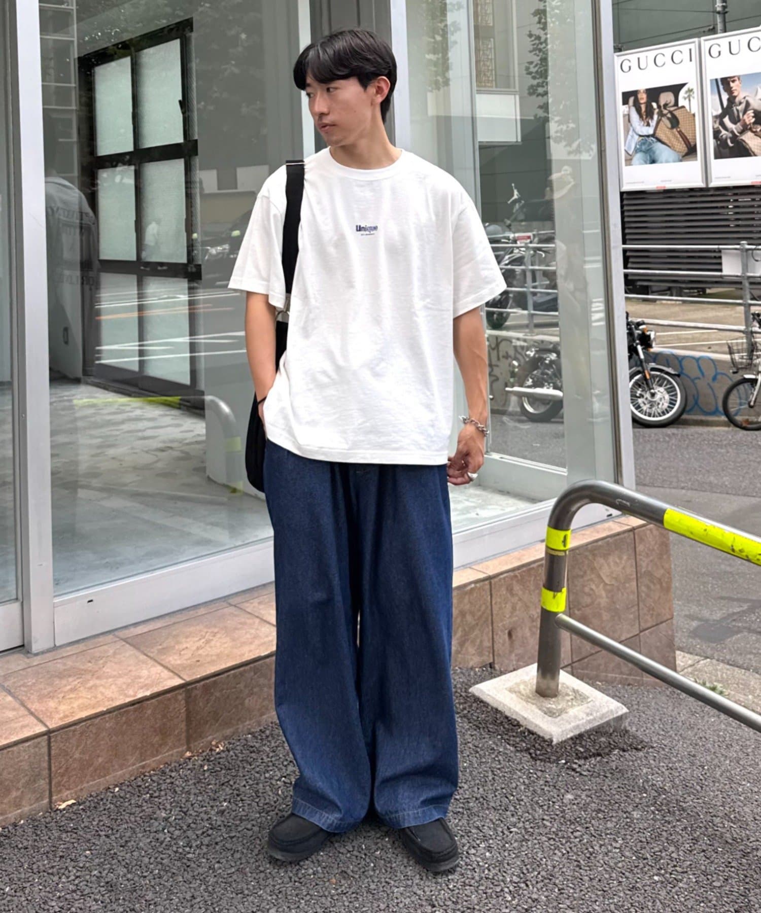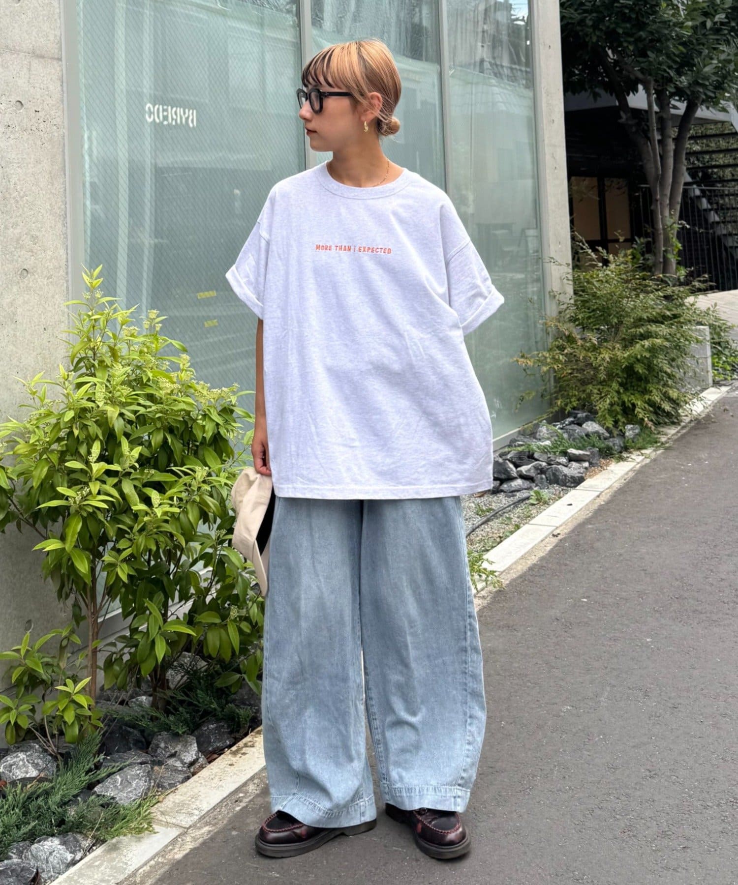 パンツを太めのシルエットにすると一気にストリート感がUP◎