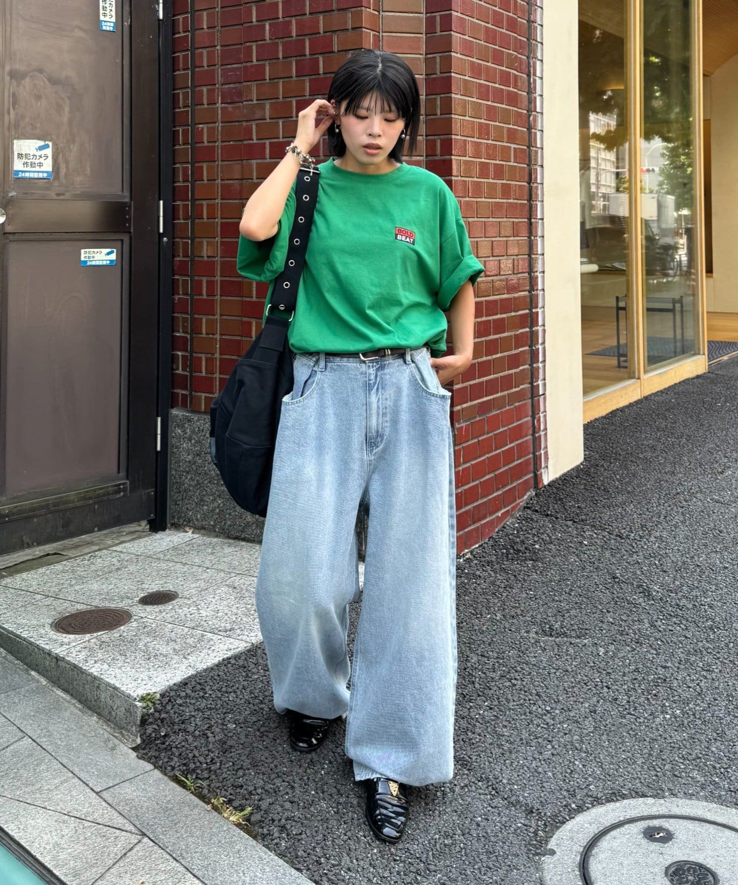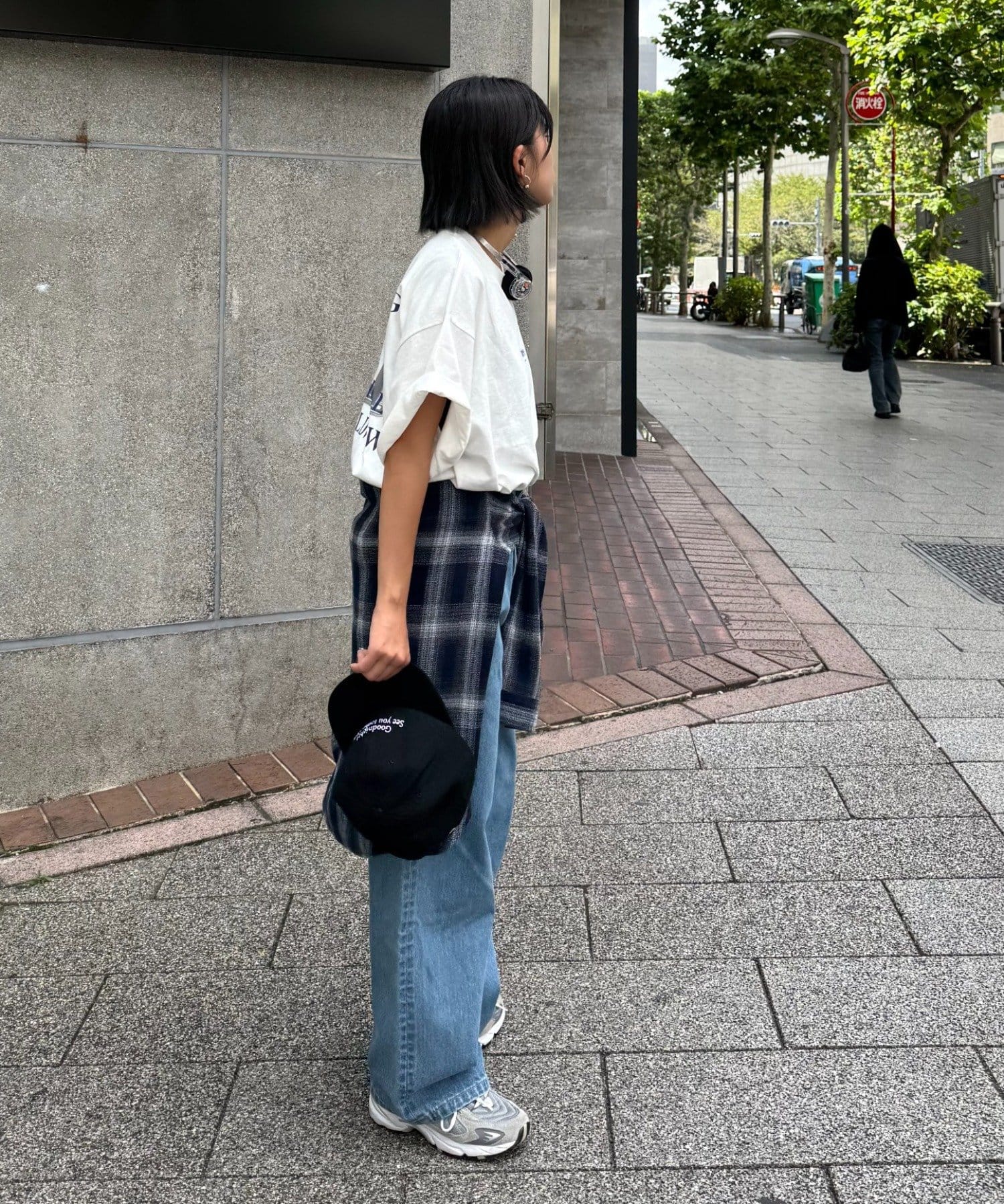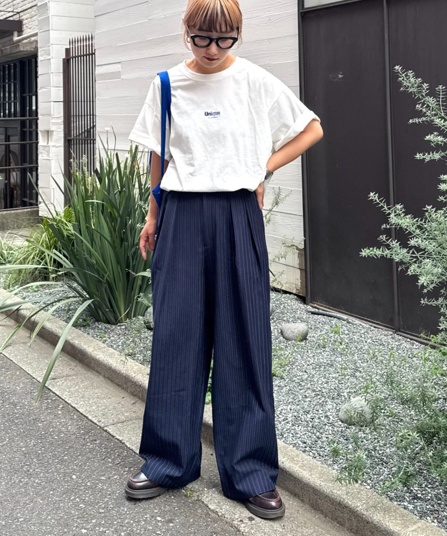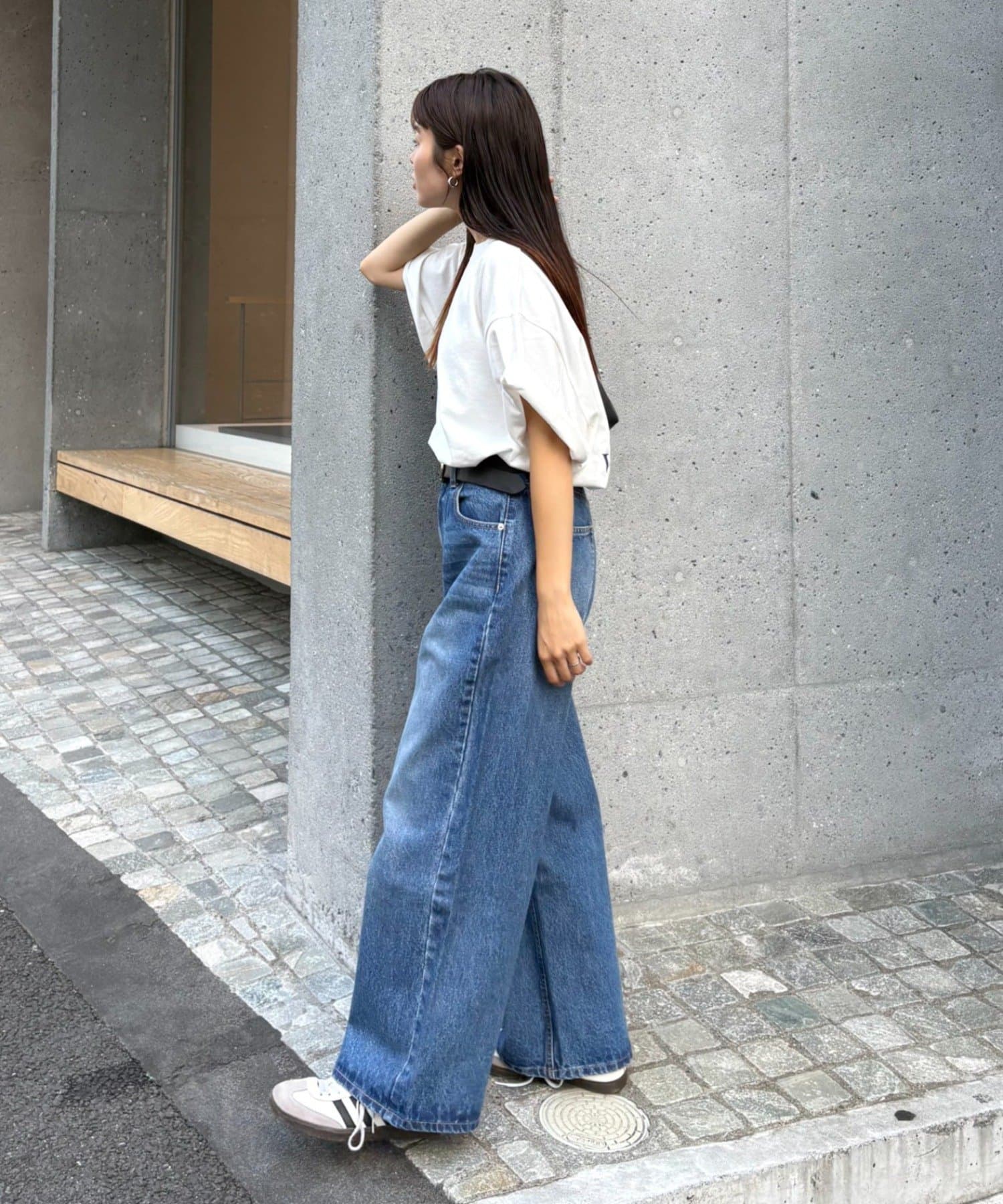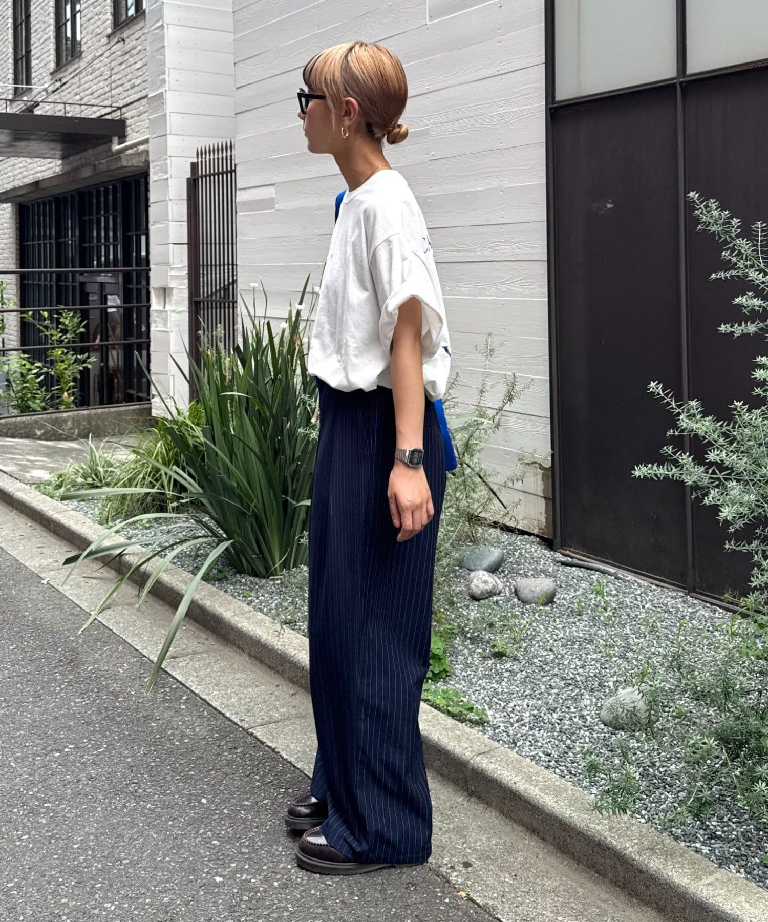 パンツを太めのシルエットにすると一気にストリート感がUP◎