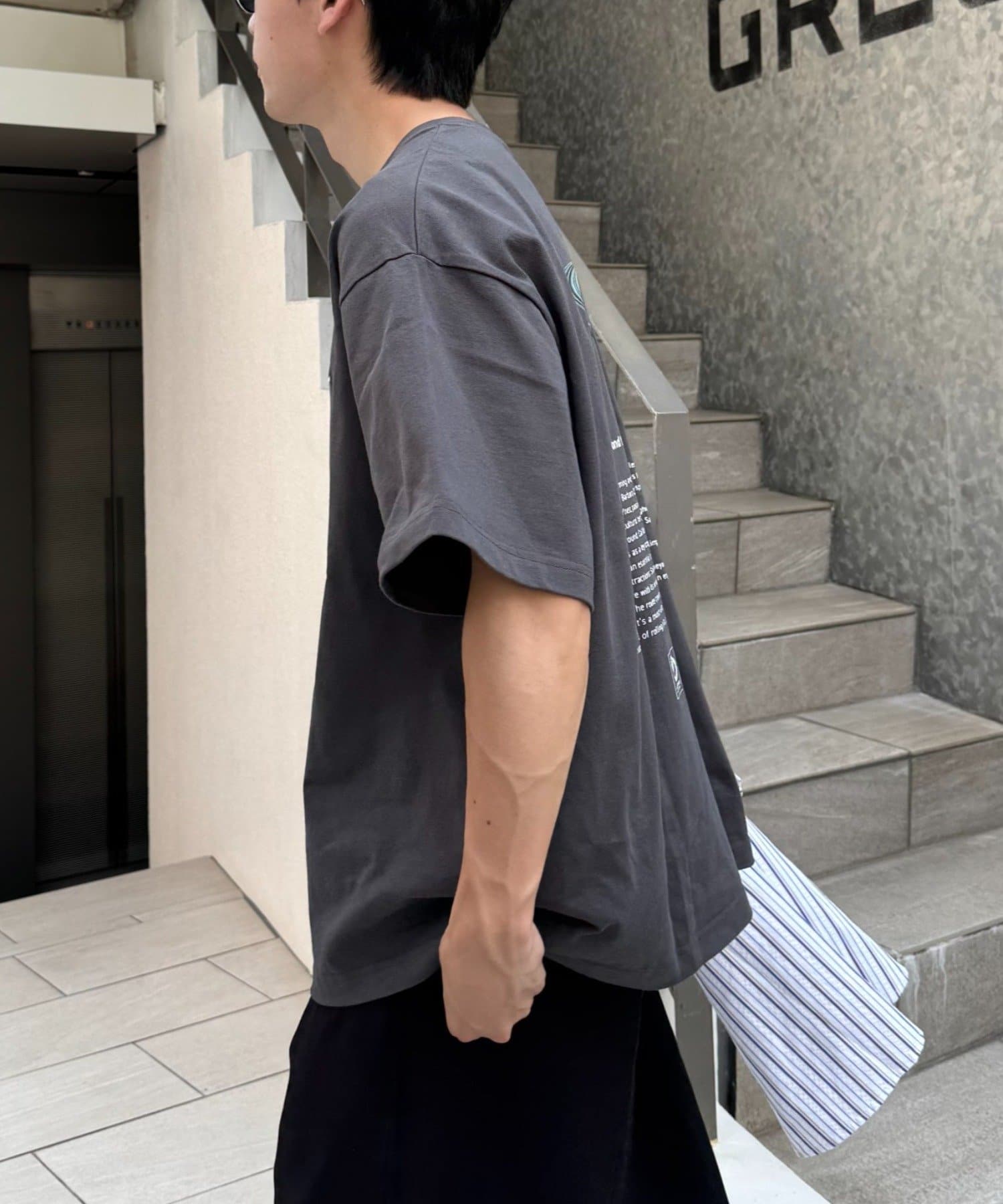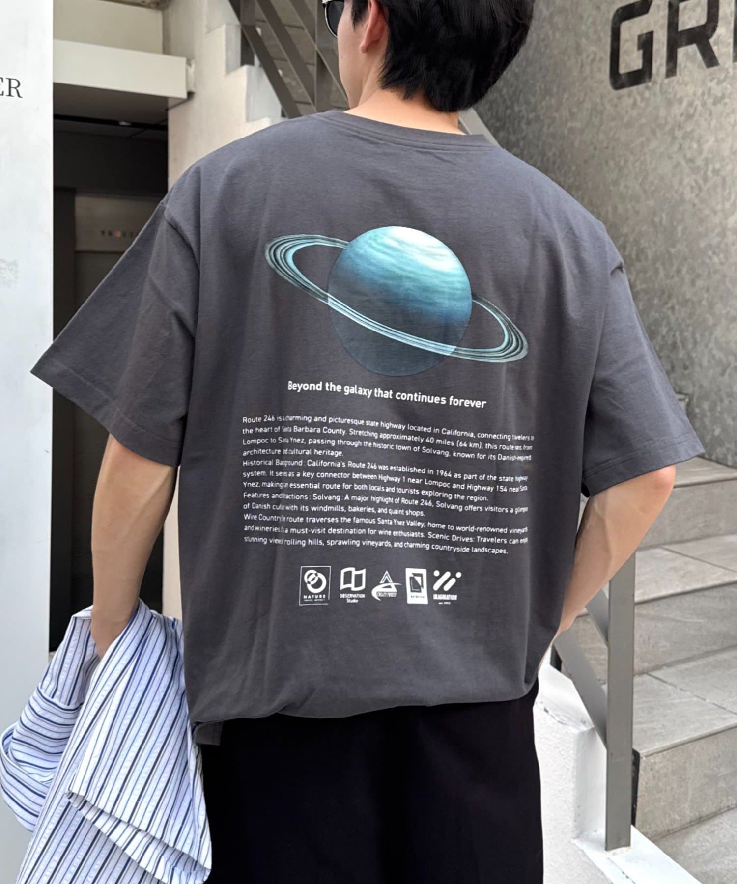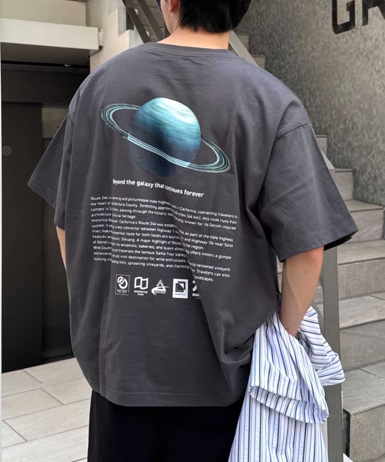 個性が光るバックプリントをアソートでデザインし、スタイリングの主役になる一枚に仕上げました。