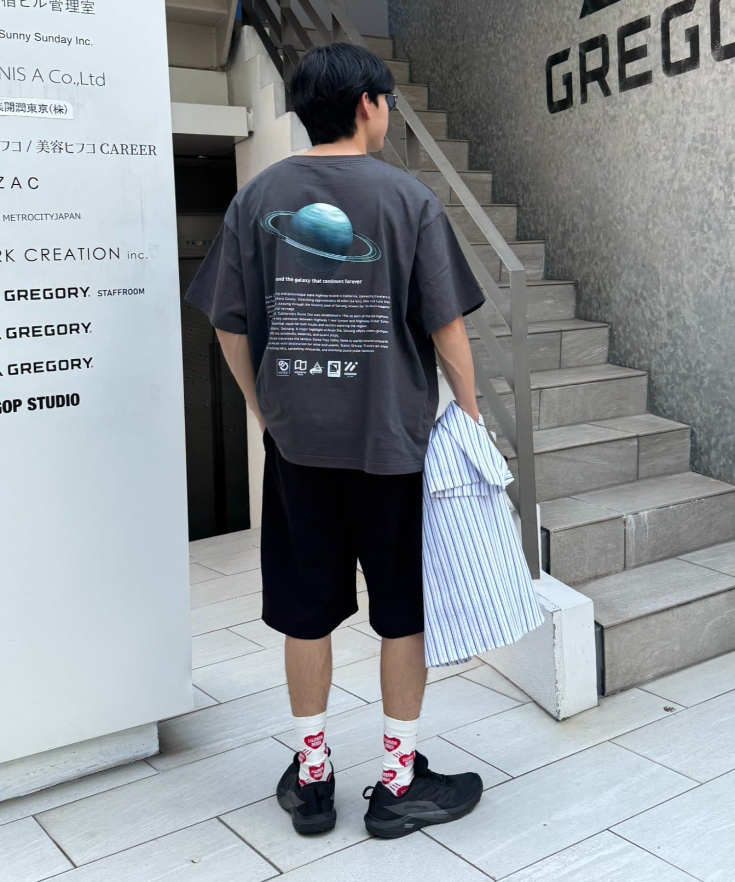 バックプリントが際立つ、シンプルなデニム・カーゴパンツが鉄板コーデ!