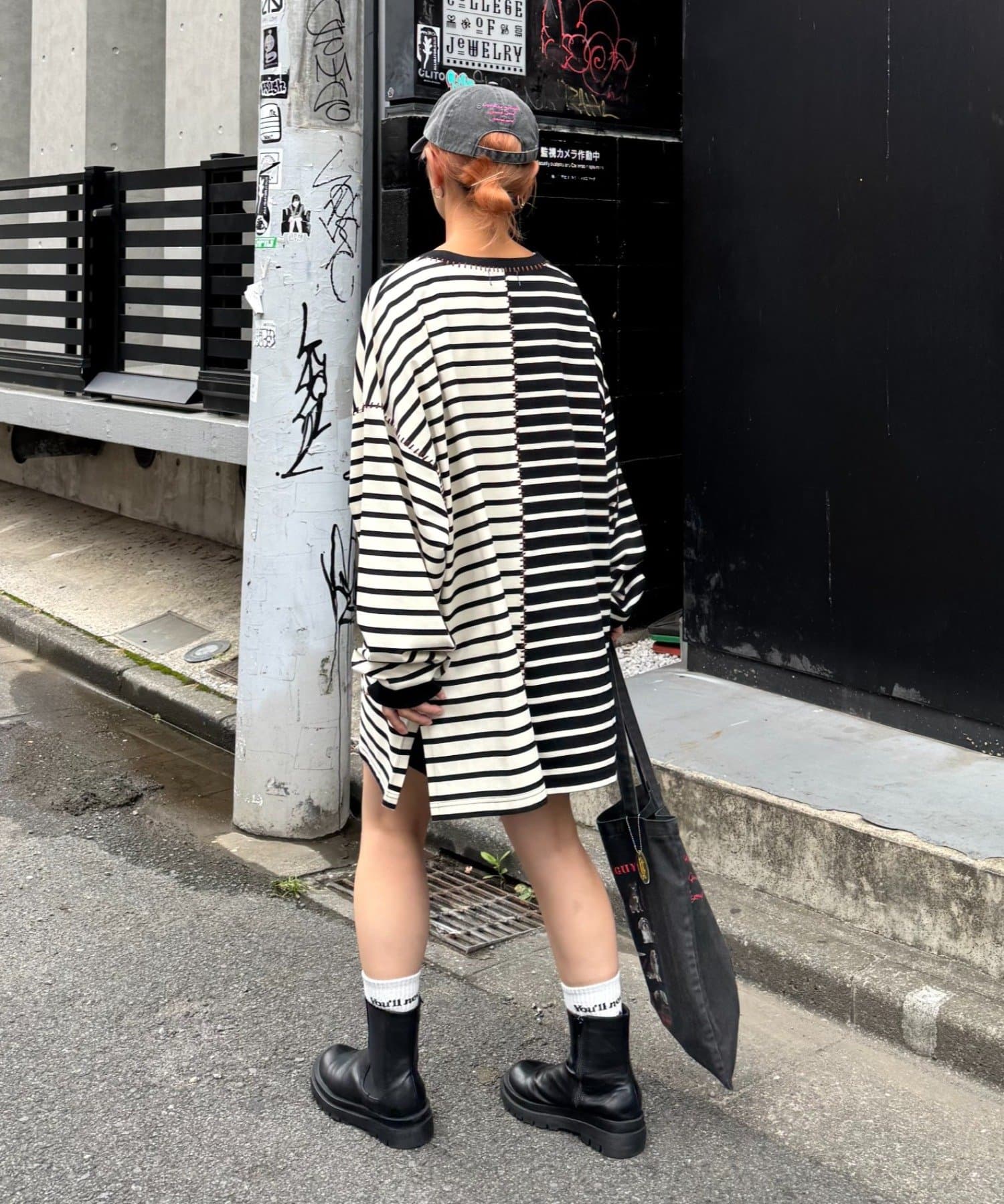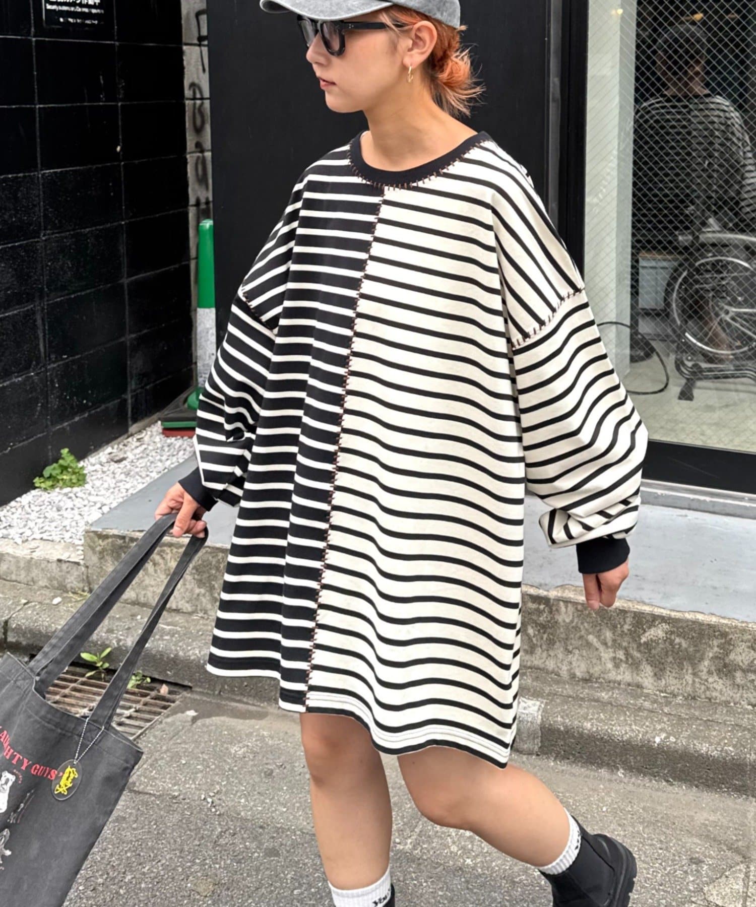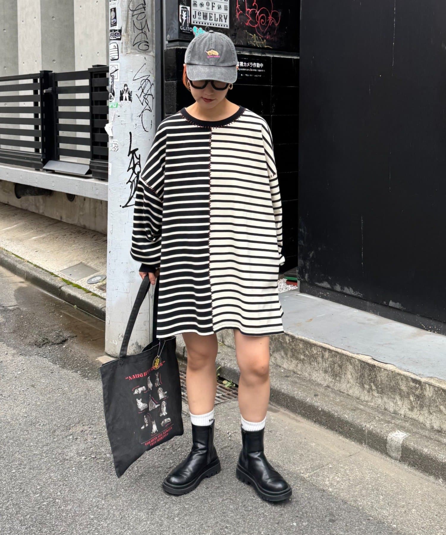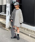 ユニセックスなので女性がワンピ風に着るのも可愛い◎