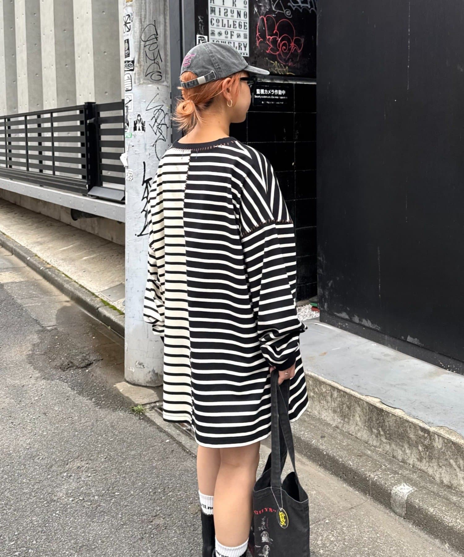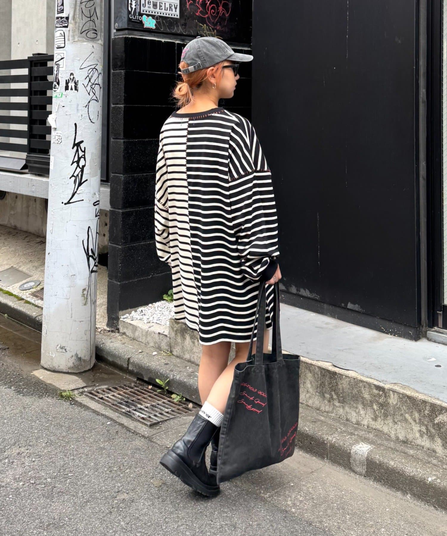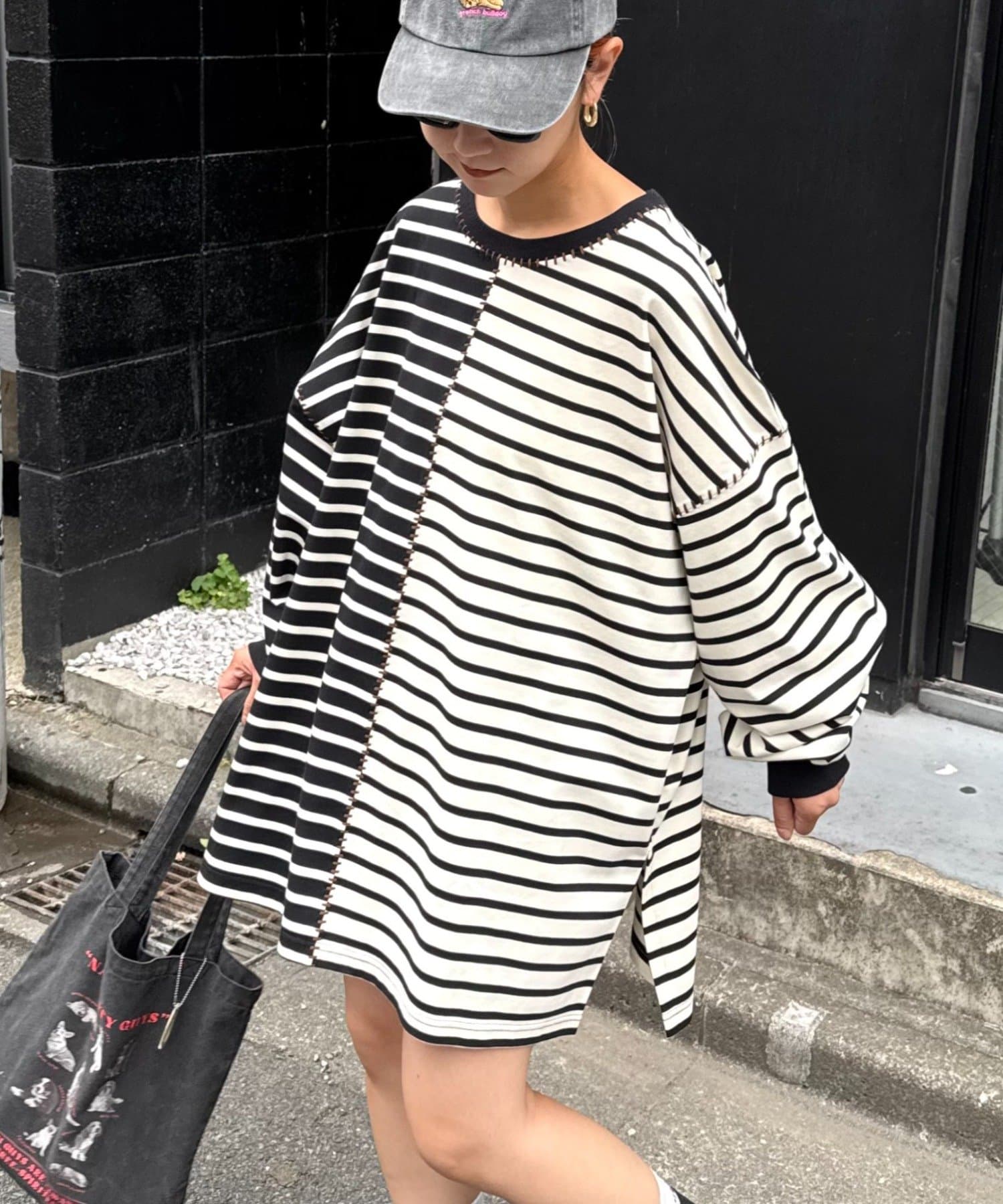 ユニセックスなので女性がワンピ風に着るのも可愛い◎