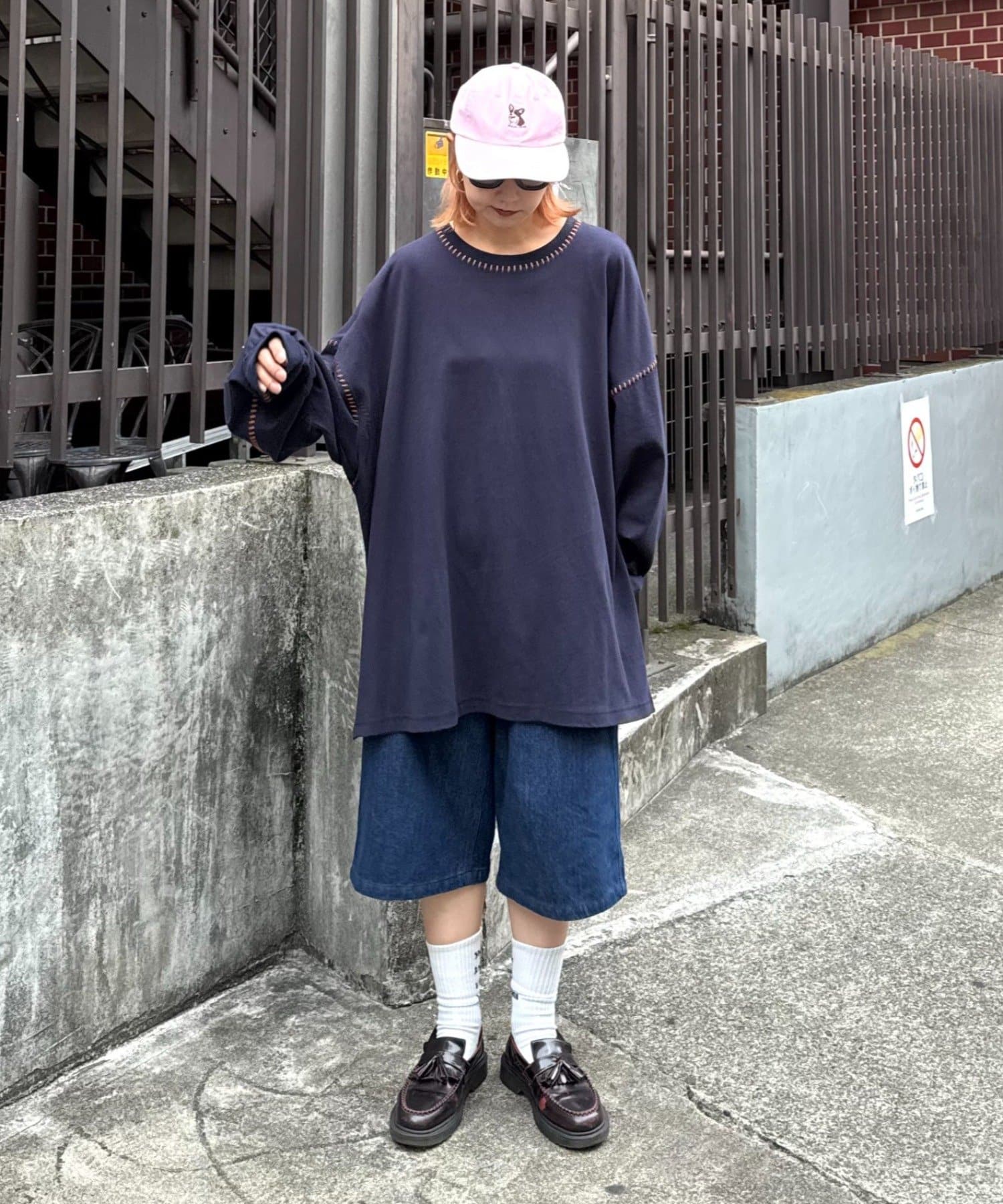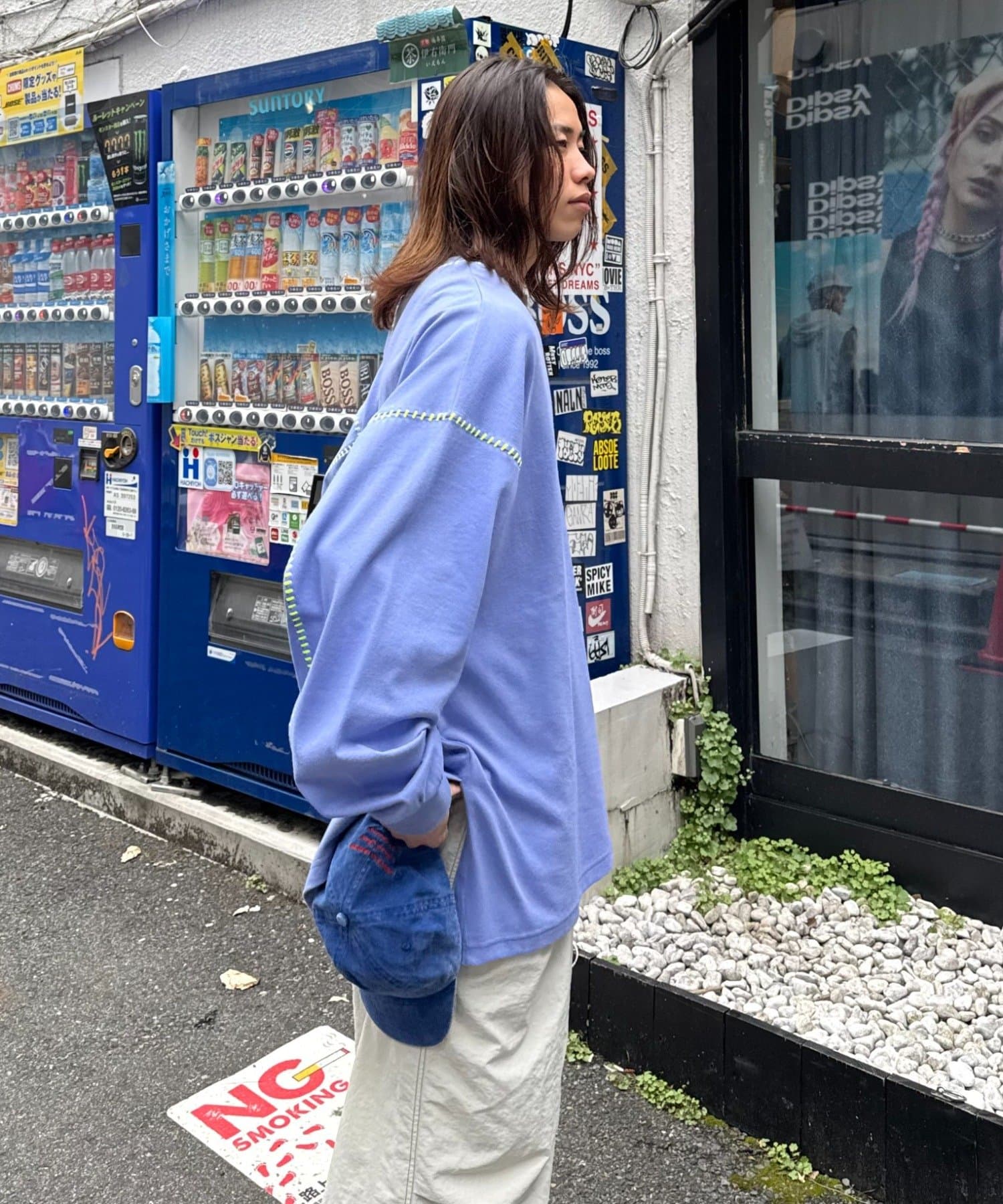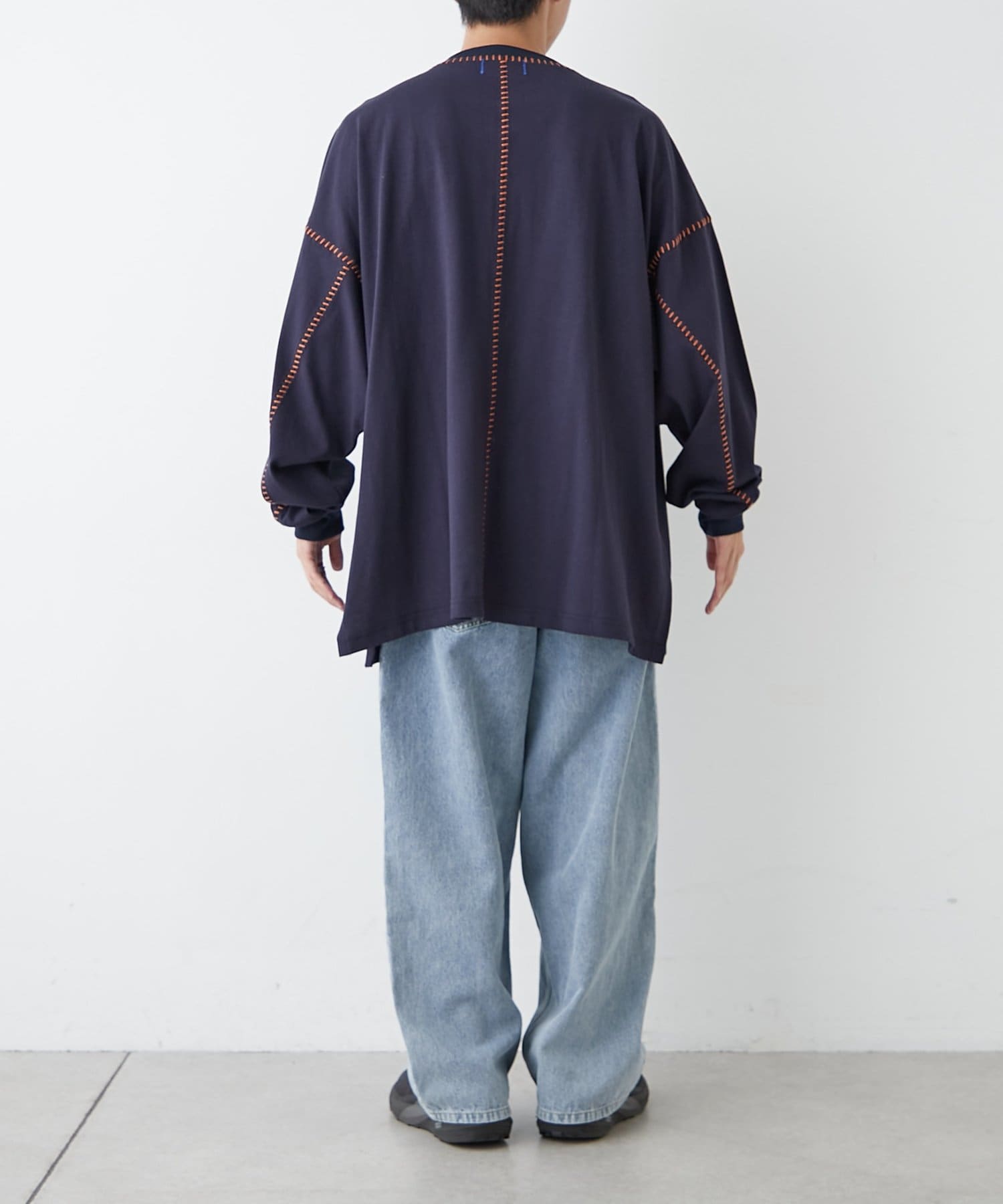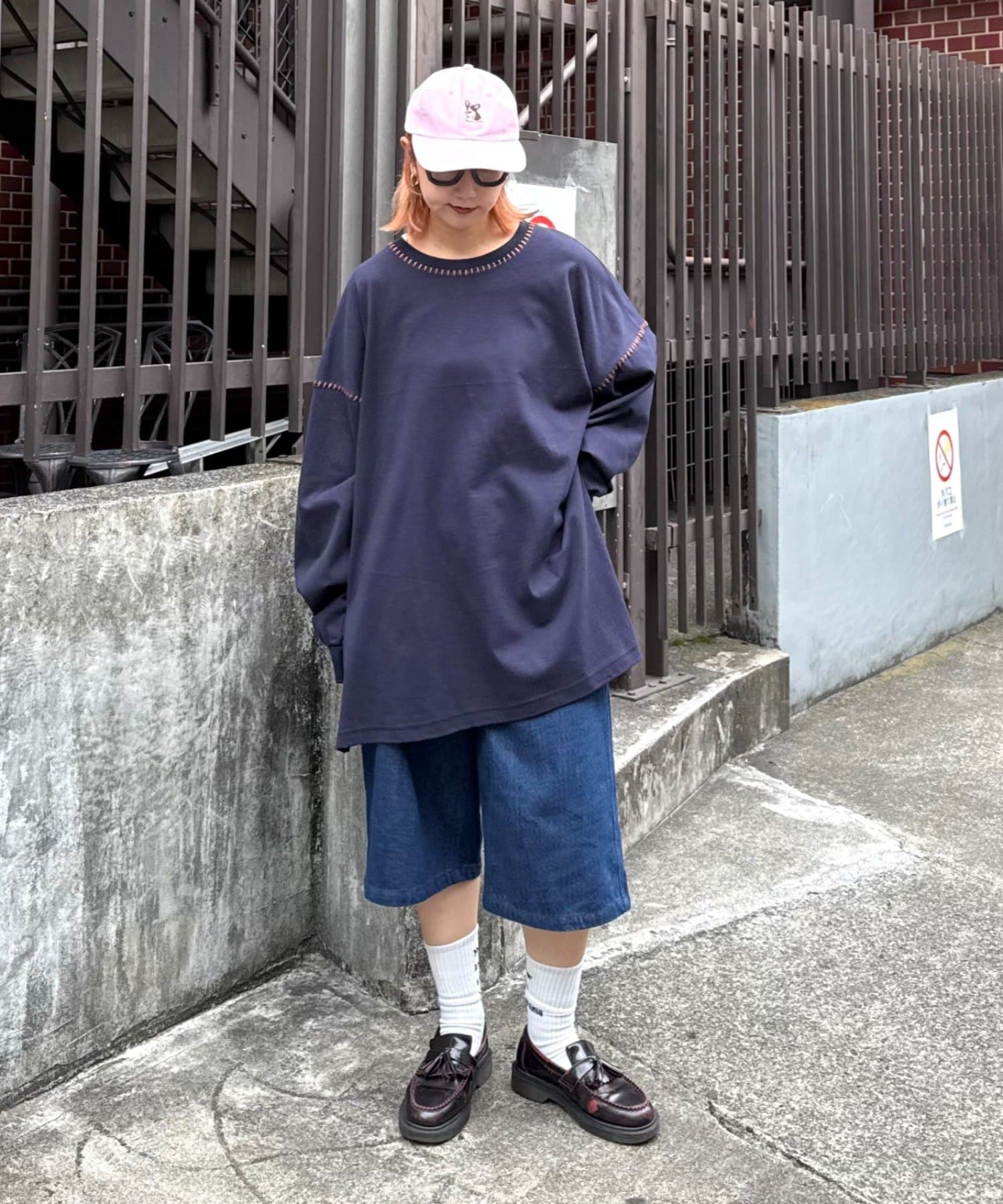 ルーズなサイズ感と配色ステッチでどの角度でもおしゃれ見えするデザイン。