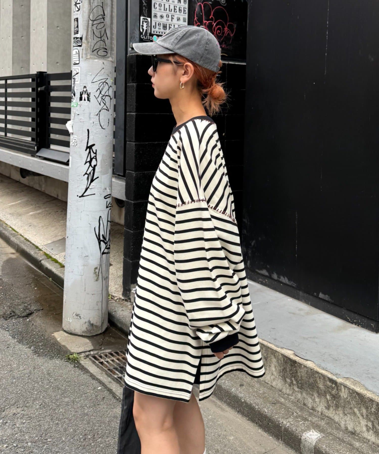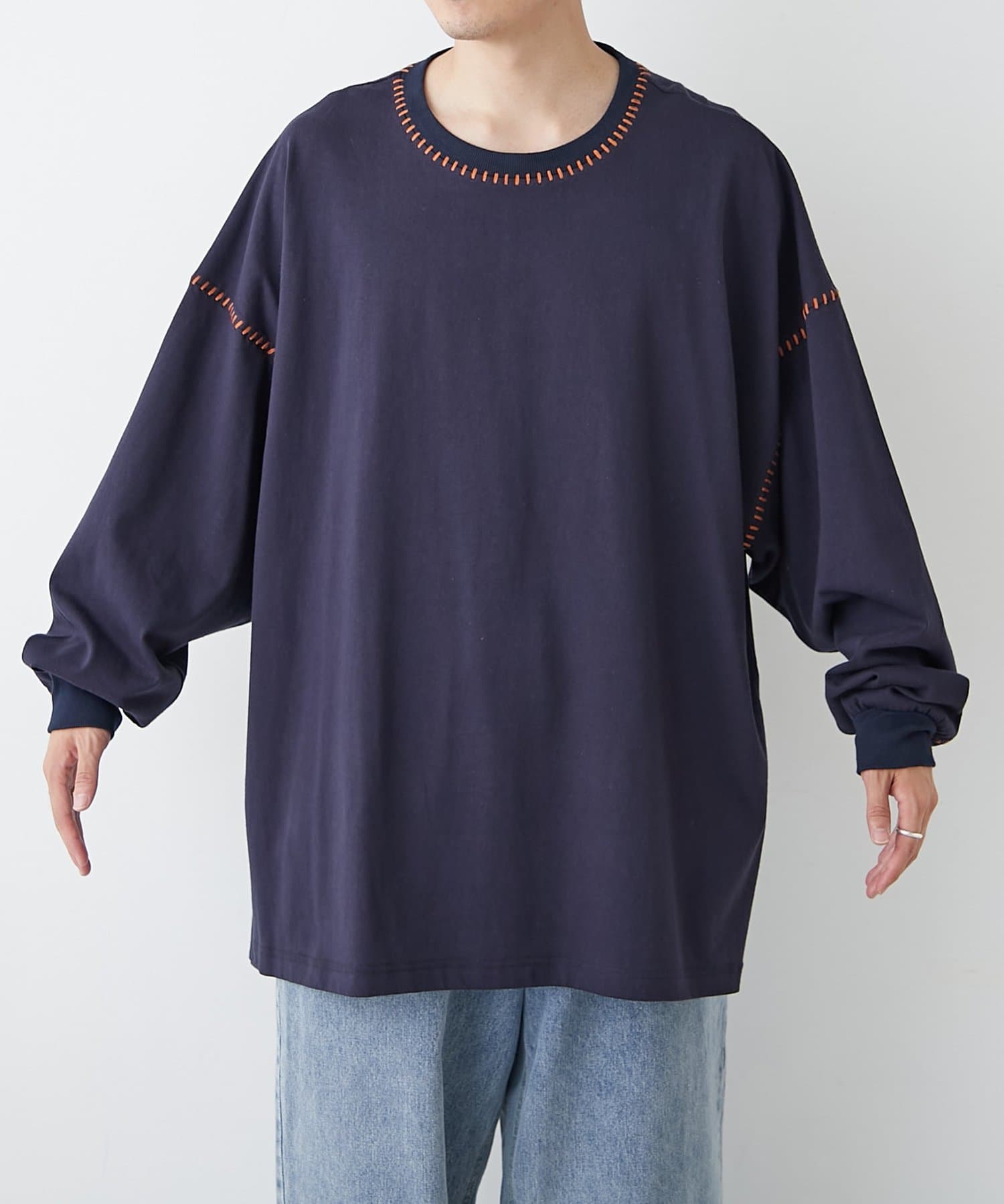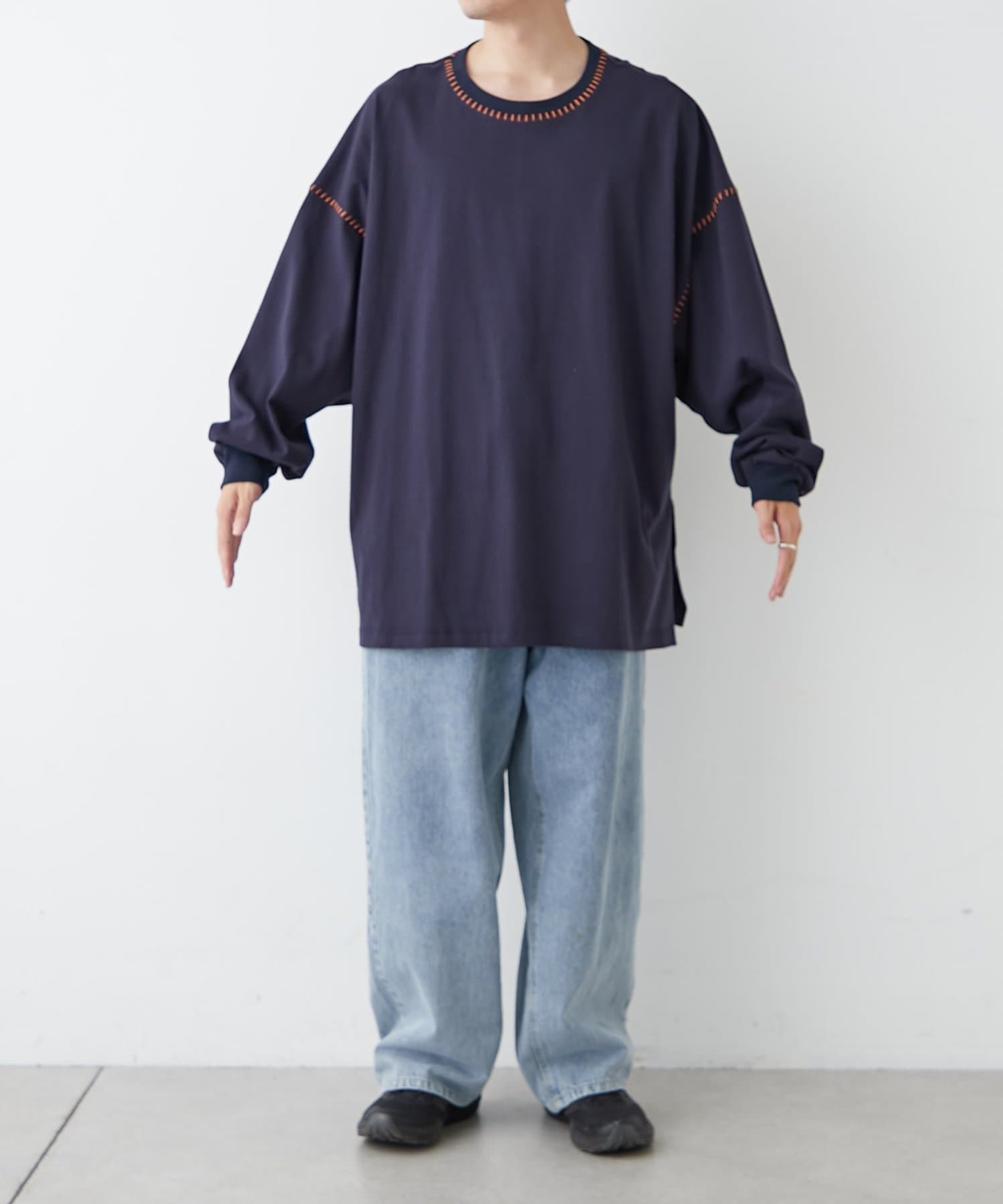 【SOUNDSGOOOOD】配色ステッチサイドスリットTee長袖