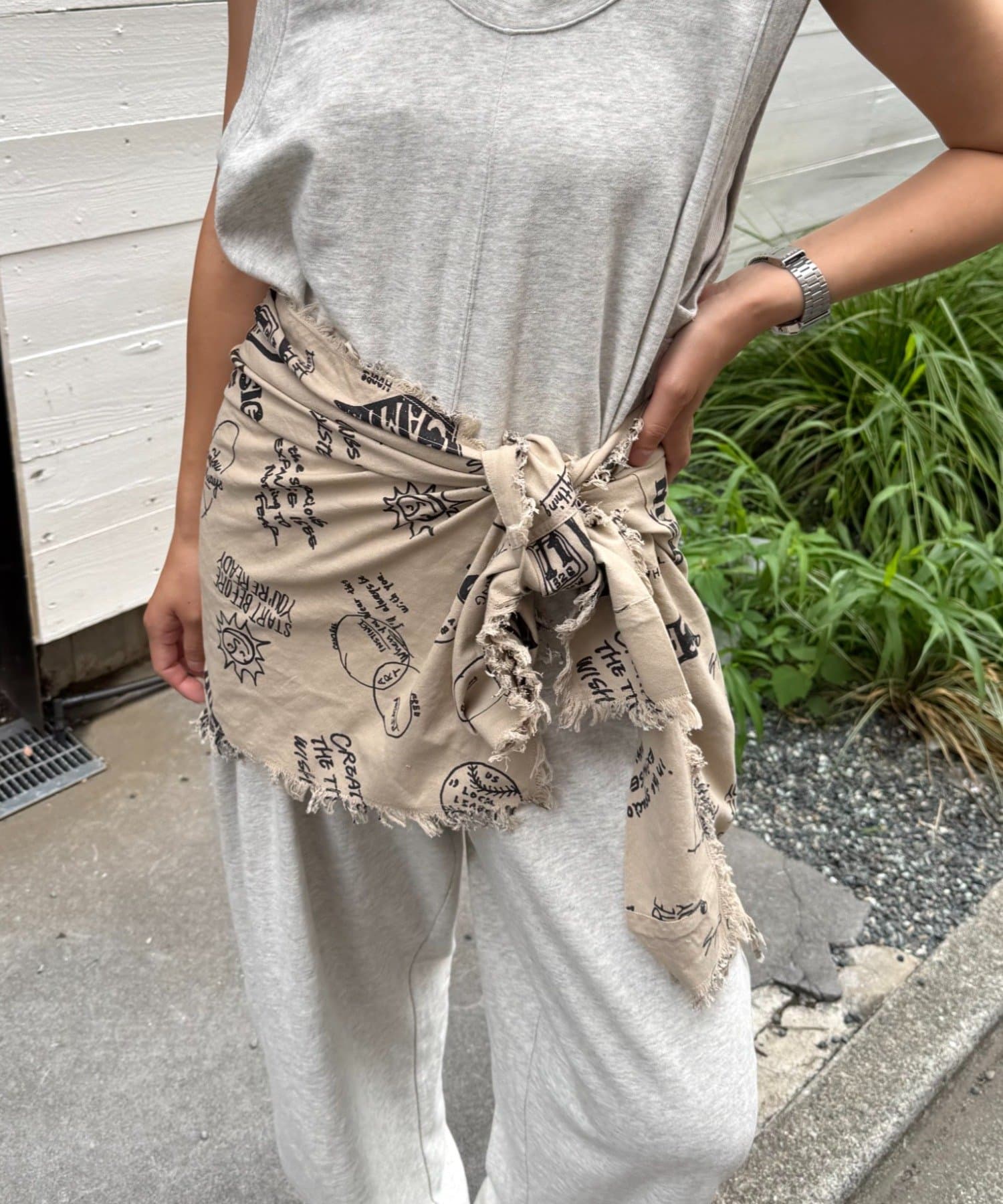 ショールを腰に巻いたりなどレイヤードアイテムとしてもおすすめです!