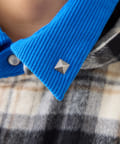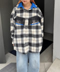 ブルーのアクセントが効いたディテール満載チェックシャツ◎