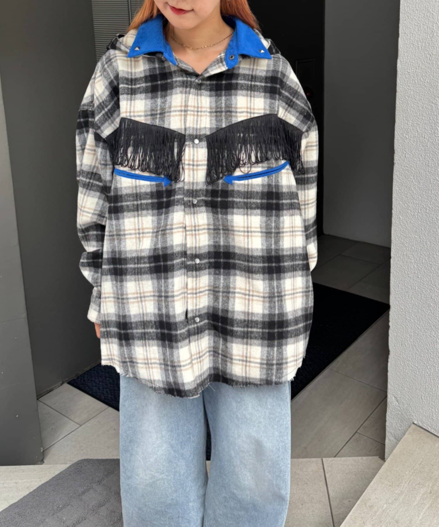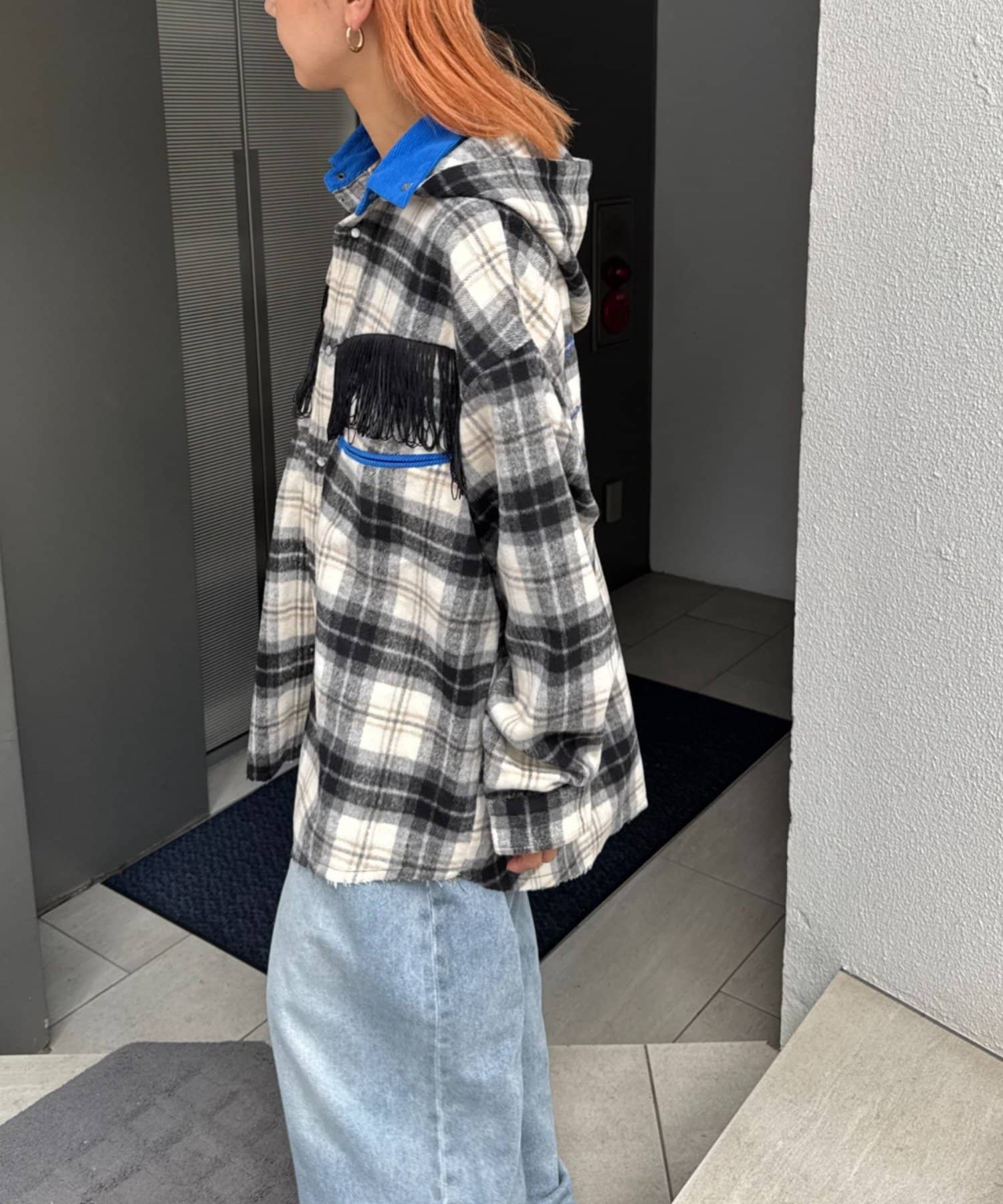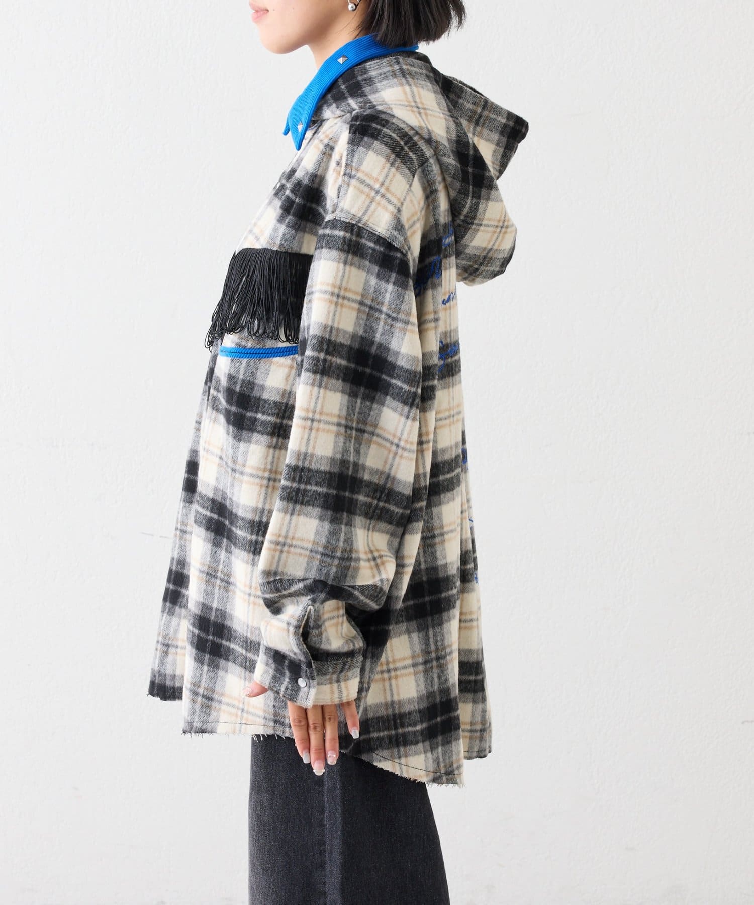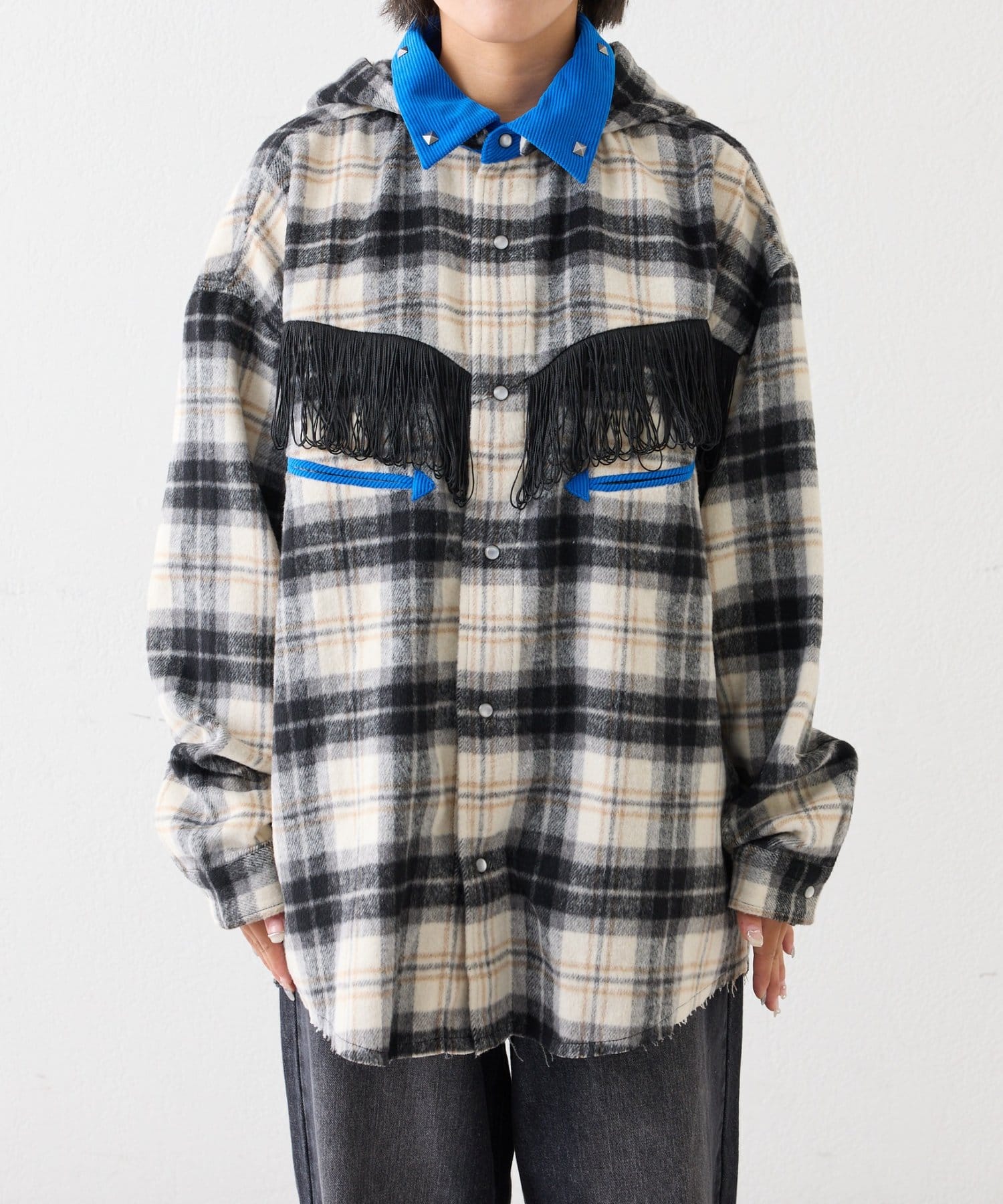 【SOUNDS GOOOOD】ネルチェック刺繍フリンジフードウエスタンシャツ