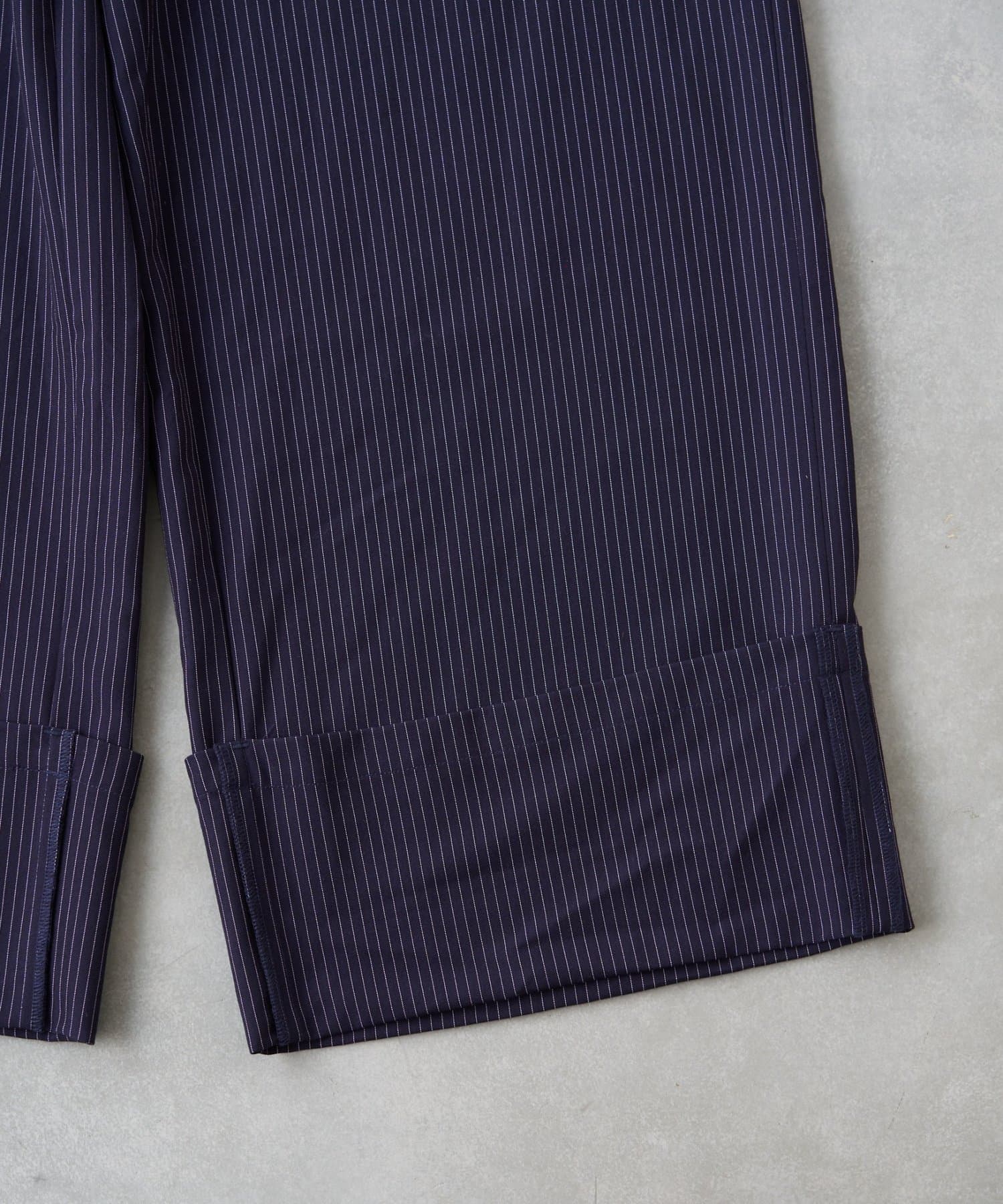 ピンストライプが着回しやすい、トレンドのクロップドパンツ◎