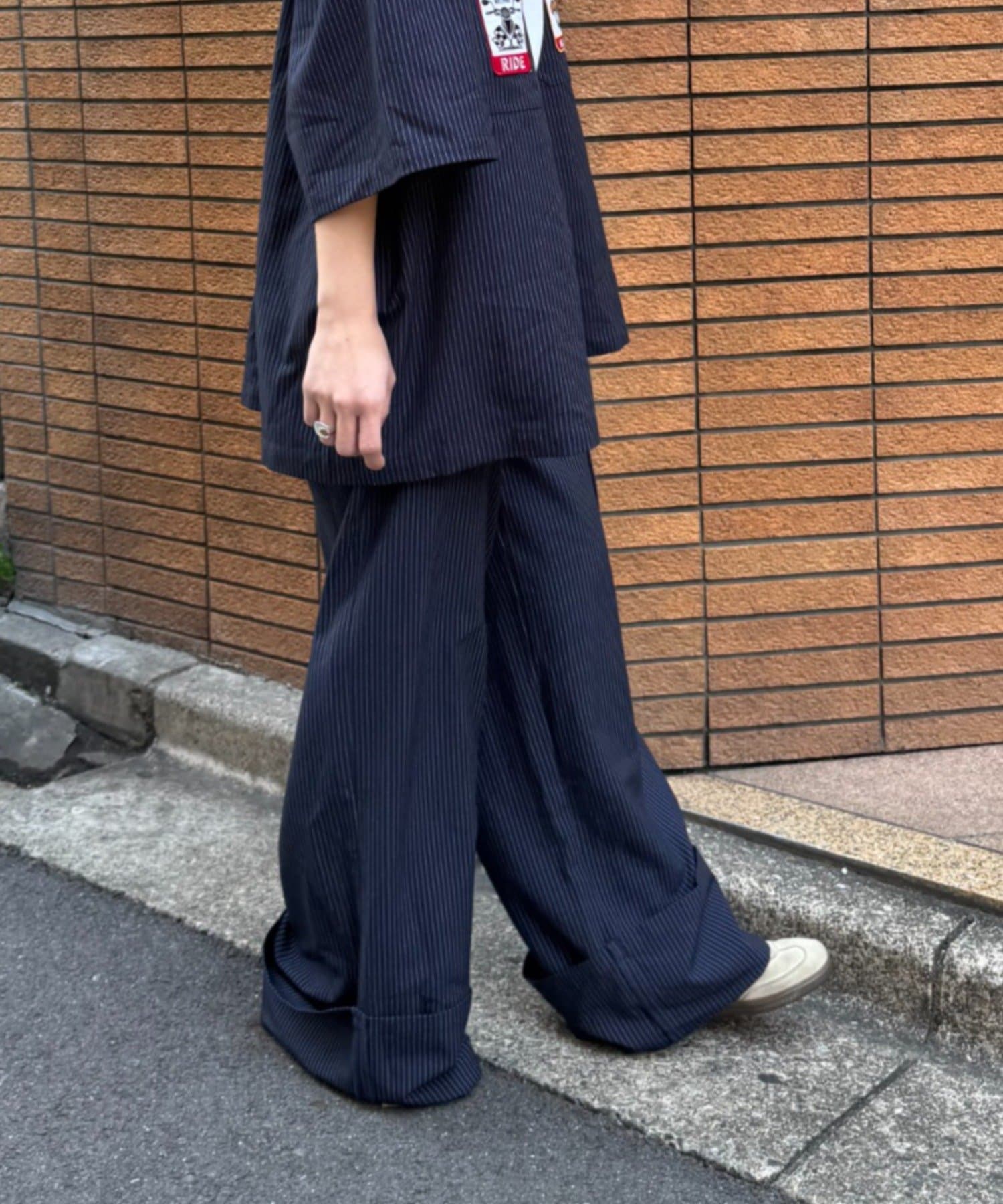 【SOUNDS GOOOOD】ストライプクロップドワイドパンツ(ベルト付き)