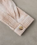 柄感のあるボタンがさりげないアクセントになり、カジュアルコーデに上品なテイストをプラス。