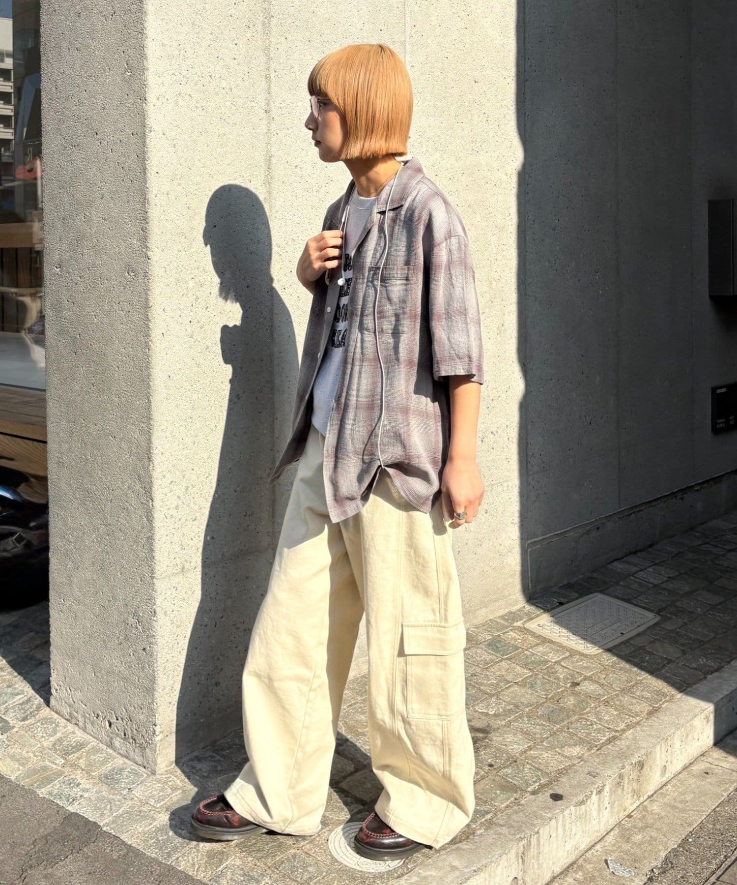 インナーにタンクトップや無地Tを重ねて、軽い羽織りとして着るのもおすすめです。