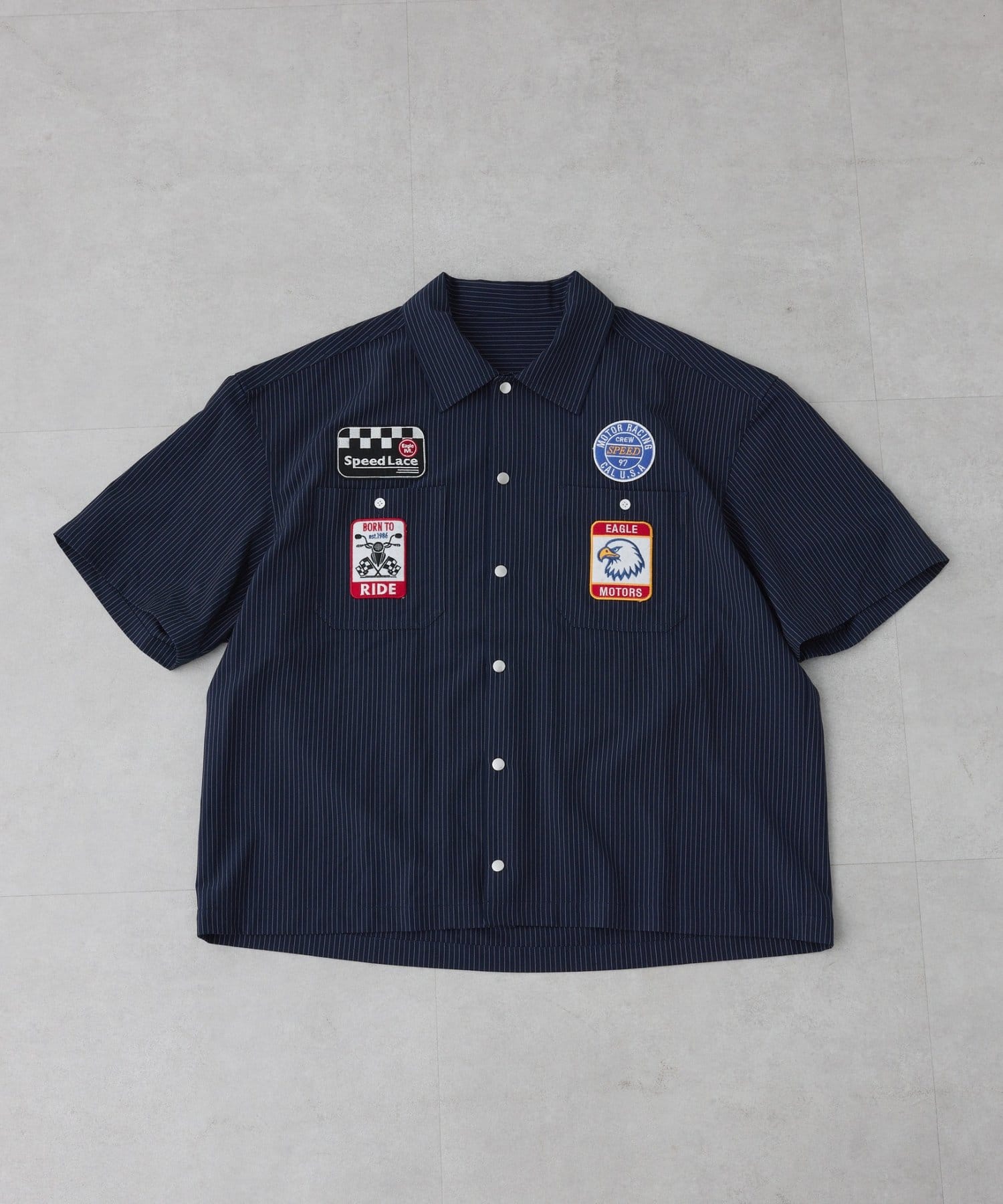 【SOUNDS GOOOOD】ワッペンストライプシャツ