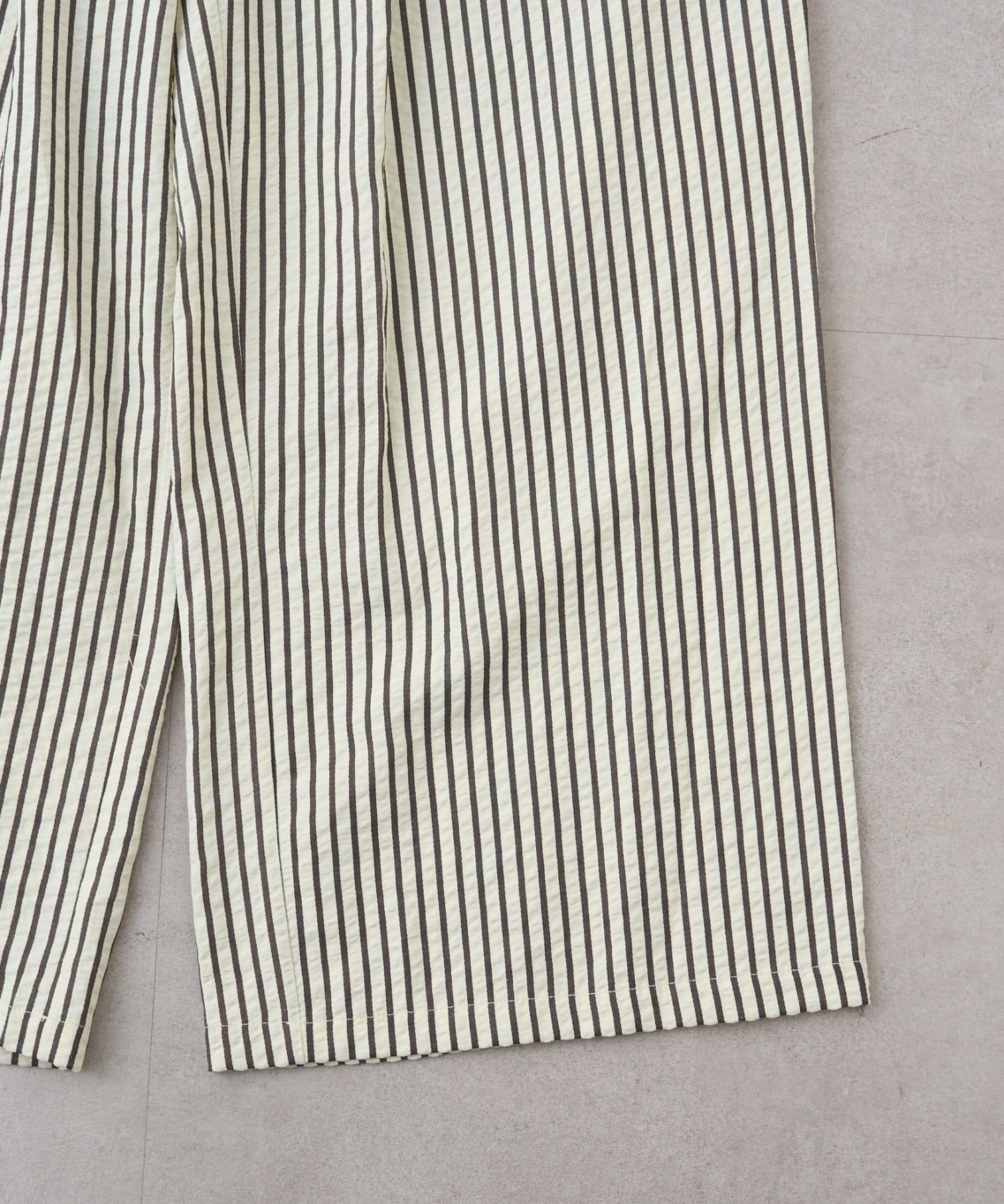 【UNISEX】【プラスサイズあり】ストライプシアサッカーイージーパンツ