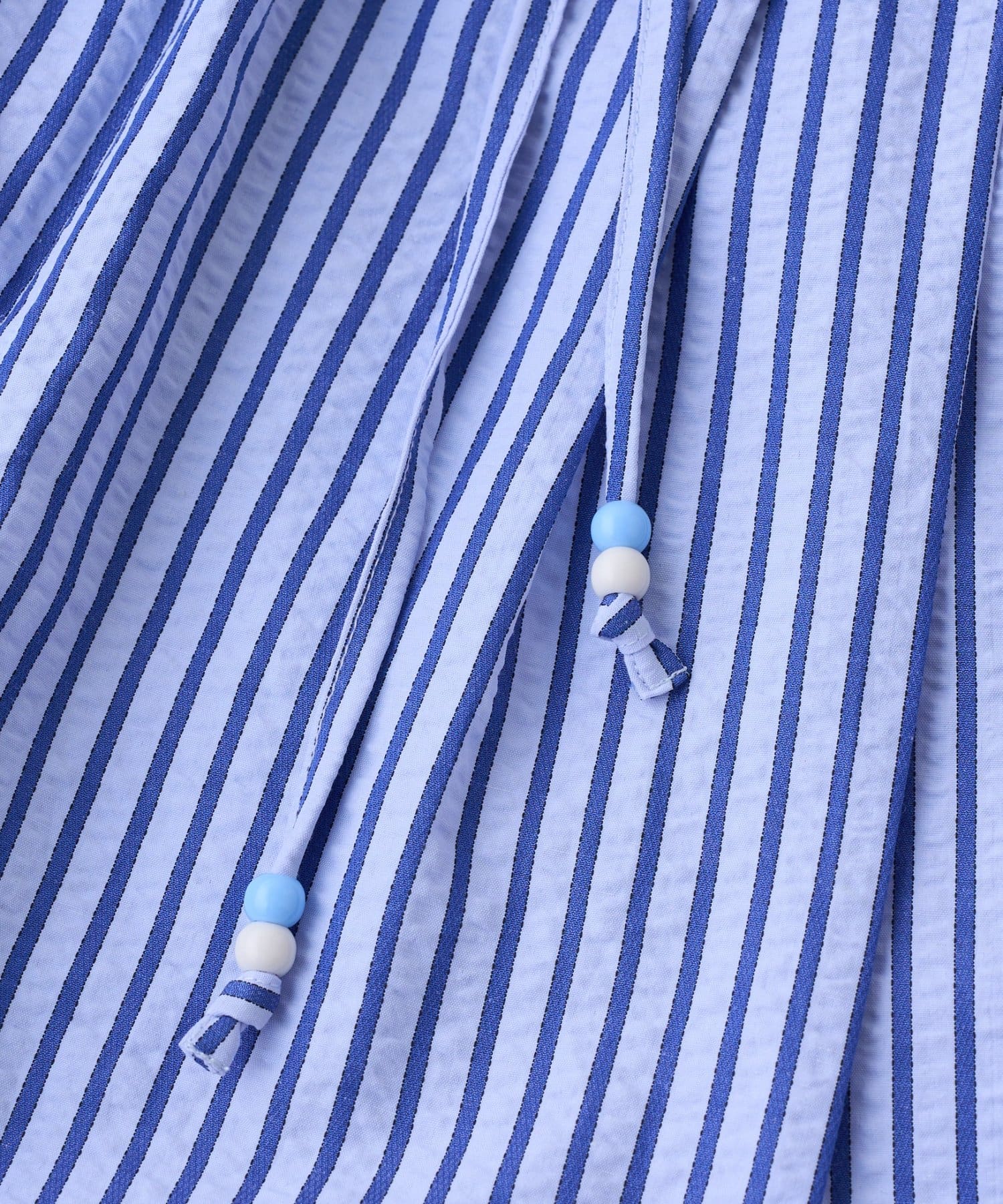 ドローコードの先についたビーズがさりげないポイントに。