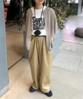 リラックスシルエットのワイドパンツやマキシスカートに、このニットカーディガンをさらりと羽織るスタイリングがおすすめ。