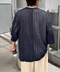 繊細な透かし編みが、涼しげで軽やかな印象を与える半袖カーディガンです。