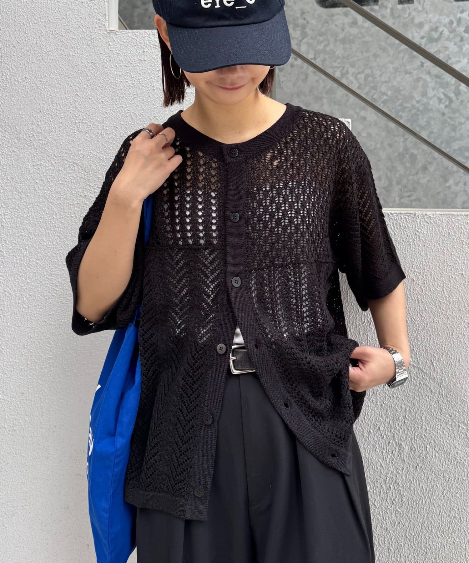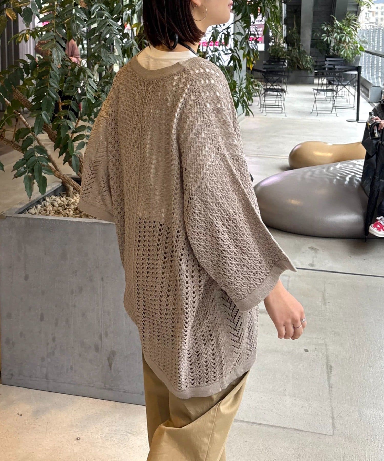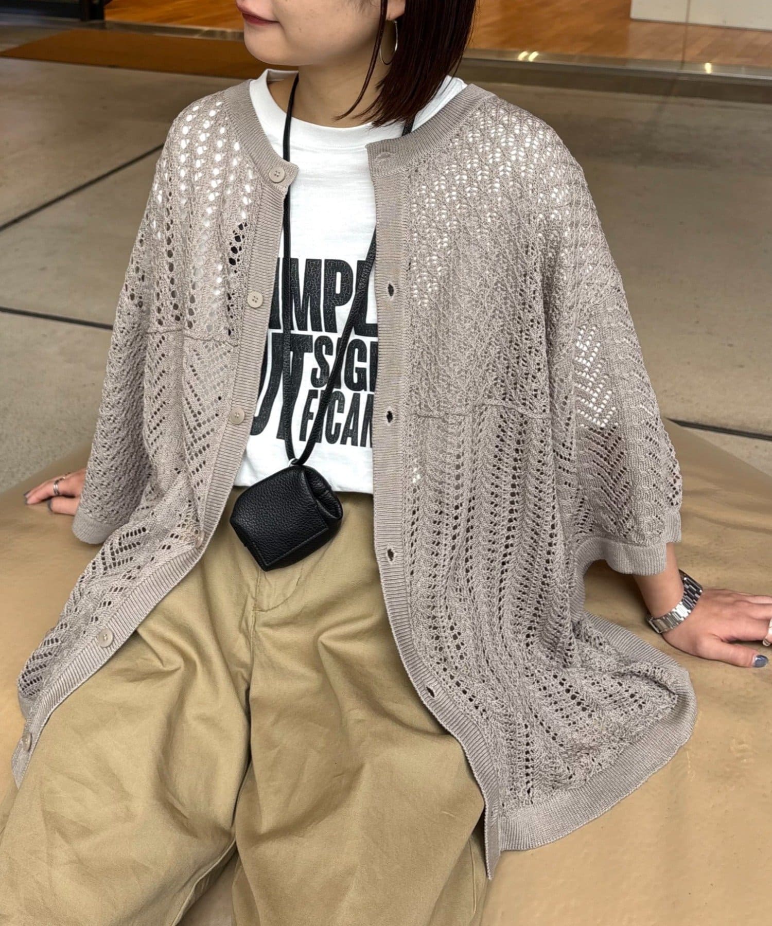 透かし編みの程よい肌見せが、コーディネートに抜け感をプラス。