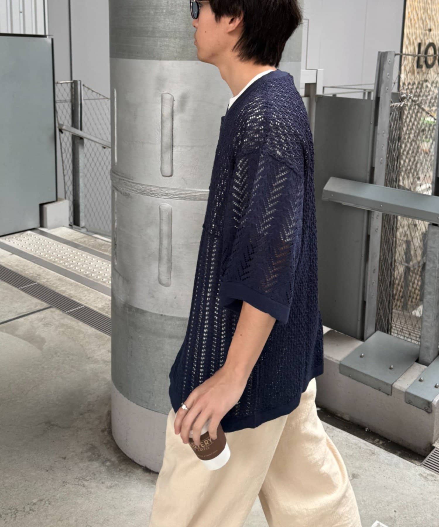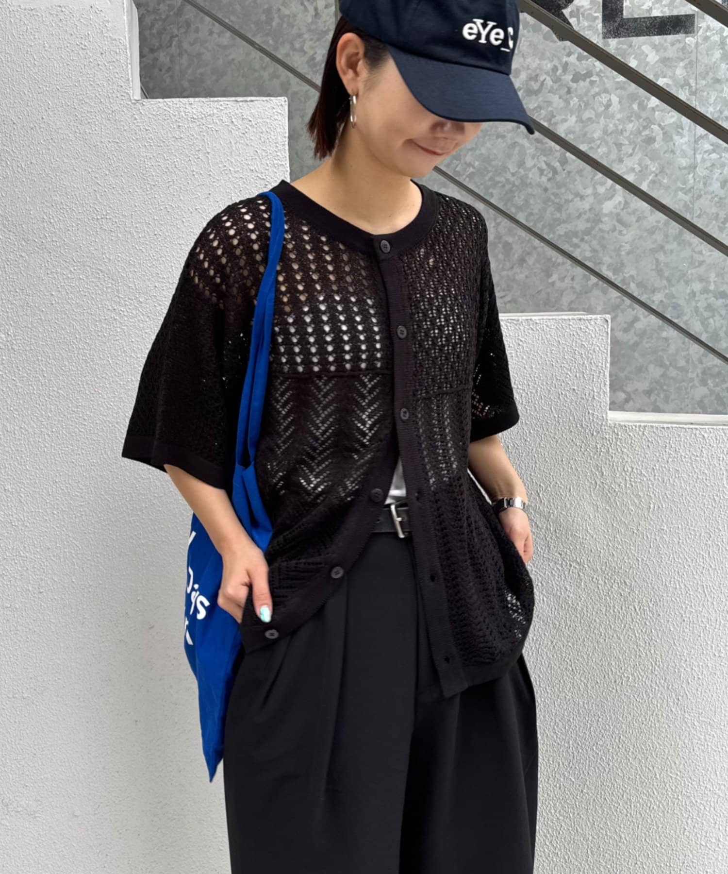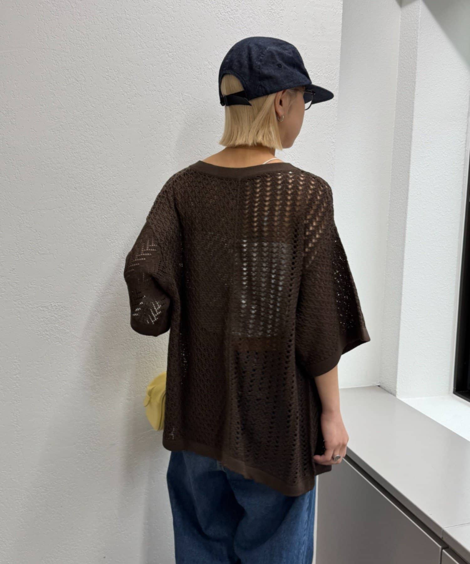透かし編みの程よい肌見せが、コーディネートに抜け感をプラス。