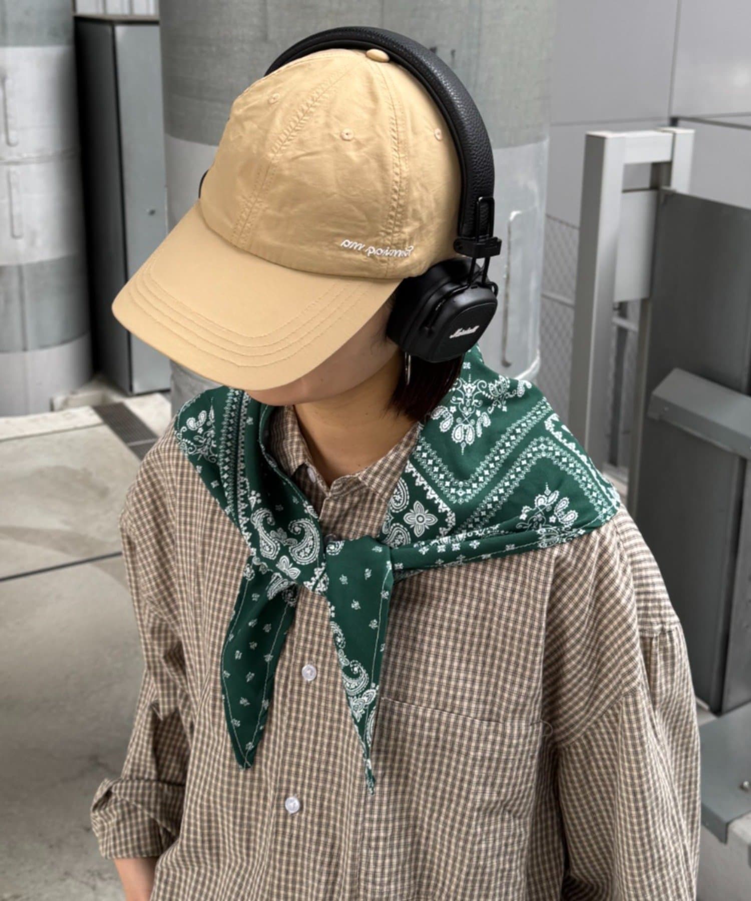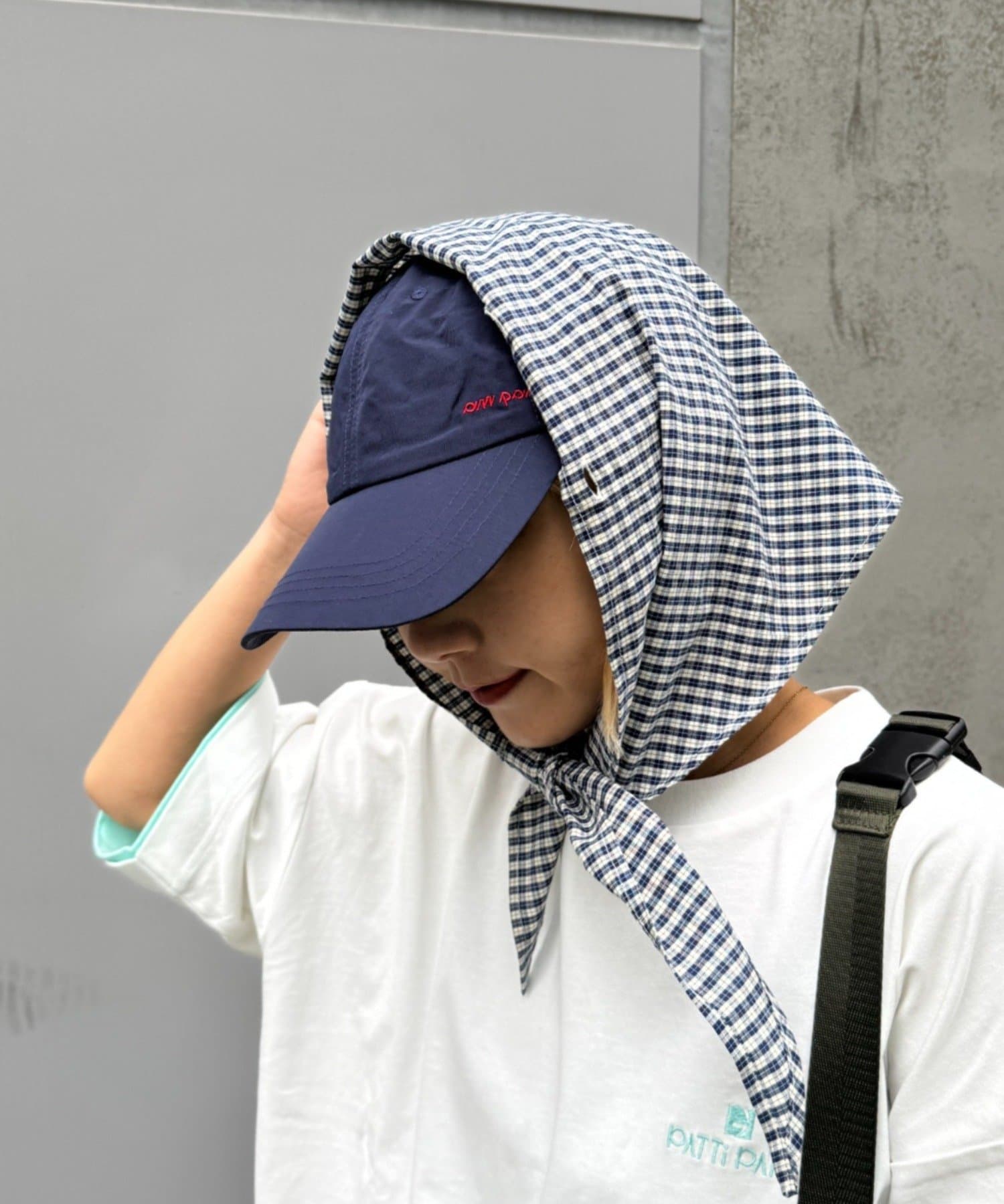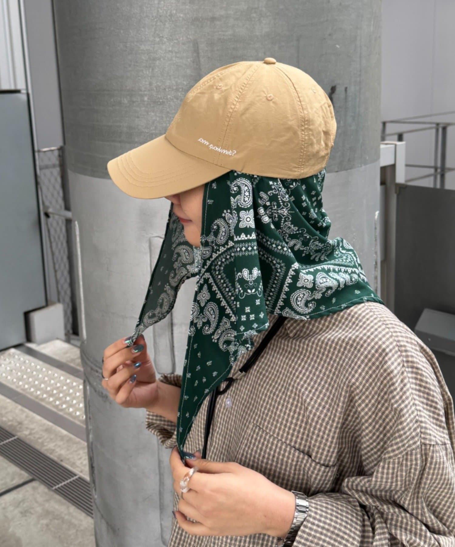 スカーフを外せば、シンプルなナイロンキャップとして、様々なスタイリングに合わせやすく、汎用性の高いアイテムです。