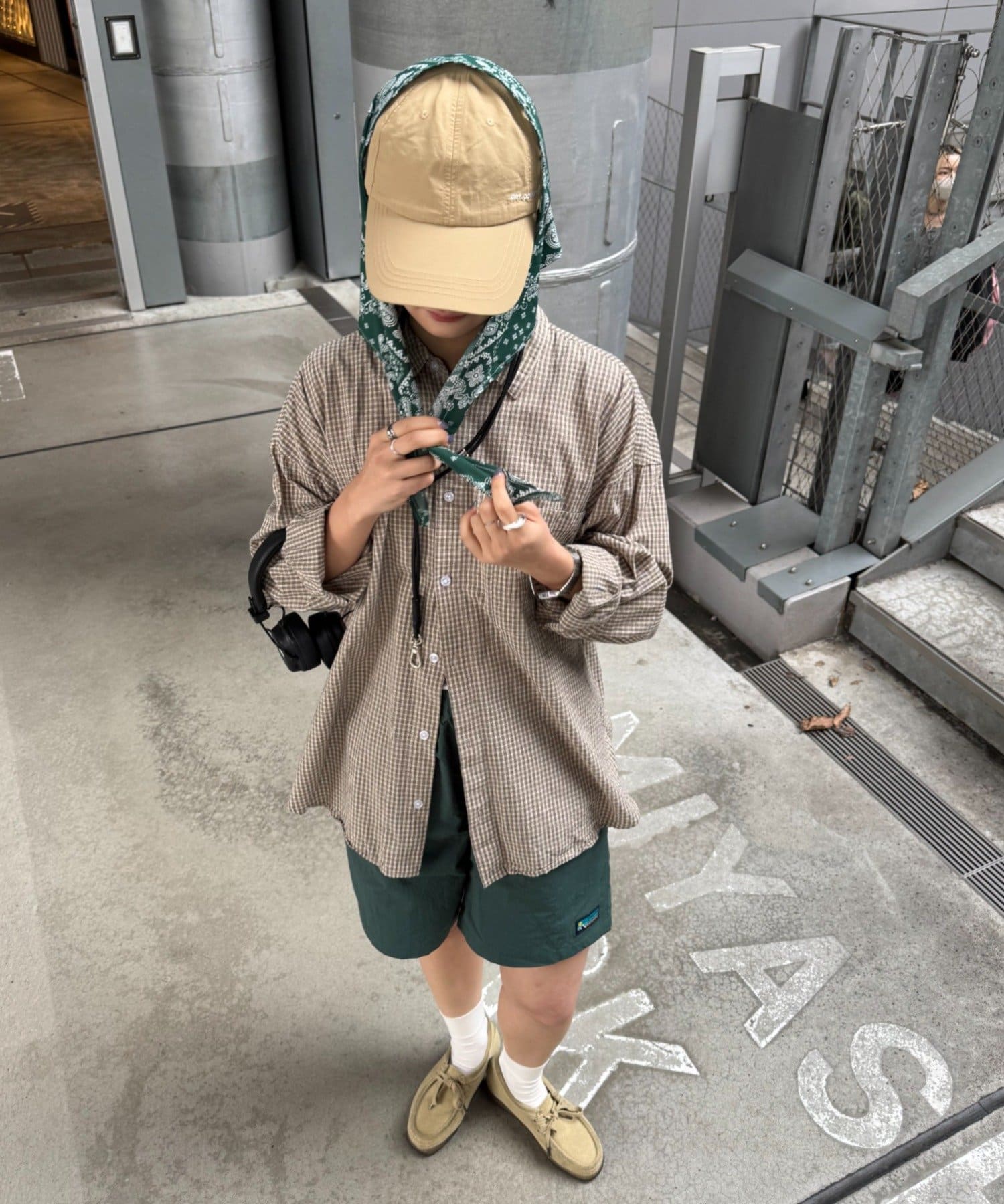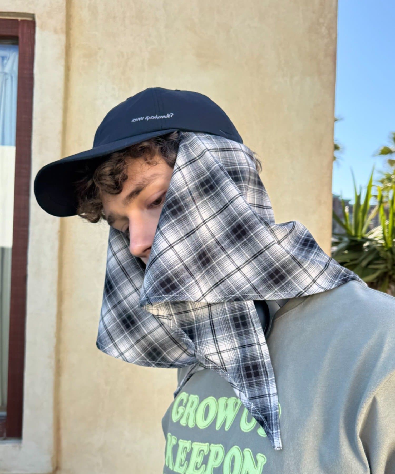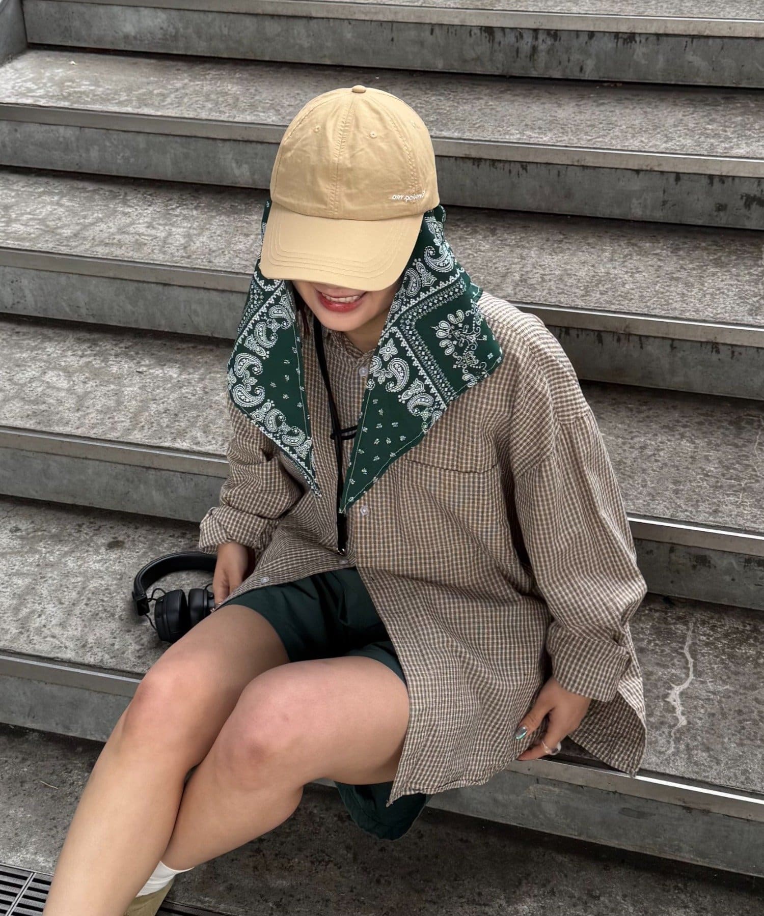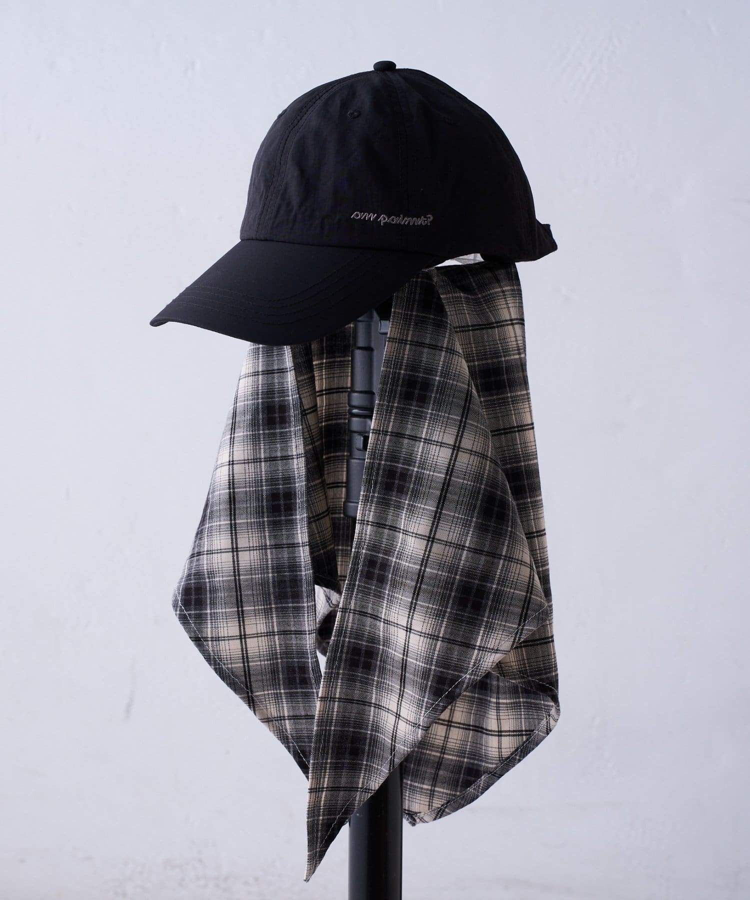 スカーフを外せば、シンプルなナイロンキャップとして、様々なスタイリングに合わせやすく、汎用性の高いアイテムです。
