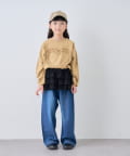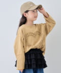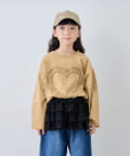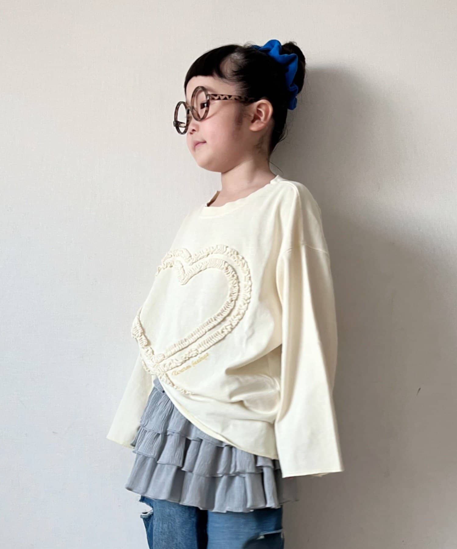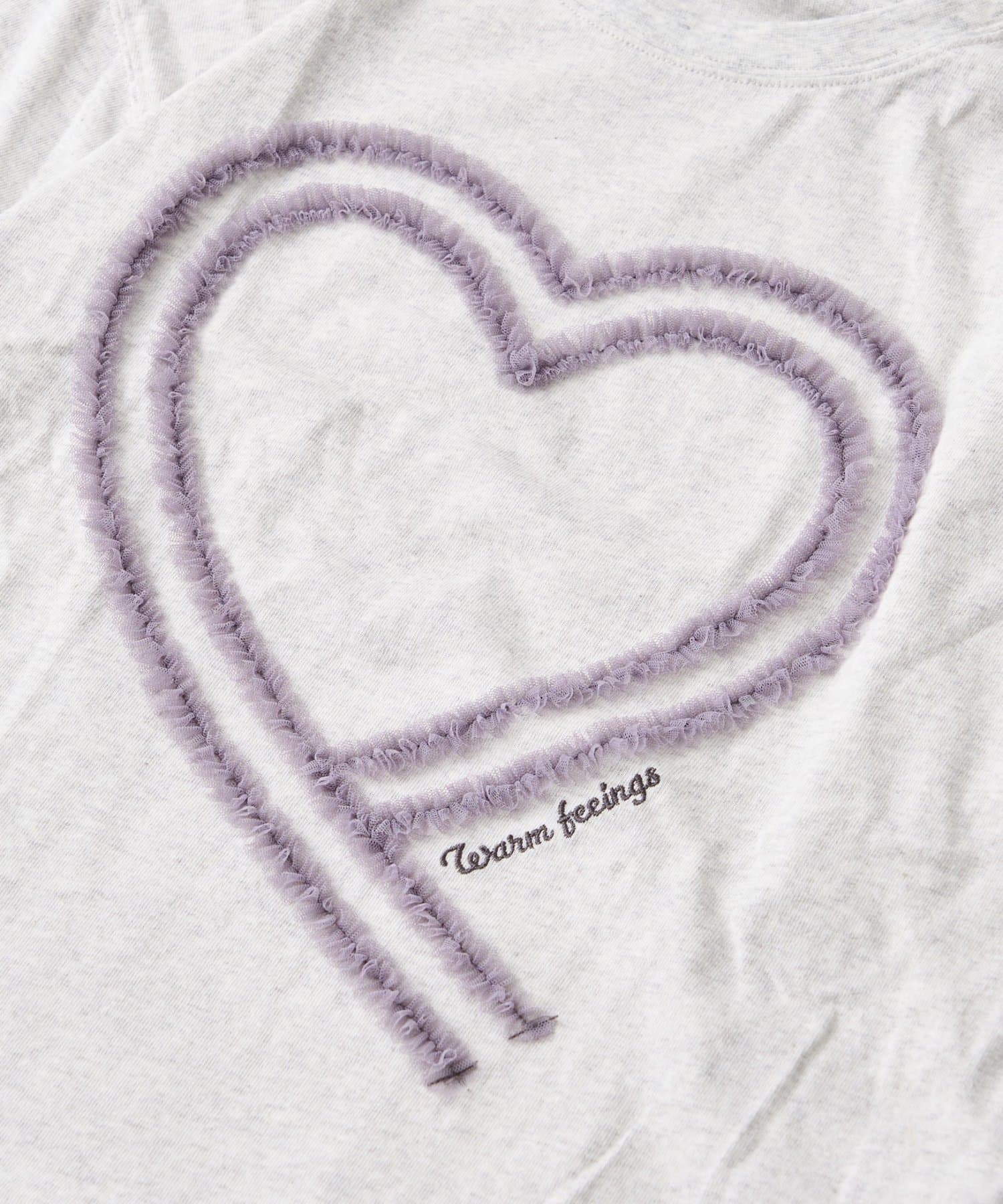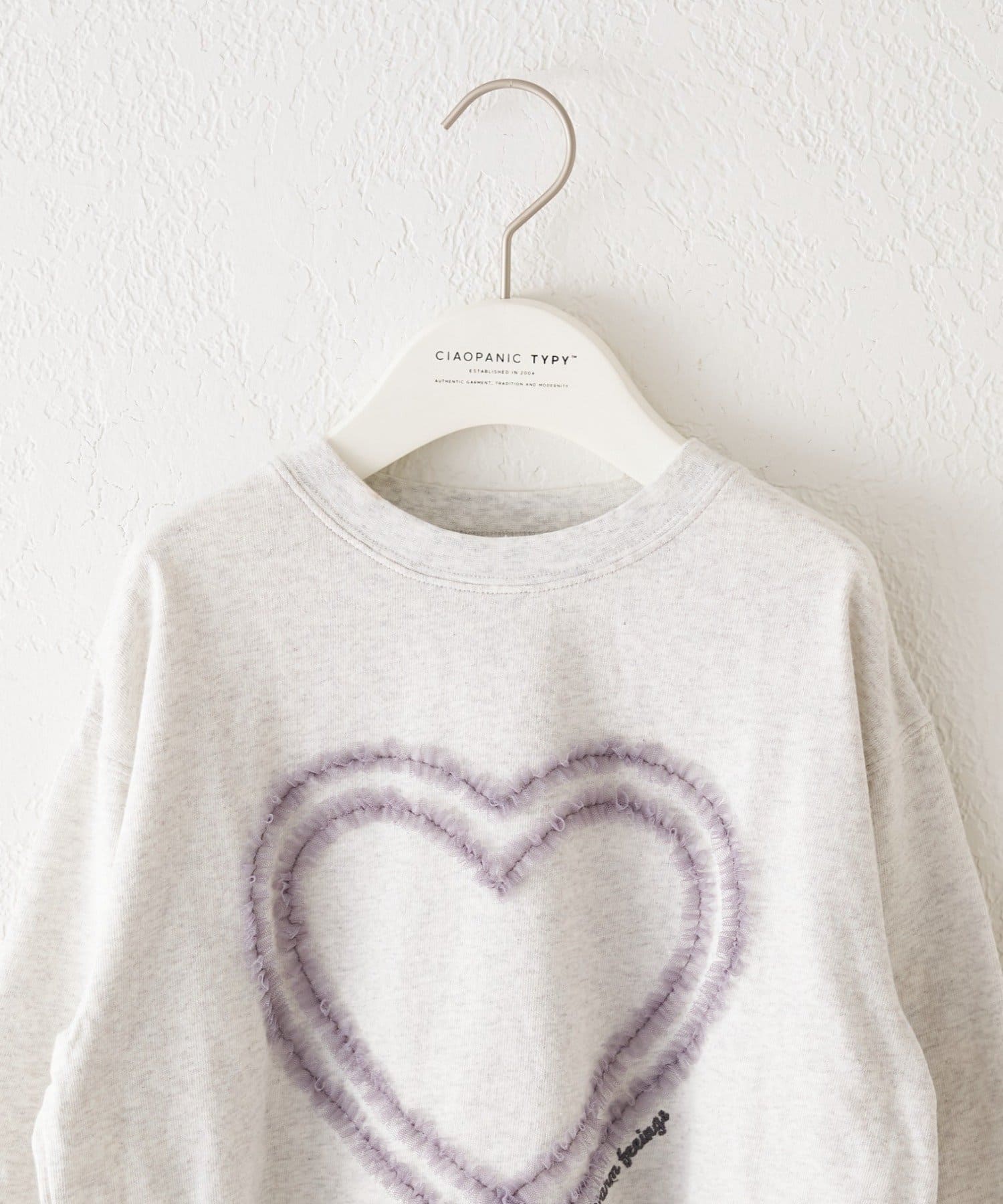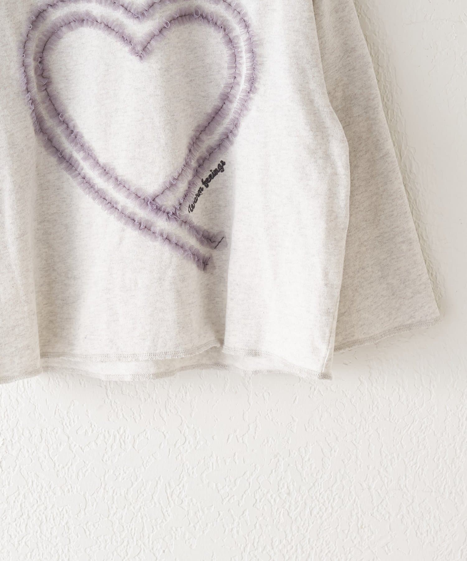 チュール素材のハートモチーフが、女の子っぽさをプラスしてくれるロンTEE。