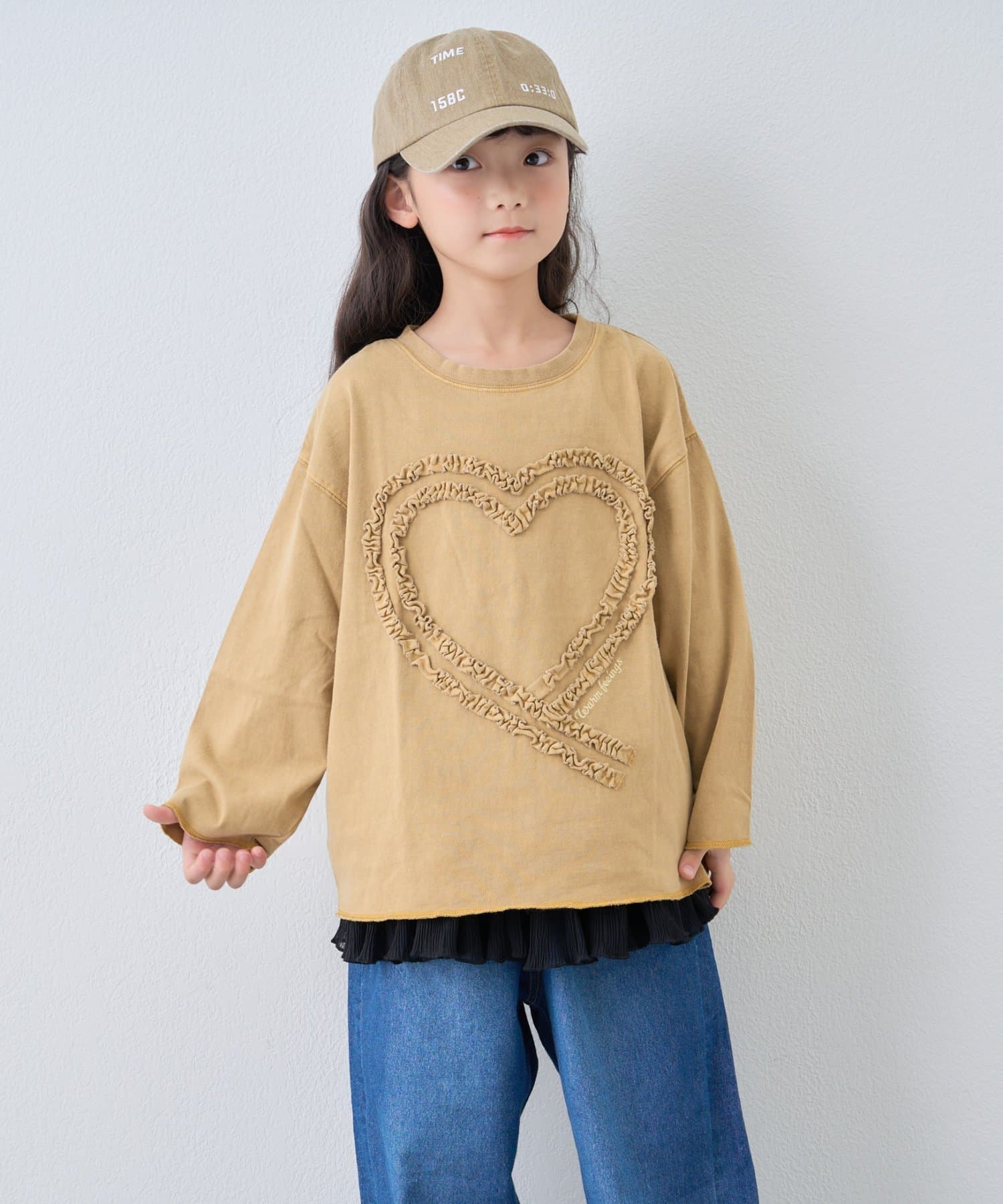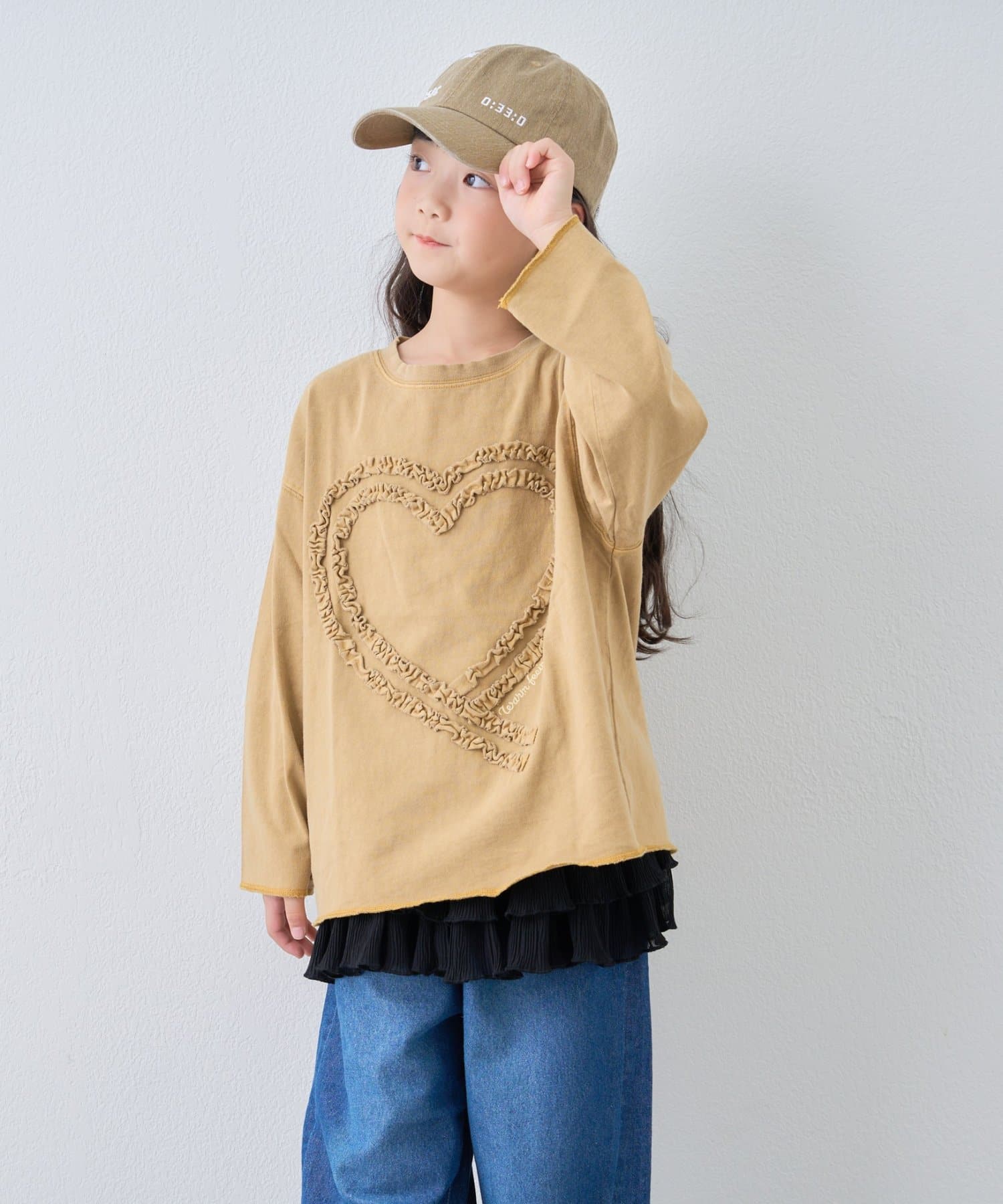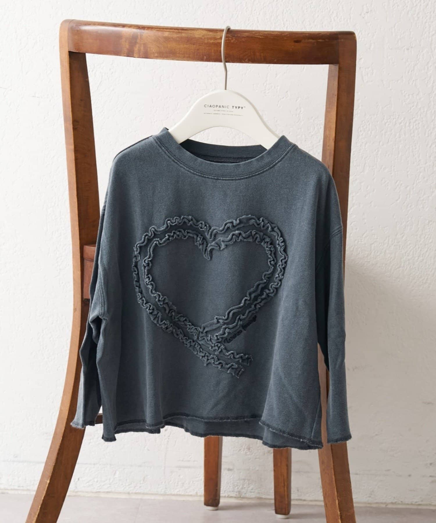 【WEB限定】【KIDS】ピグメント加工ハートモチーフ長袖カットソー