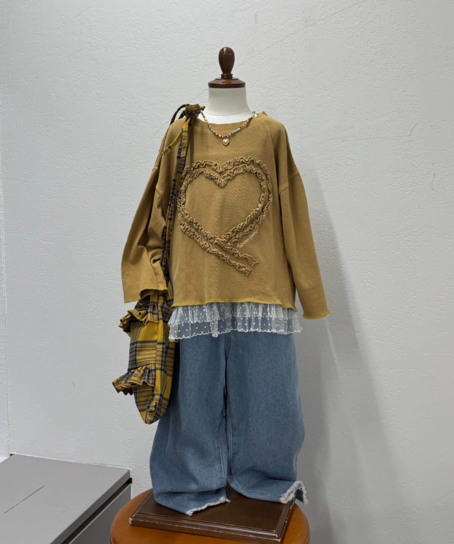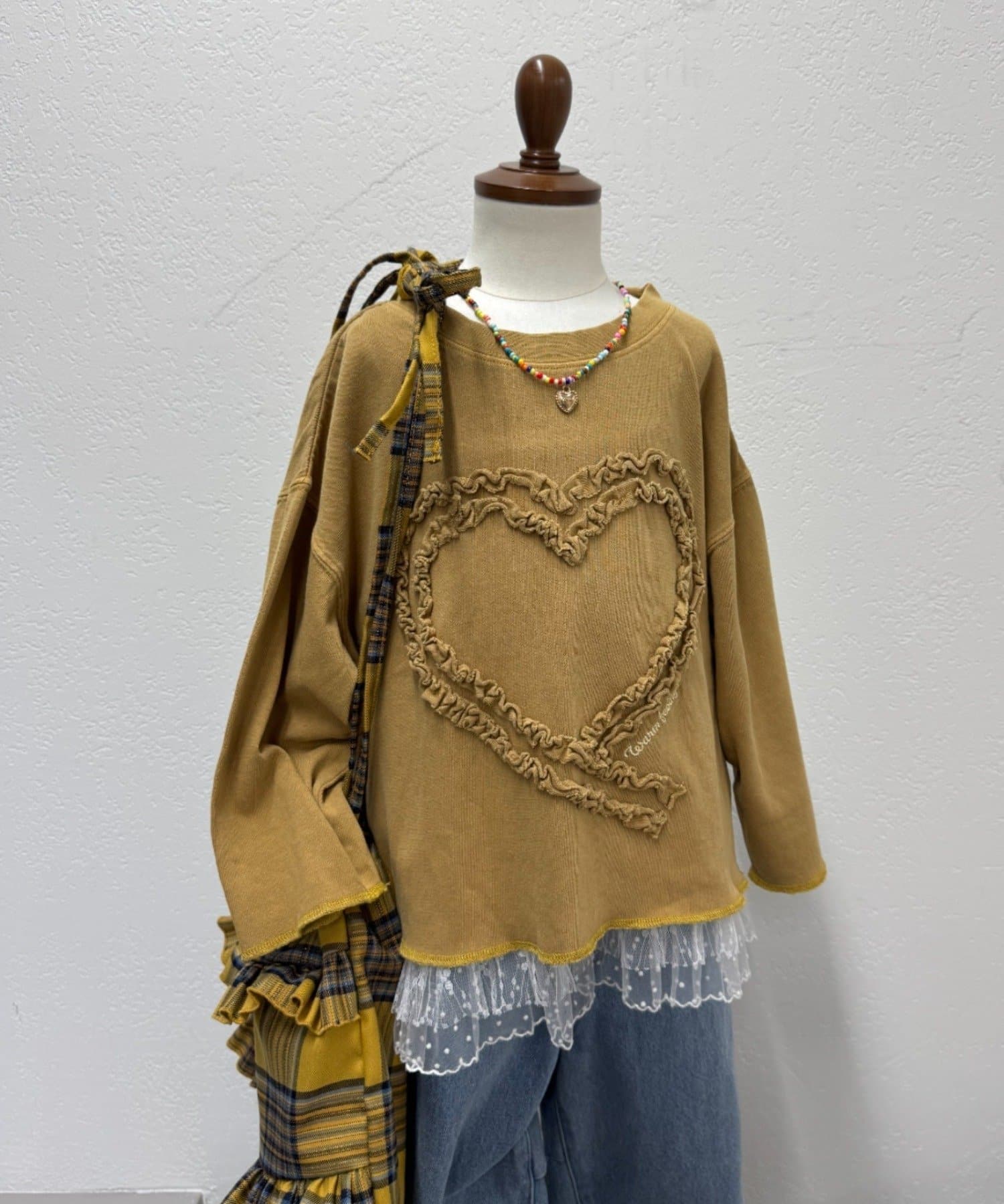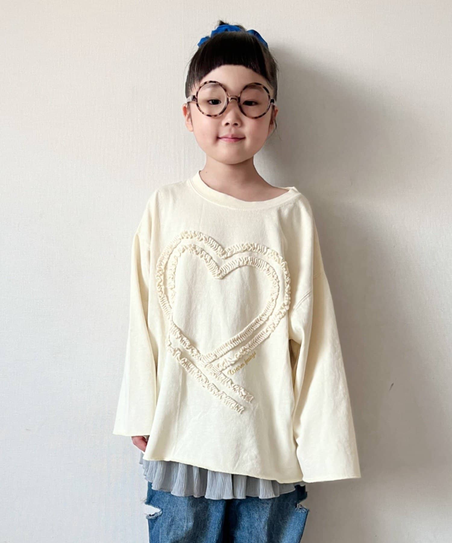【WEB限定】【KIDS】ピグメント加工ハートモチーフ長袖カットソー