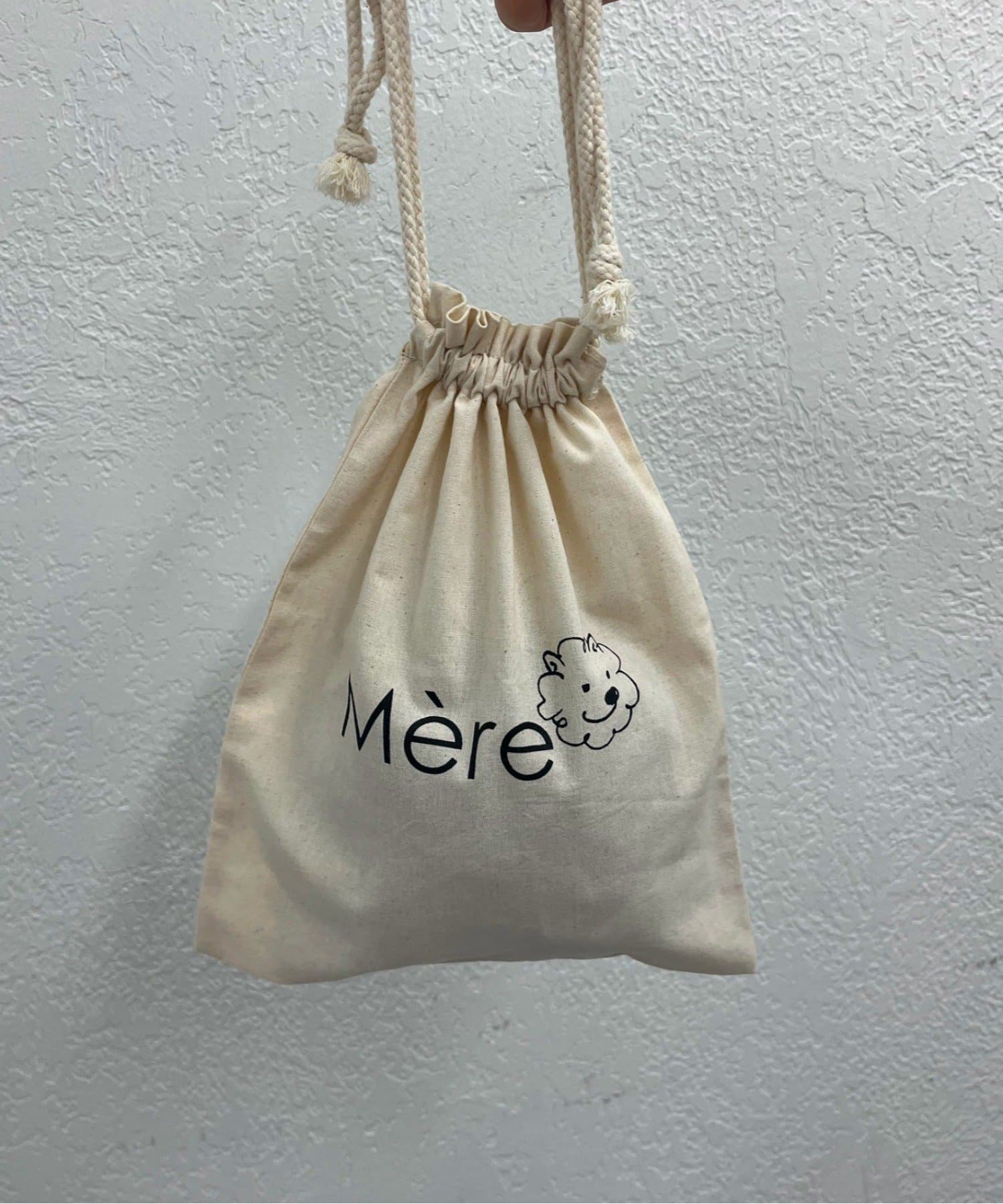 sayuriの愛犬モチコをモチーフにした巾着付きです。