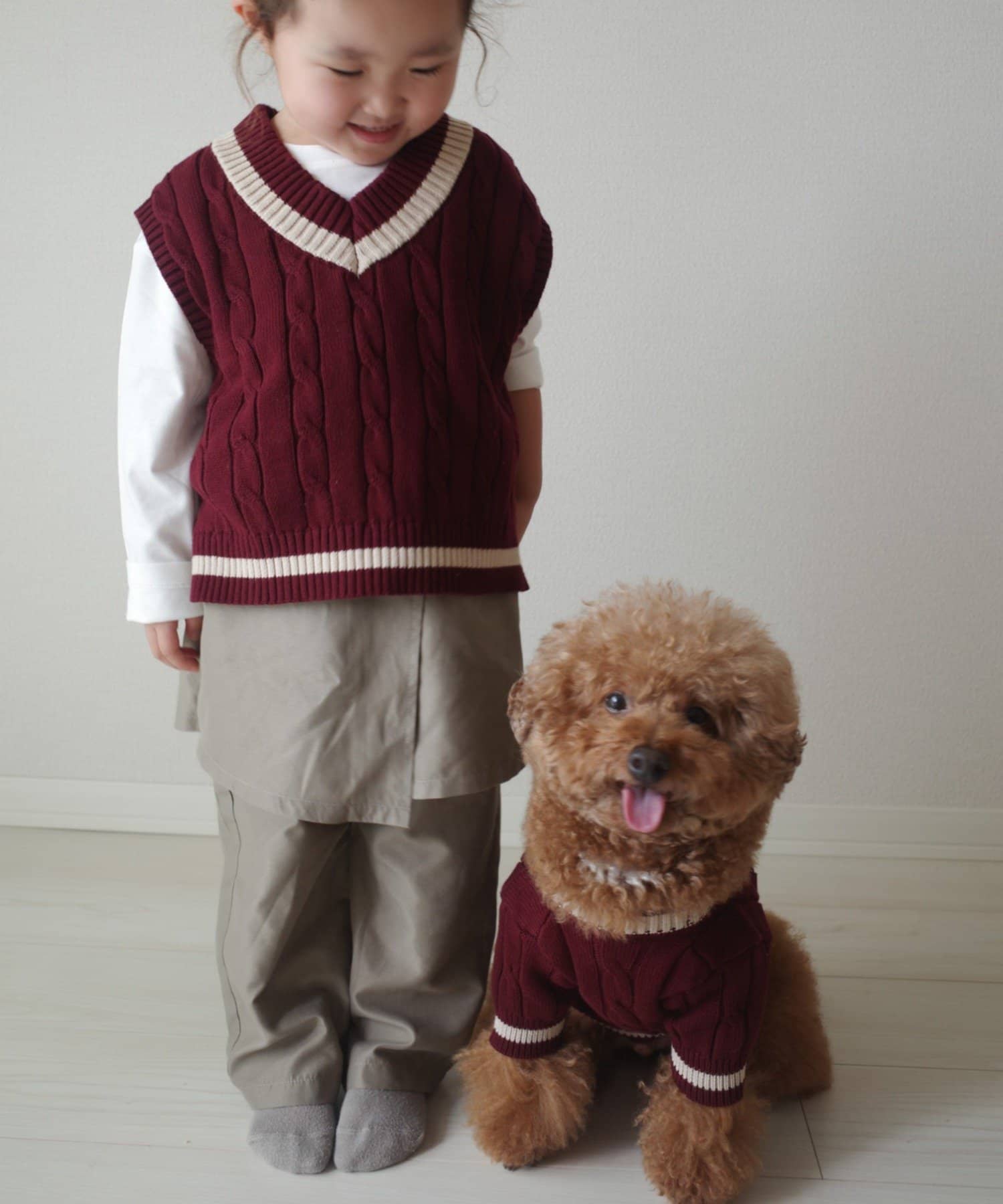 【ドッグウェア】お揃いが叶う!コットン100%DOGチルデンニット巾着付き
