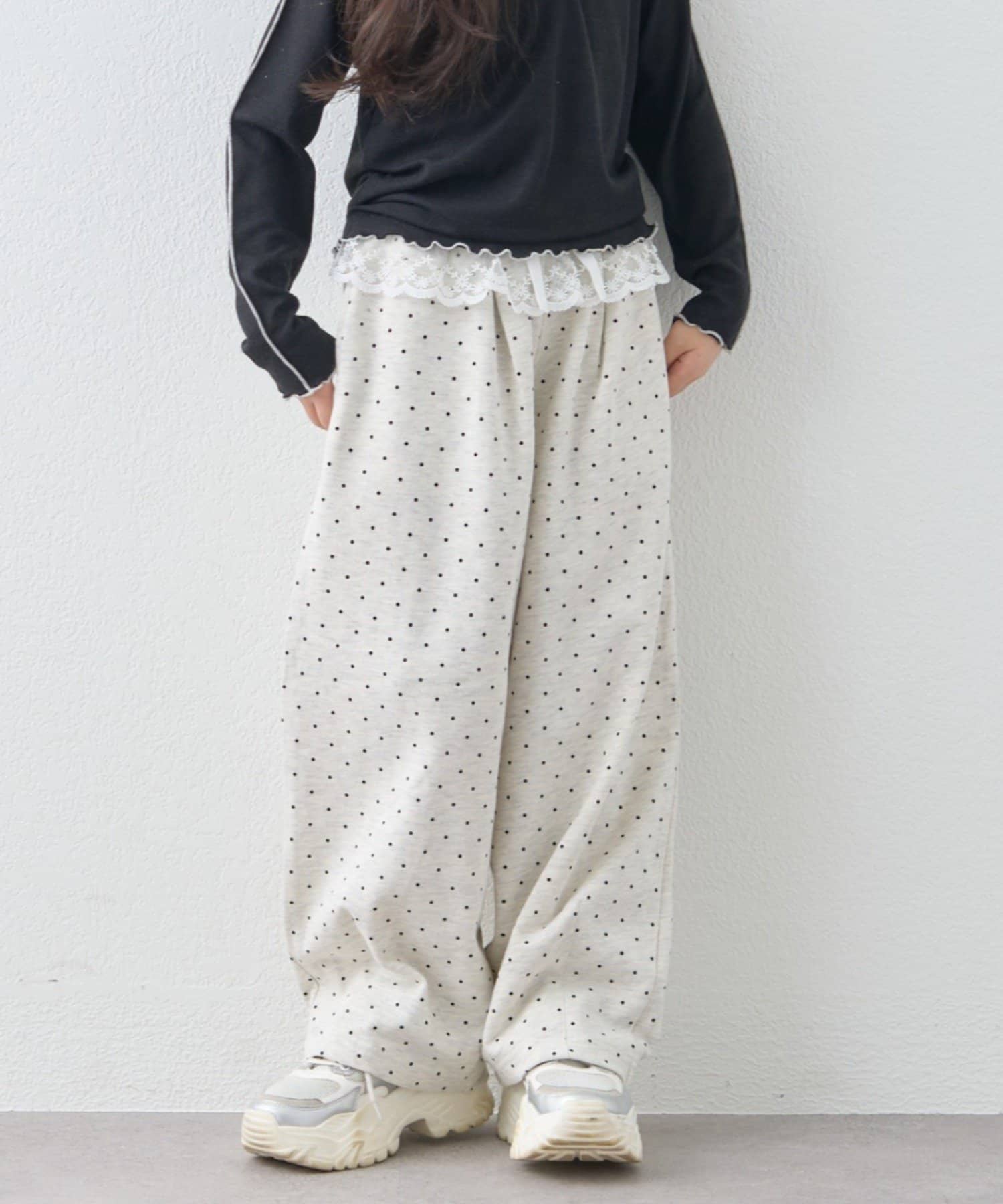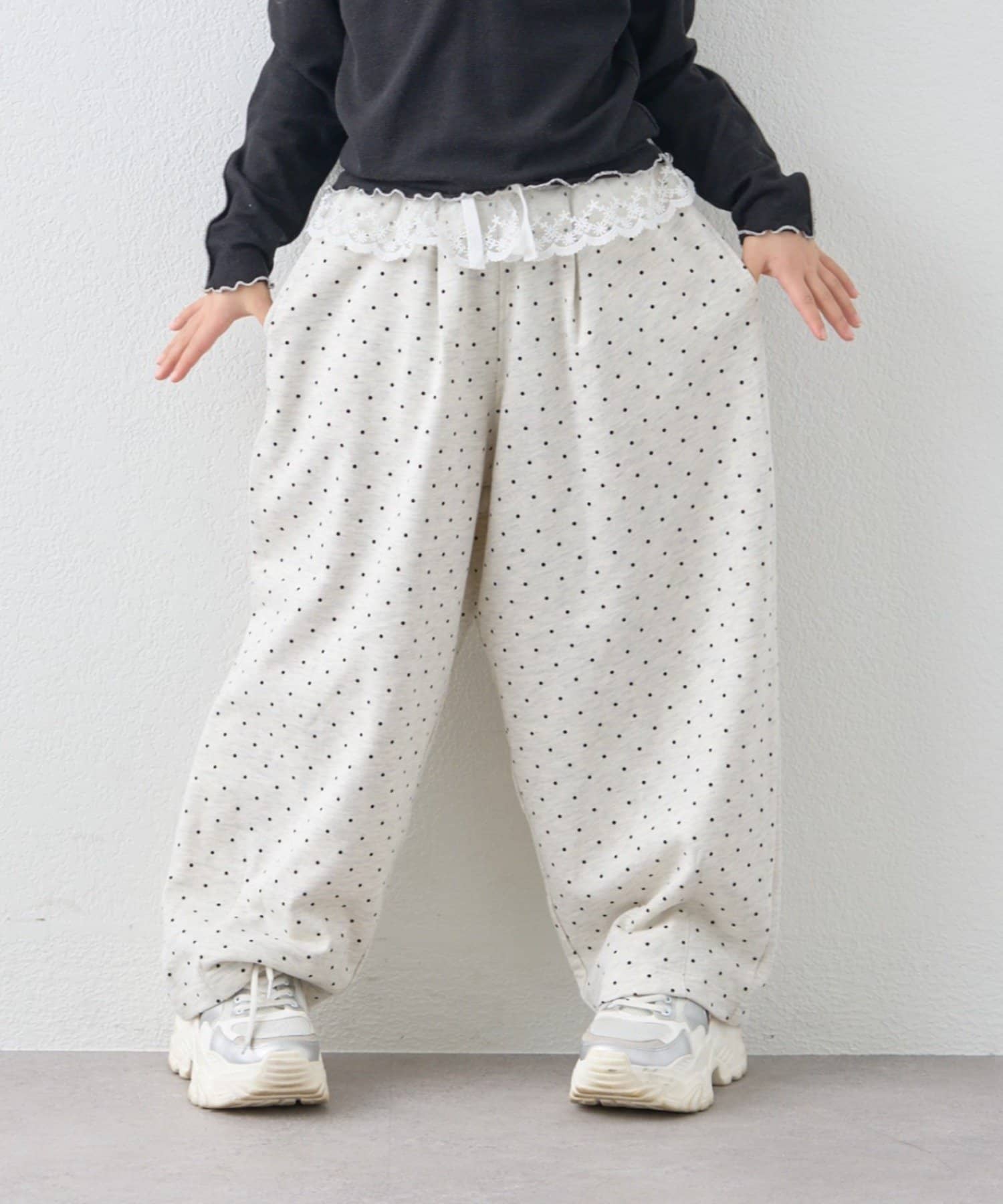 ≪26SS展示会アイテム≫【KIDS】《ジュニアサイズあり》ウエストレースドットスウェットパンツ