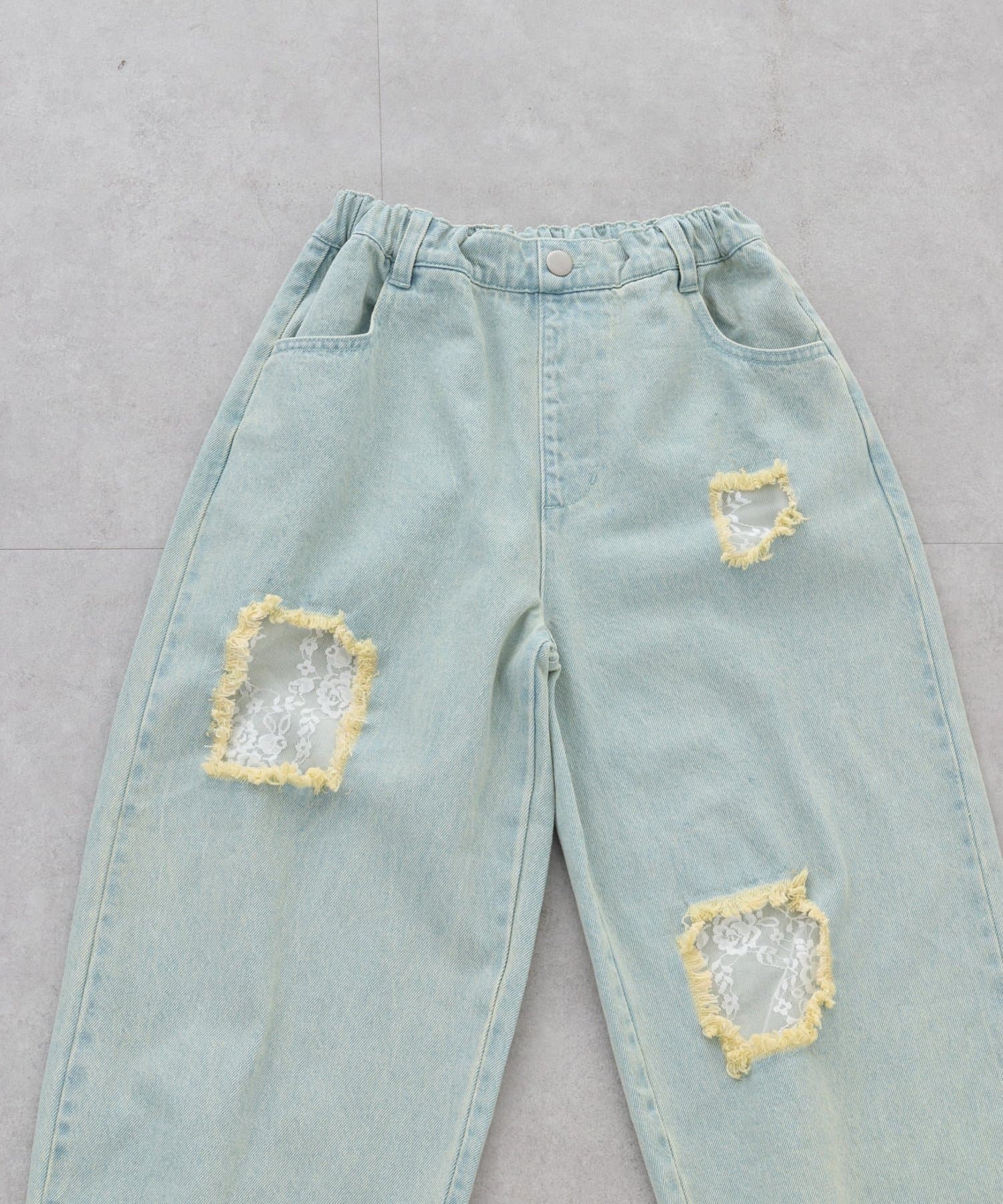 ≪26SS展示会アイテム≫【KIDS】《ジュニアサイズあり》レースパッチワークデニム(ウエスト調整可能)