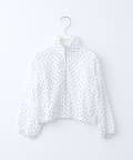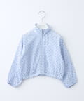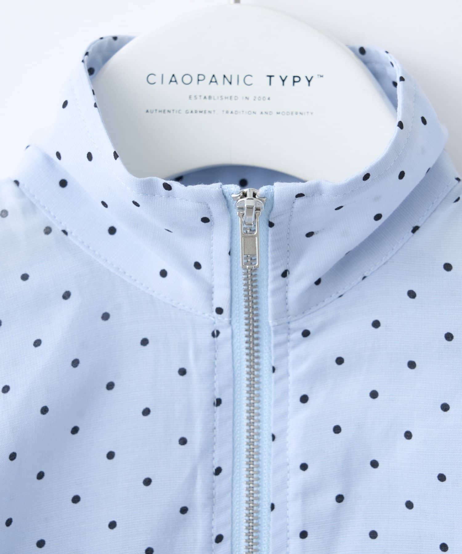 首元はすっきりとしたスタンドネックで、フロントはジップアップ仕様。袖口はゴムシャーリングになっており、ふんわりとしたシルエットを演出します。