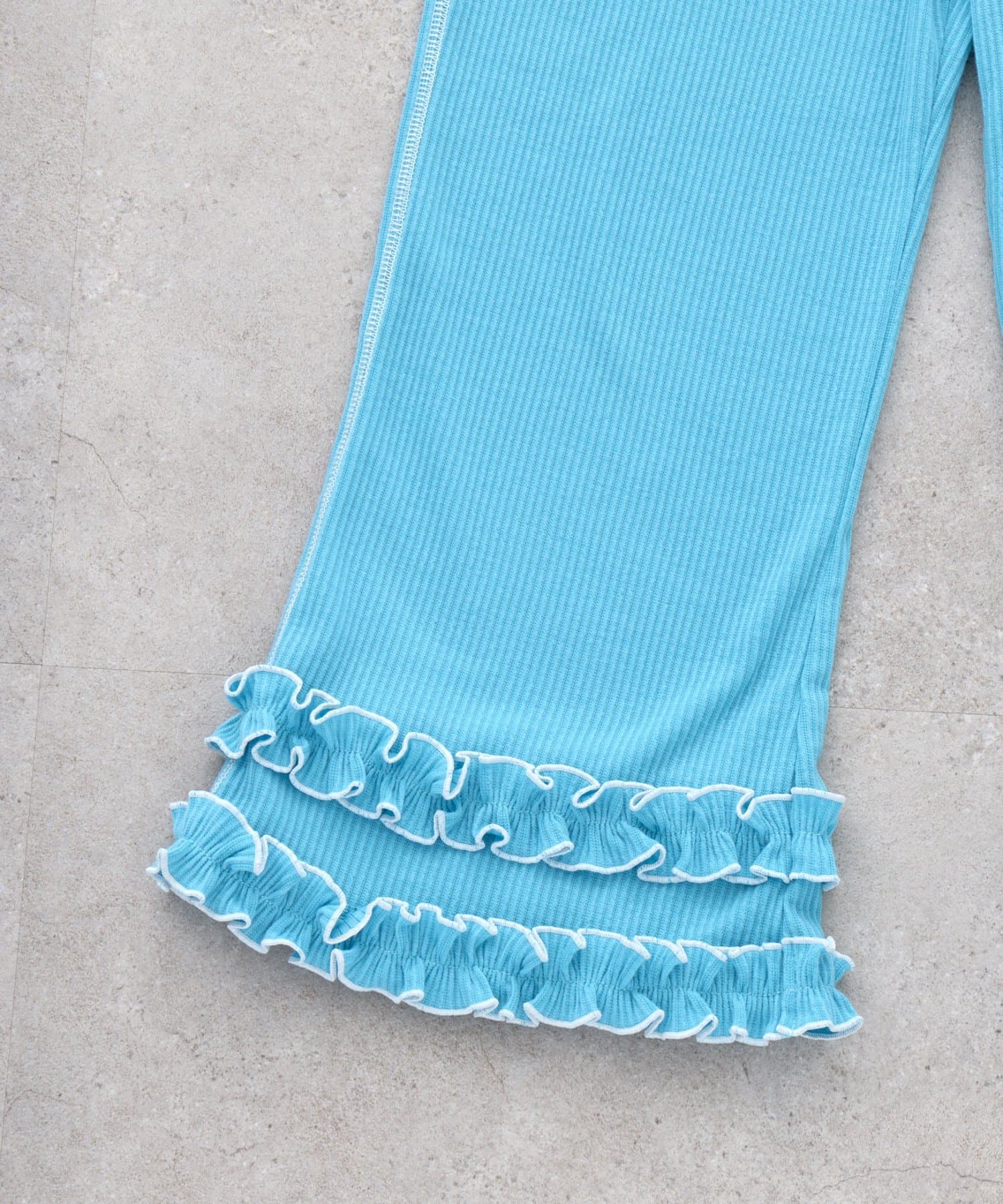 【KIDS】裾フリル配色ステッチ微フレアリブパンツ《ジュニアサイズあり》