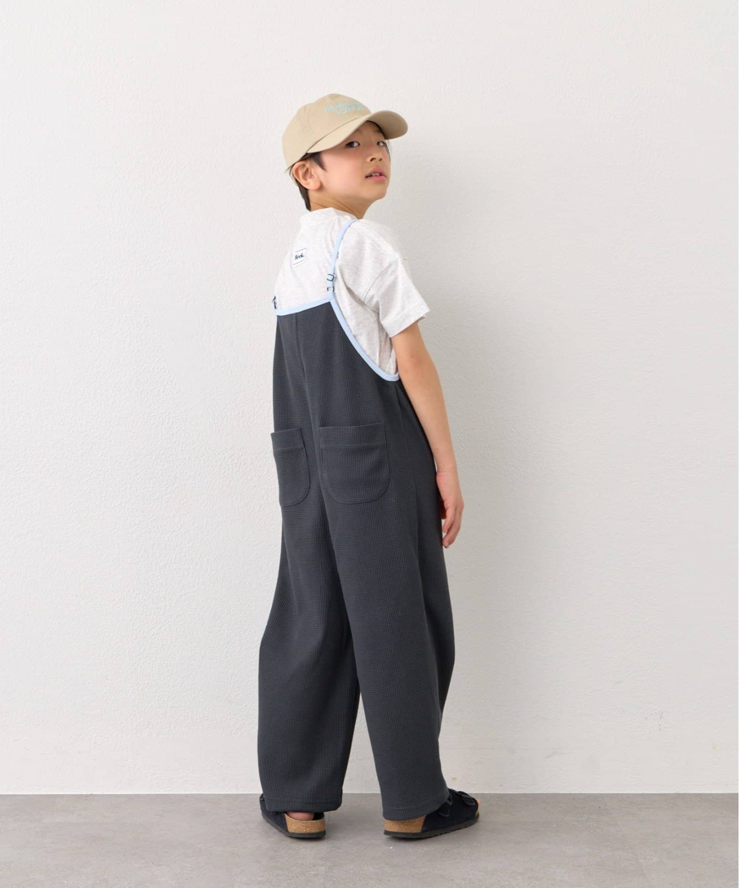 【KIDS】ふんわり快適!《ジュニアサイズあり》配色ワッフルキャミサロペット