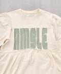 目を引くアーチ状のロゴプリントが印象的なチュニックワンピース。