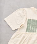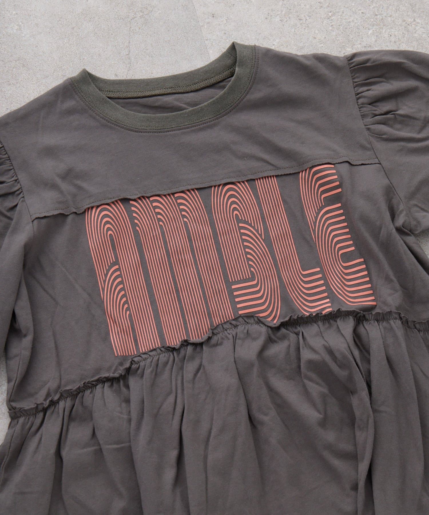【KIDS】《ジュニアサイズあり》厚盛ロゴ5分袖チュニックワンピ