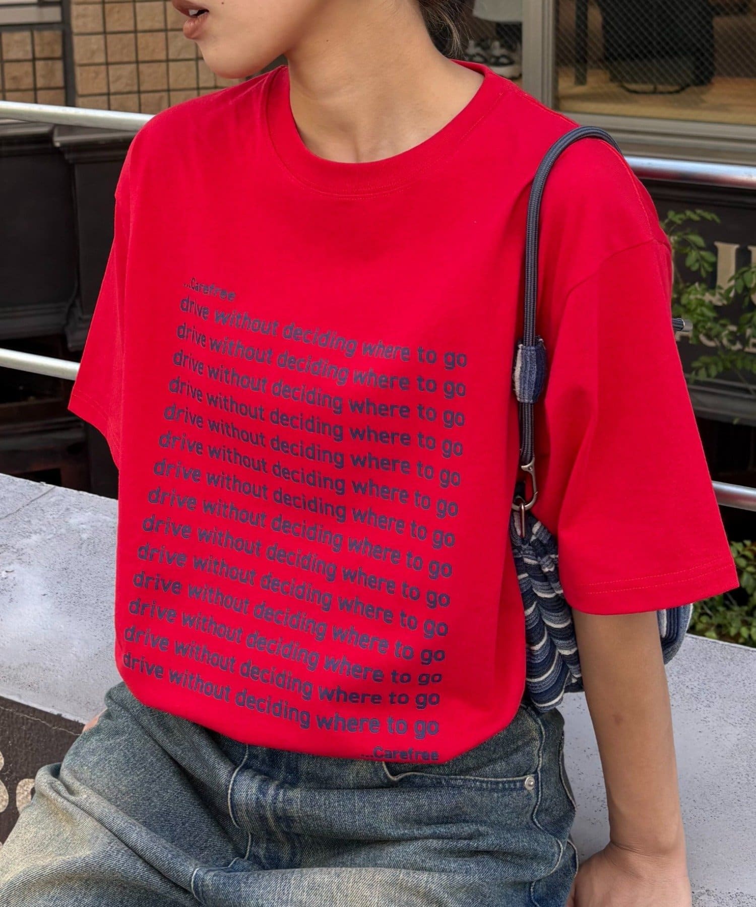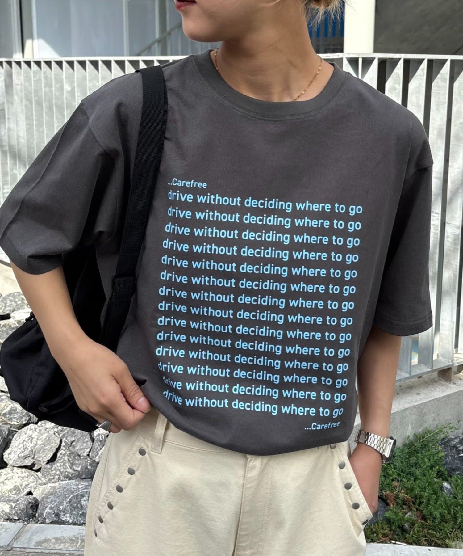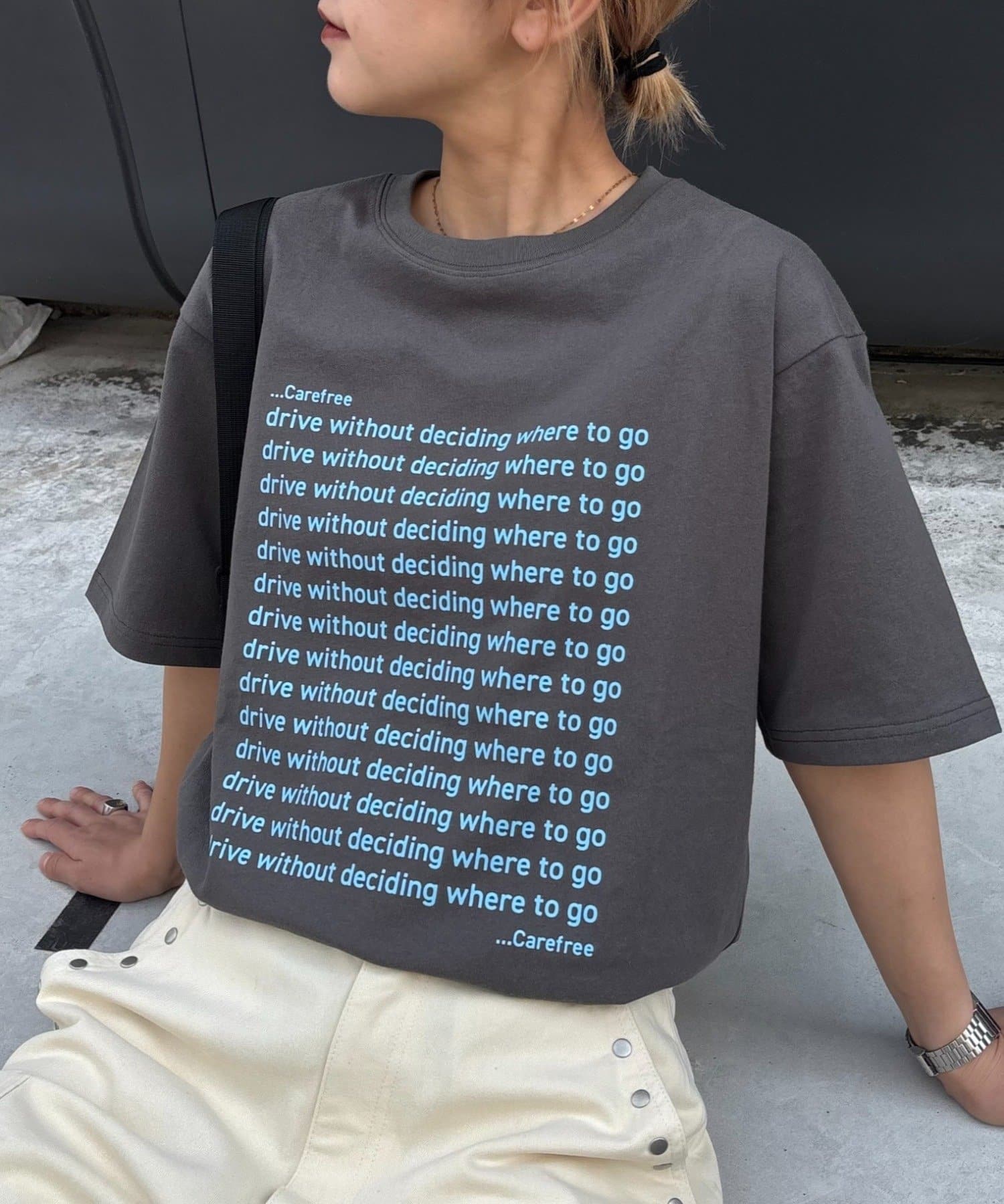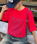 フロント部分に施されたメッセージプリントが魅力。