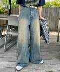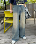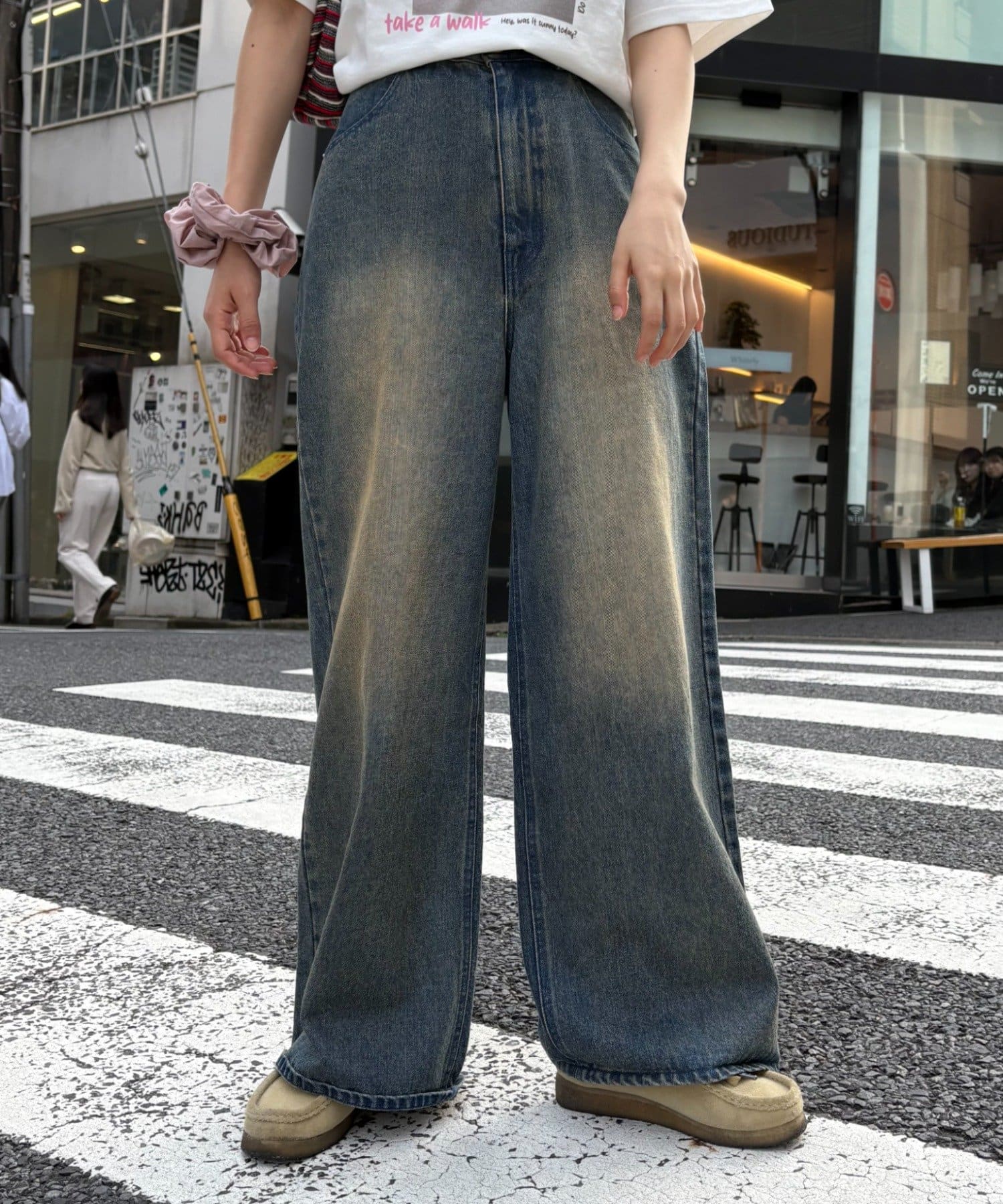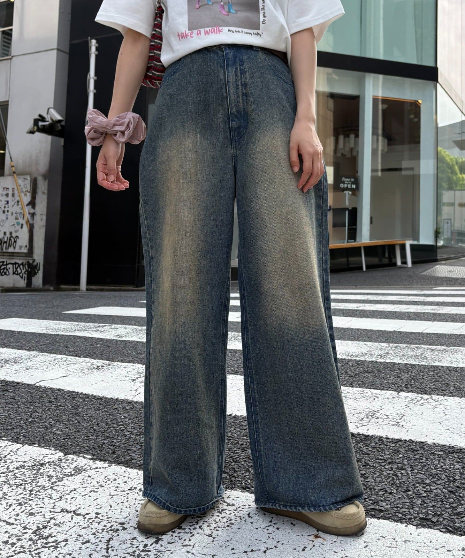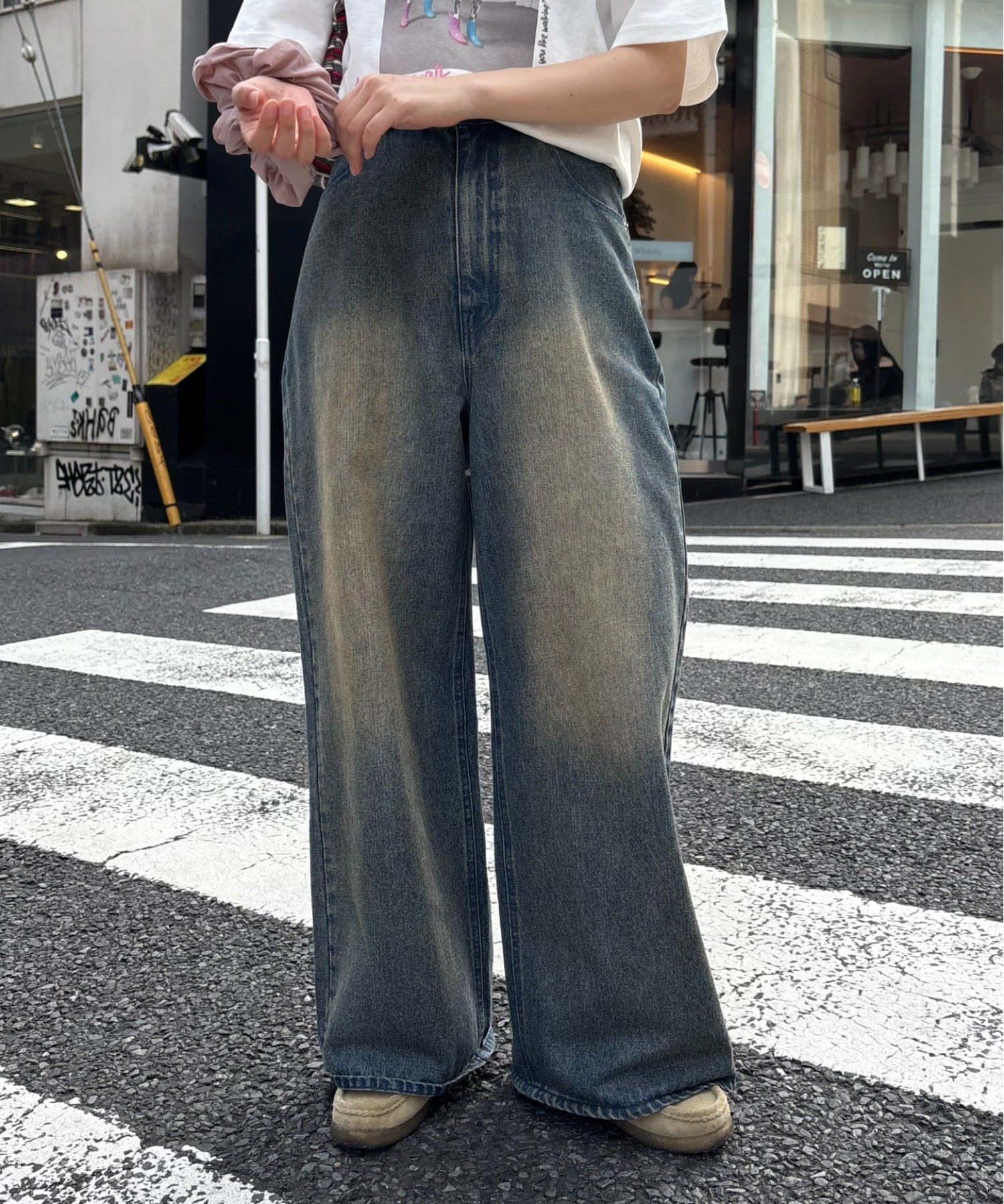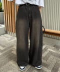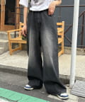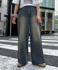 オーバーダイ加工を施し、ヴィンテージライクなワイドデニム。