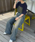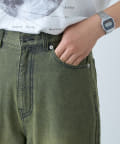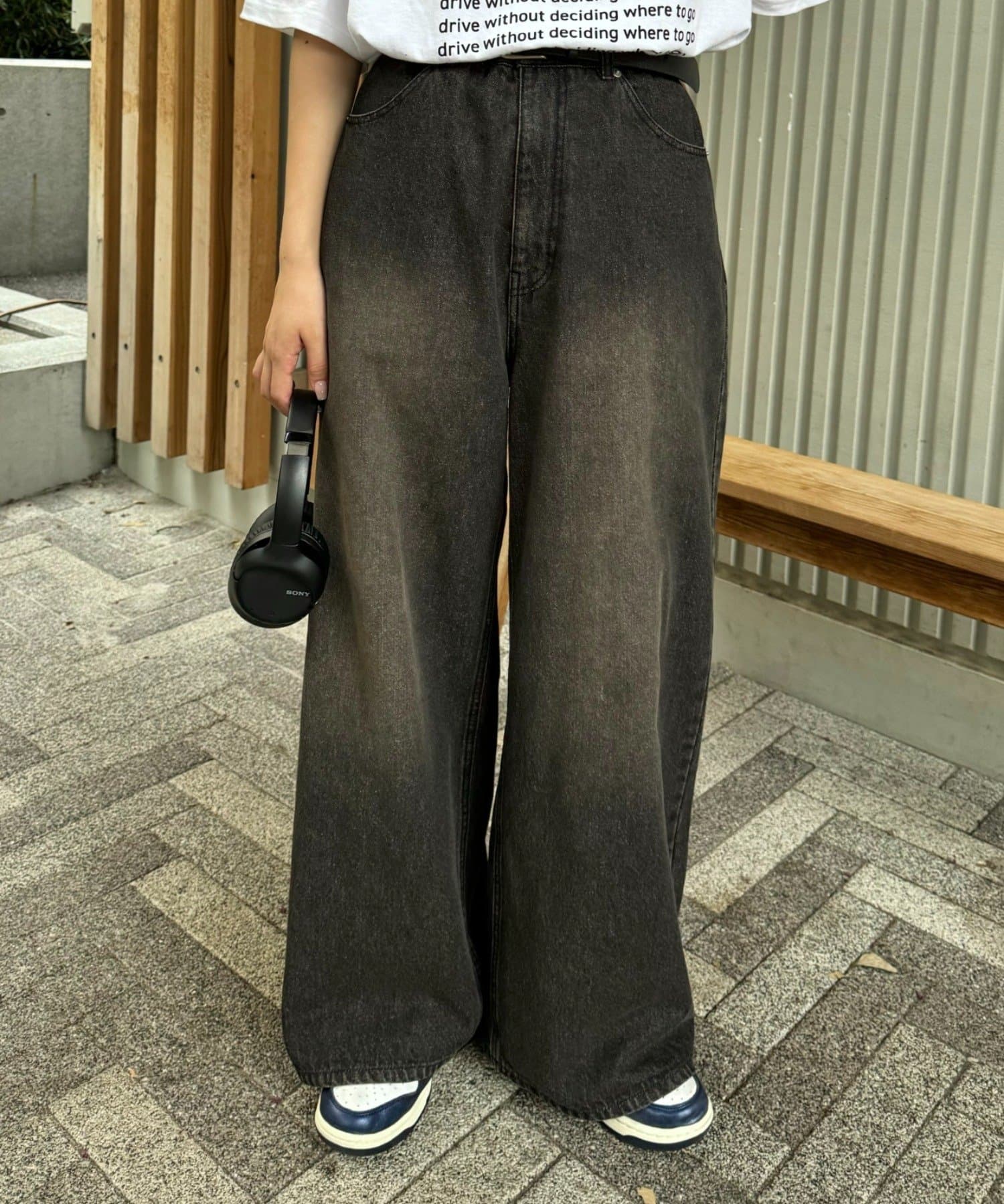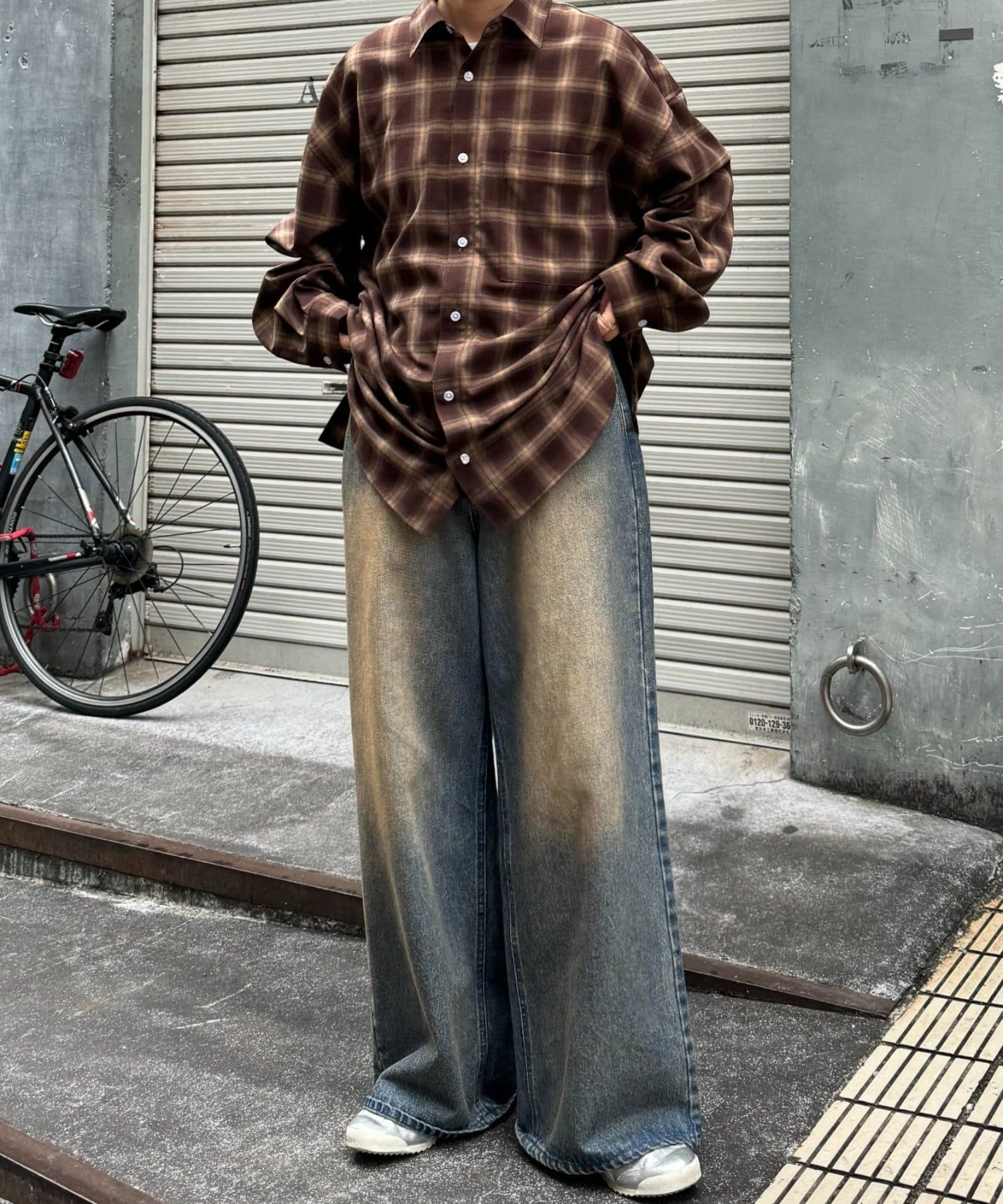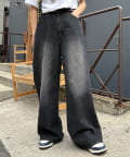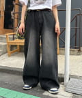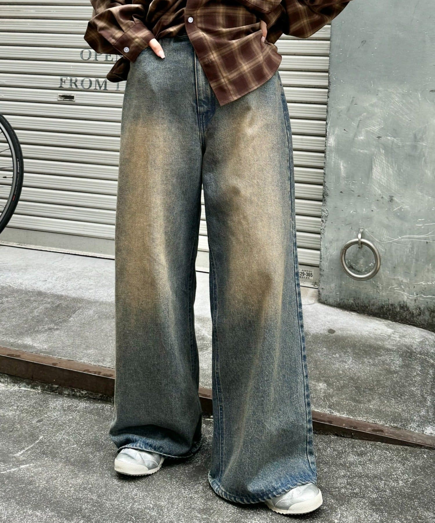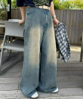 オーバーダイ加工を施し、ヴィンテージライクなワイドデニム。