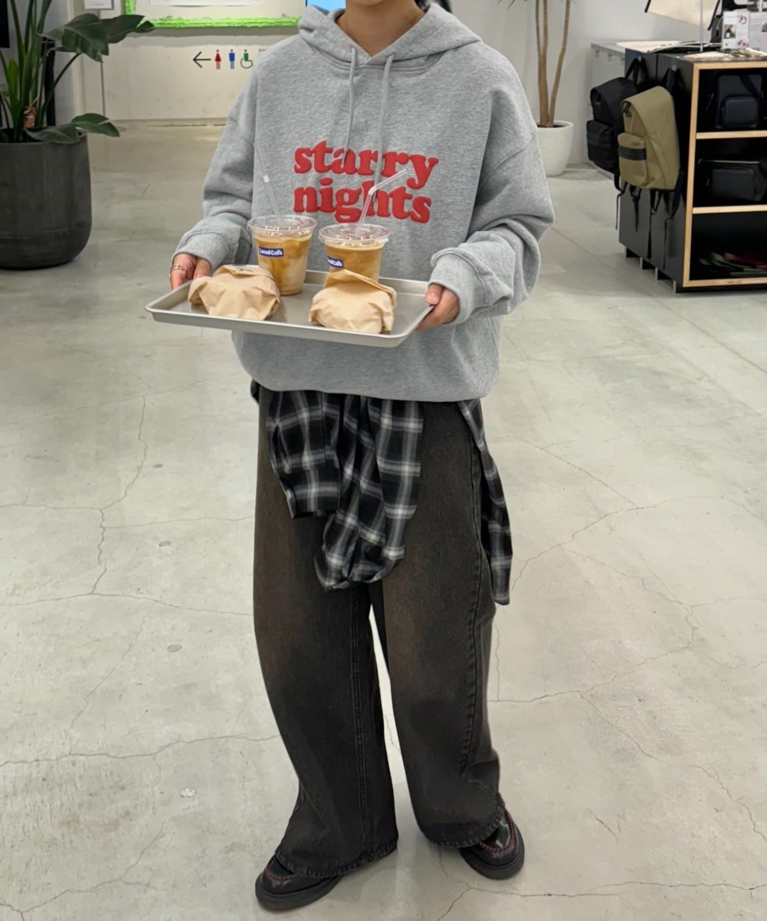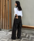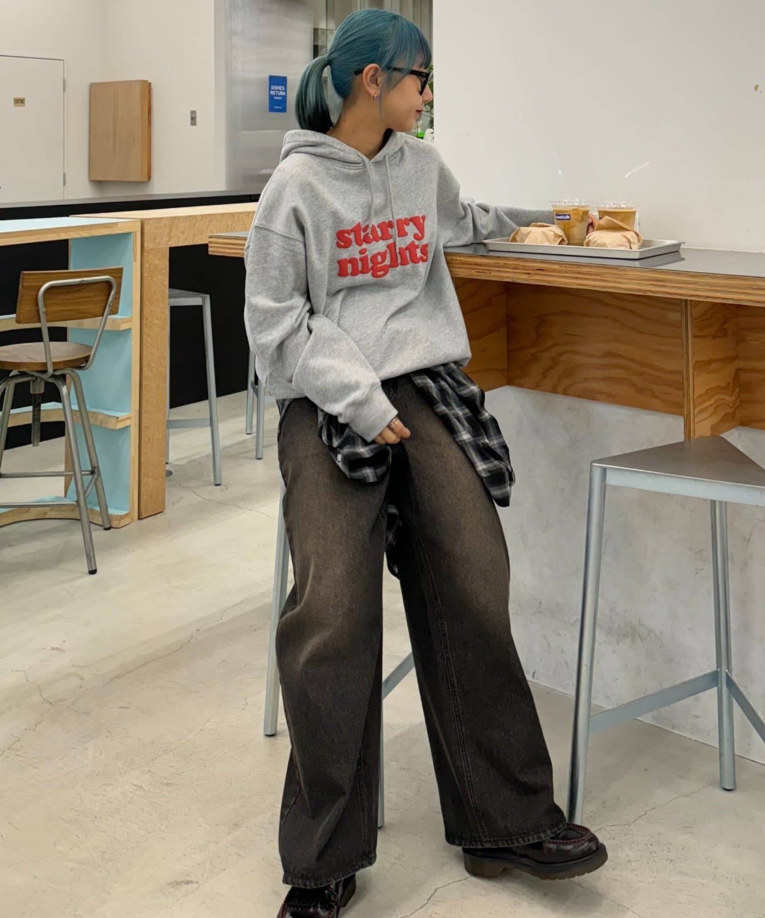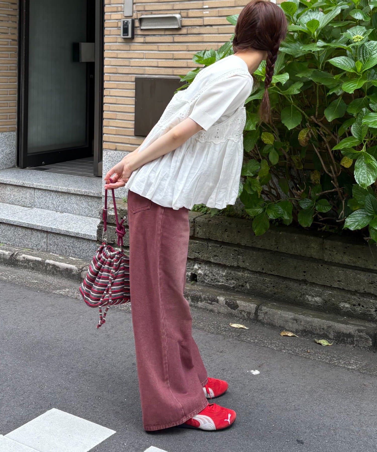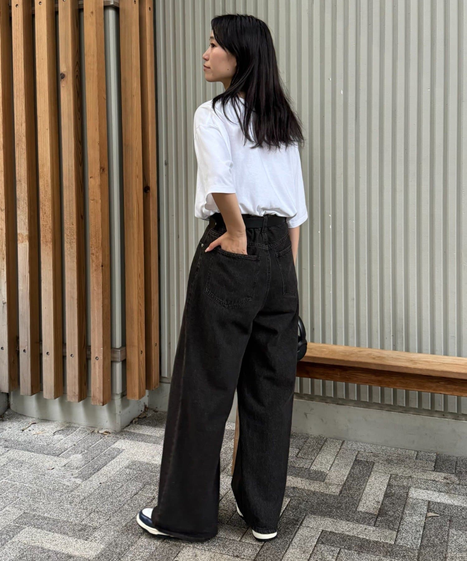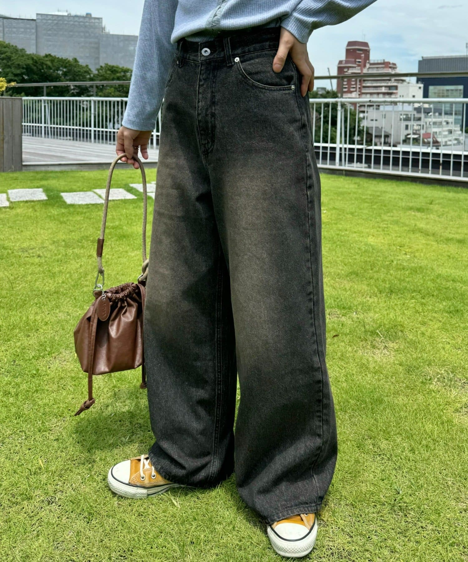 存在感のある加工とワイドシルエットで、トレンドっぽさをプラスしてくれます♩