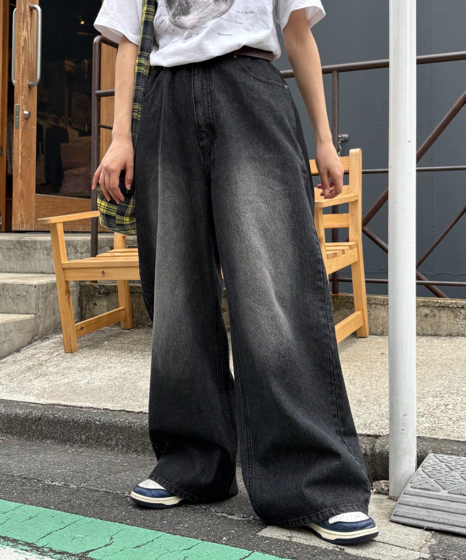 【新色追加】【UNISEX】オーバーダイワイドデニムパンツ