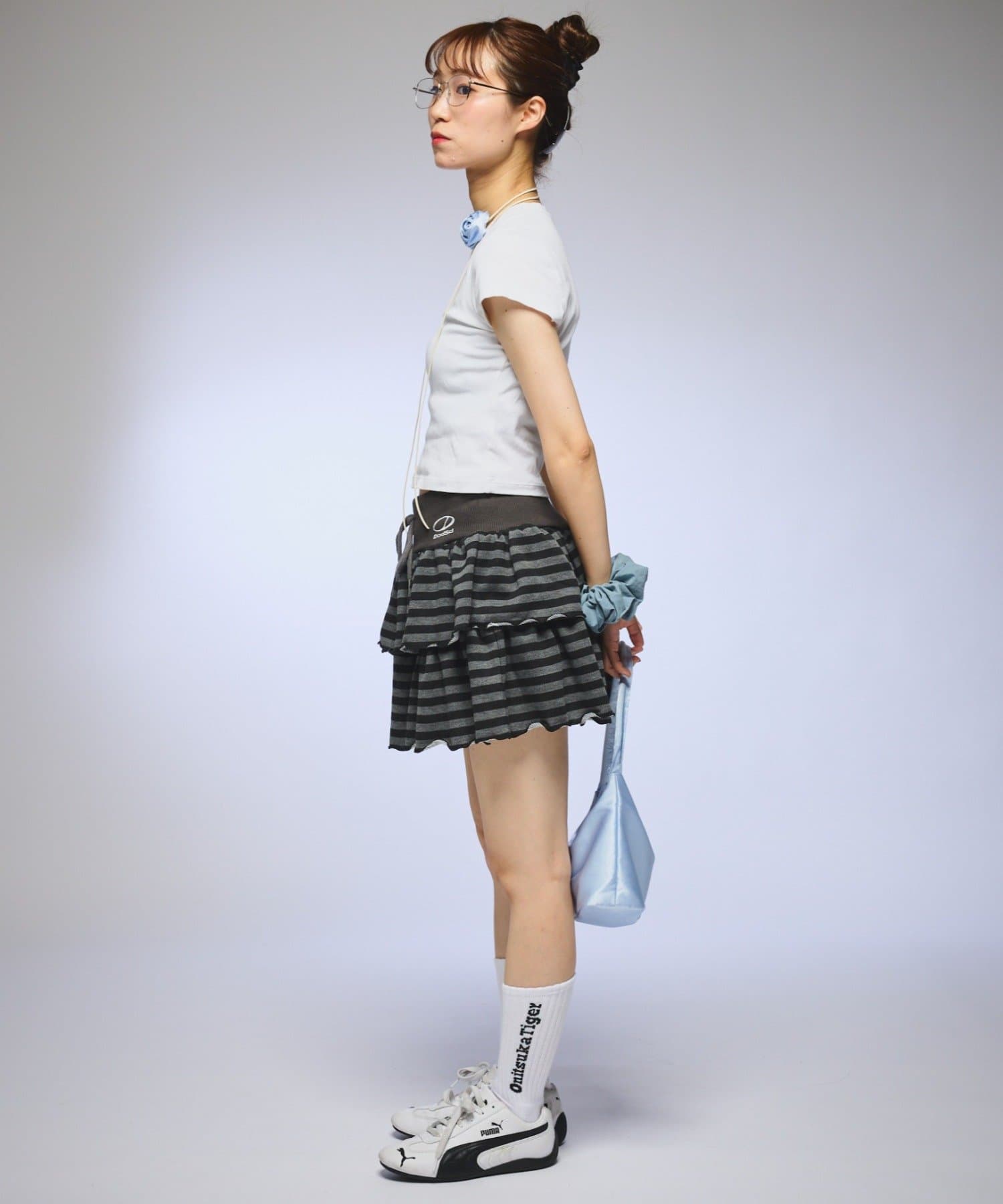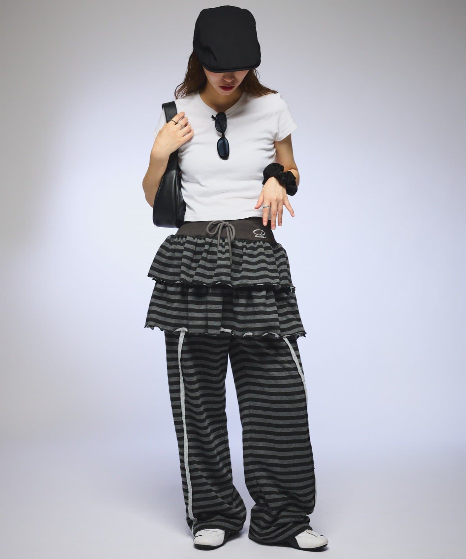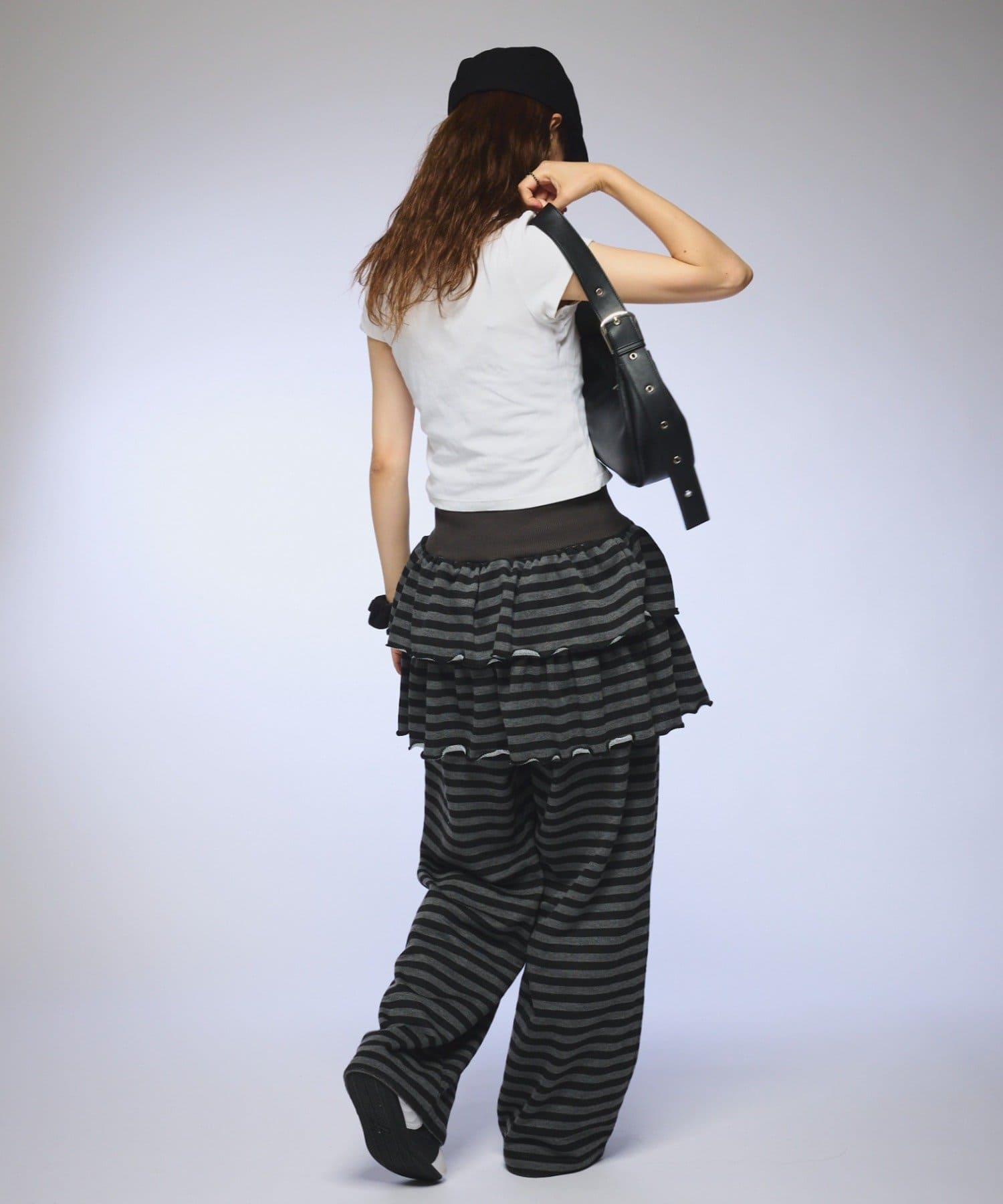 パンツの上から合わせた、レイヤードスタイルもおすすめです♡
