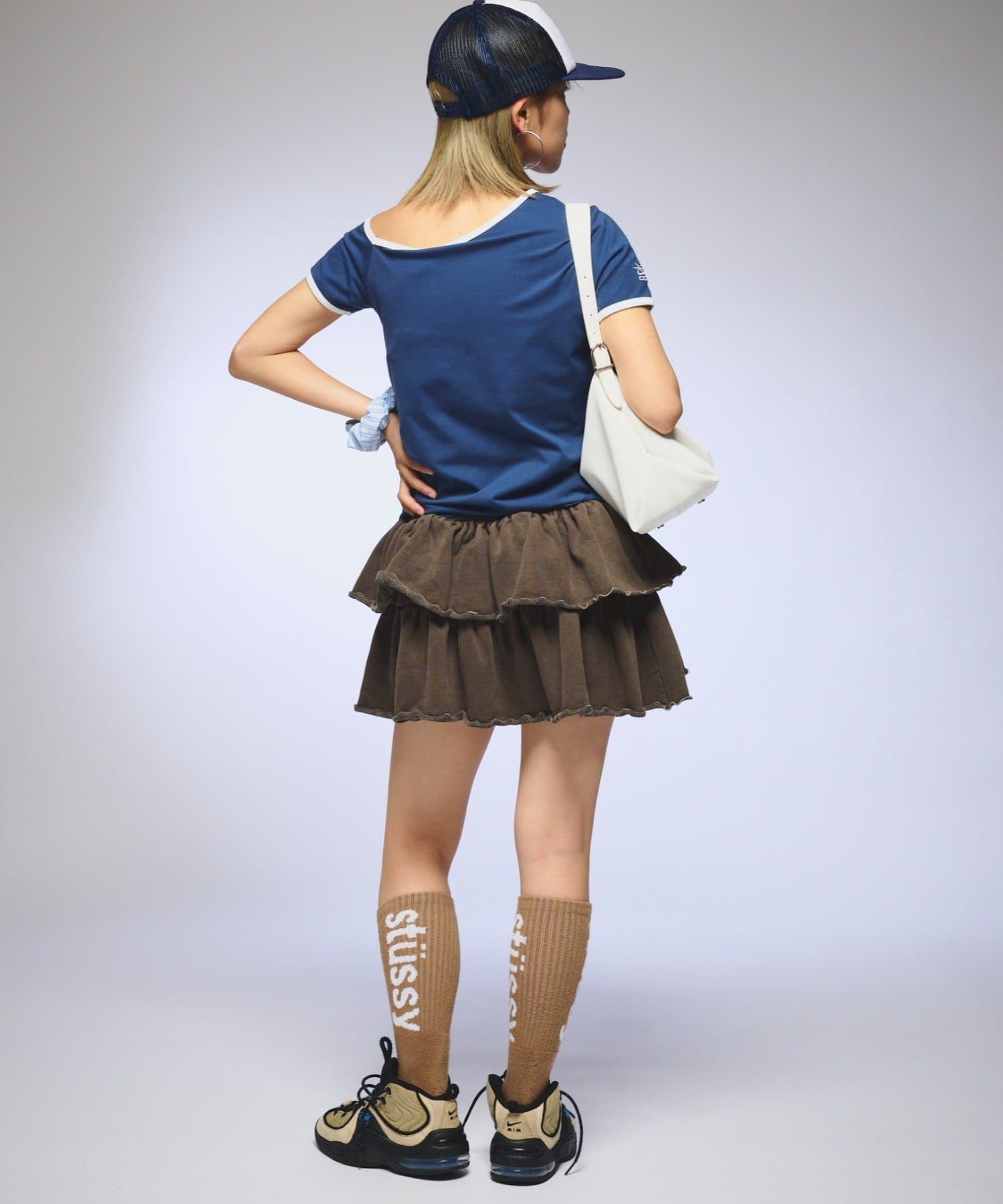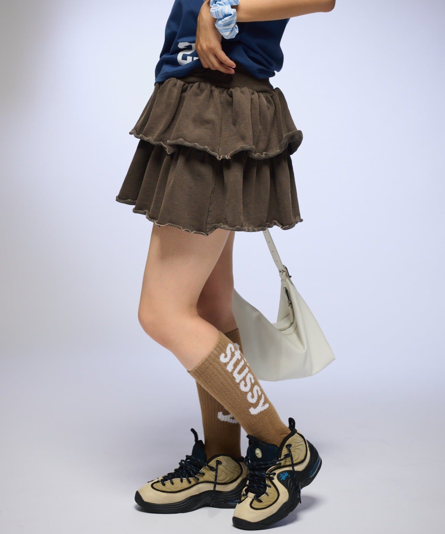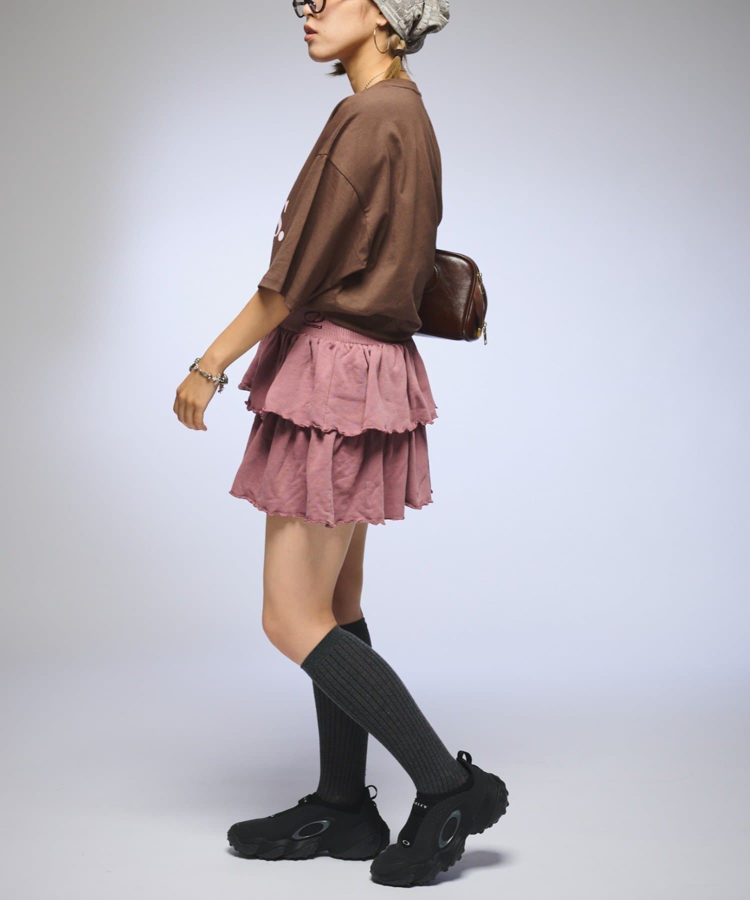パンツの上から合わせた、レイヤードスタイルもおすすめです♡