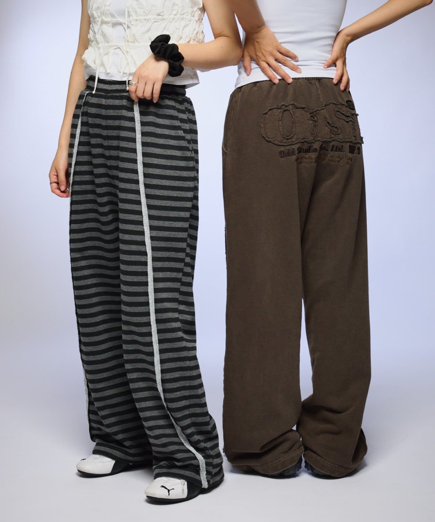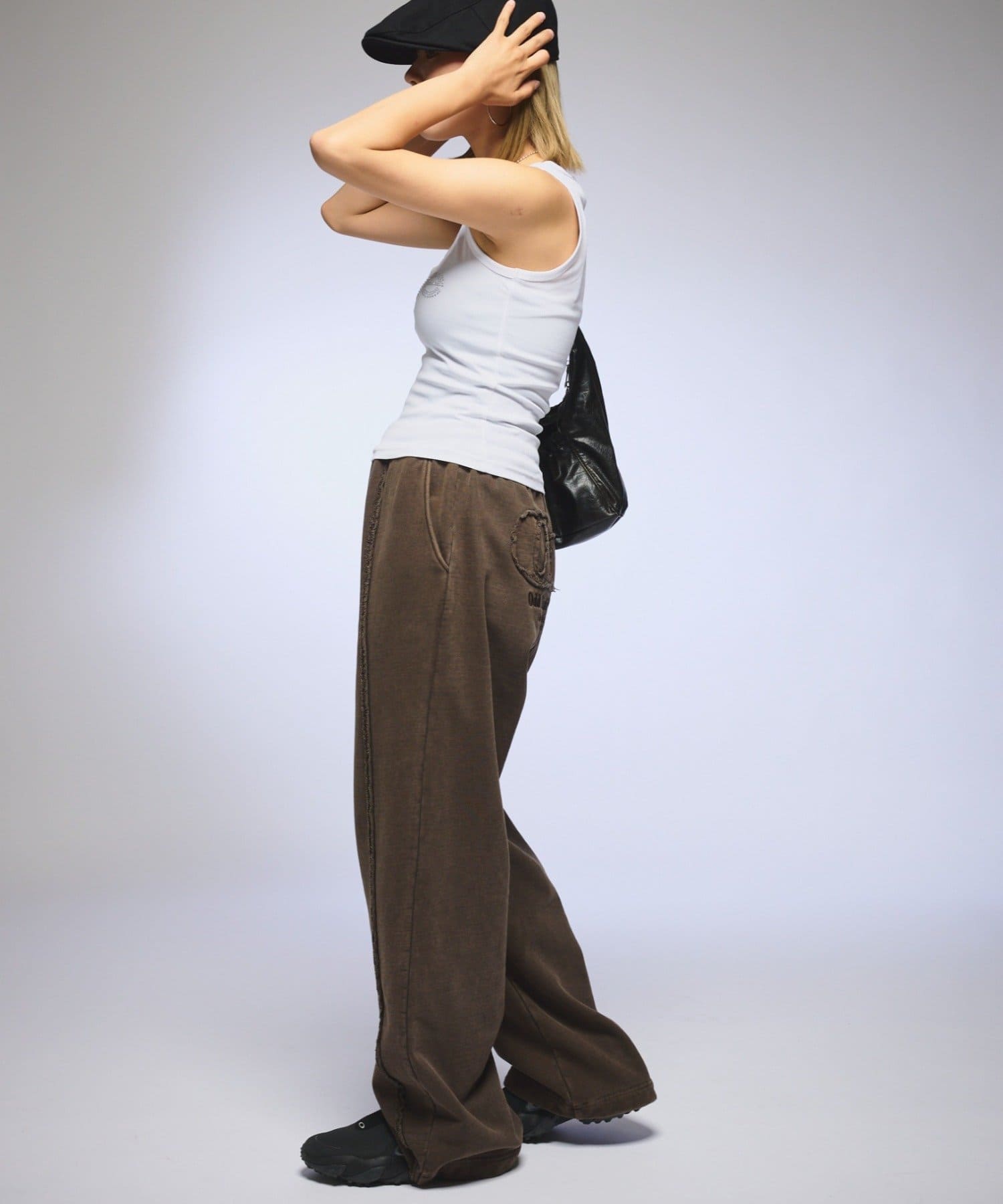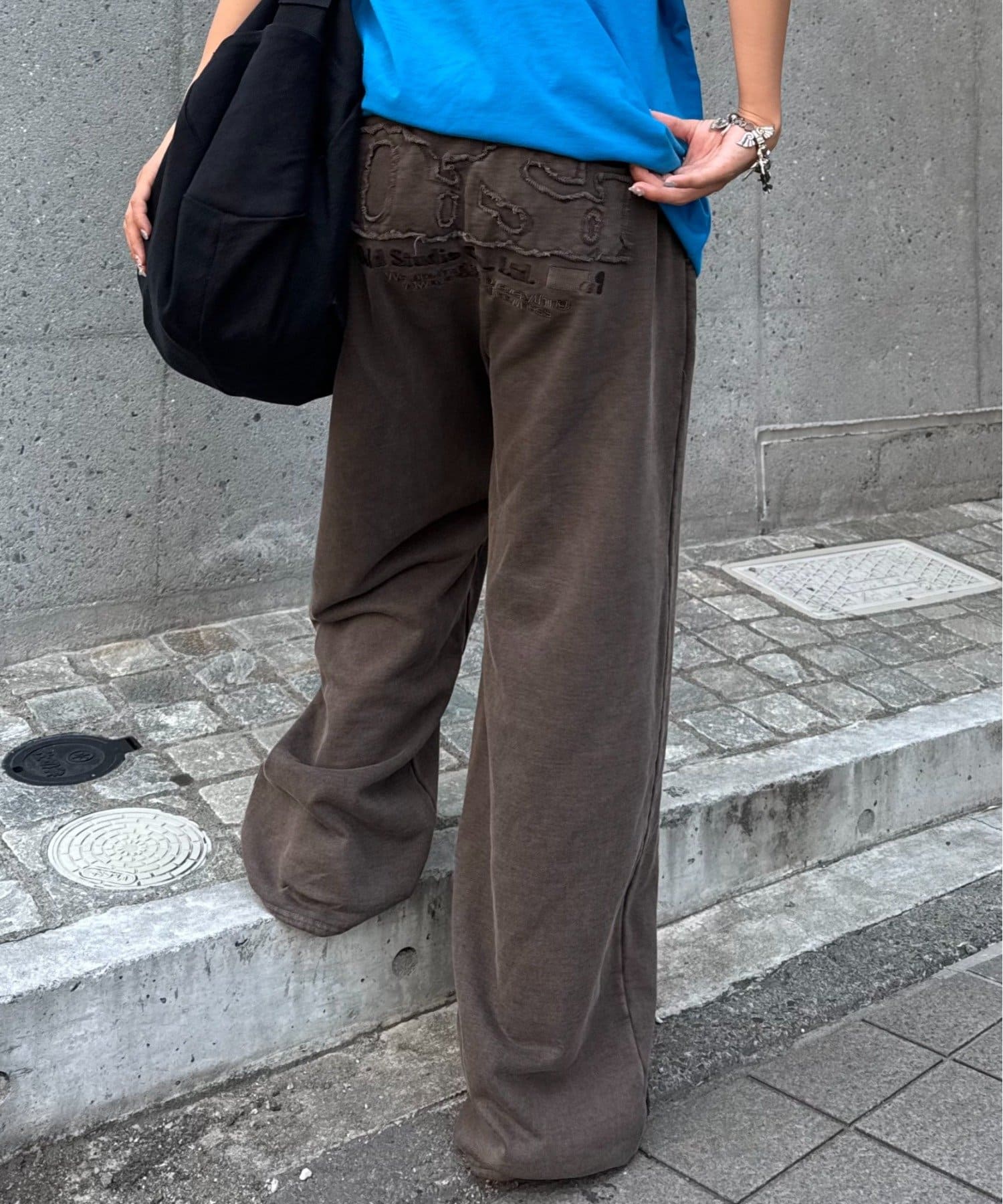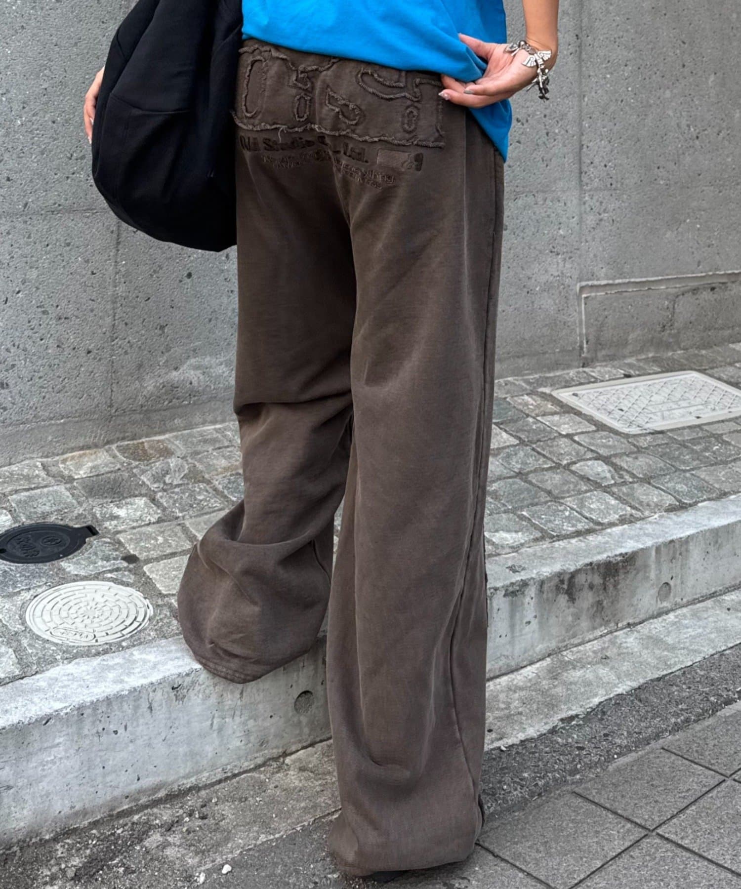 【OddStudio】ピグメントバックダメージロゴスウェットパンツ